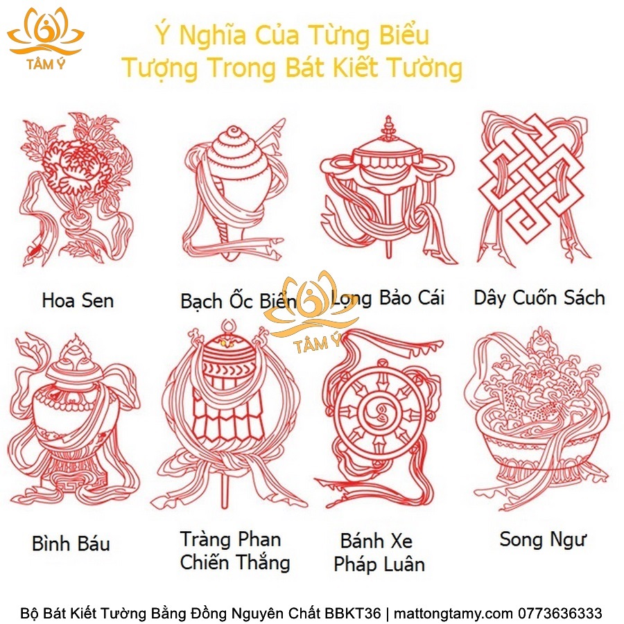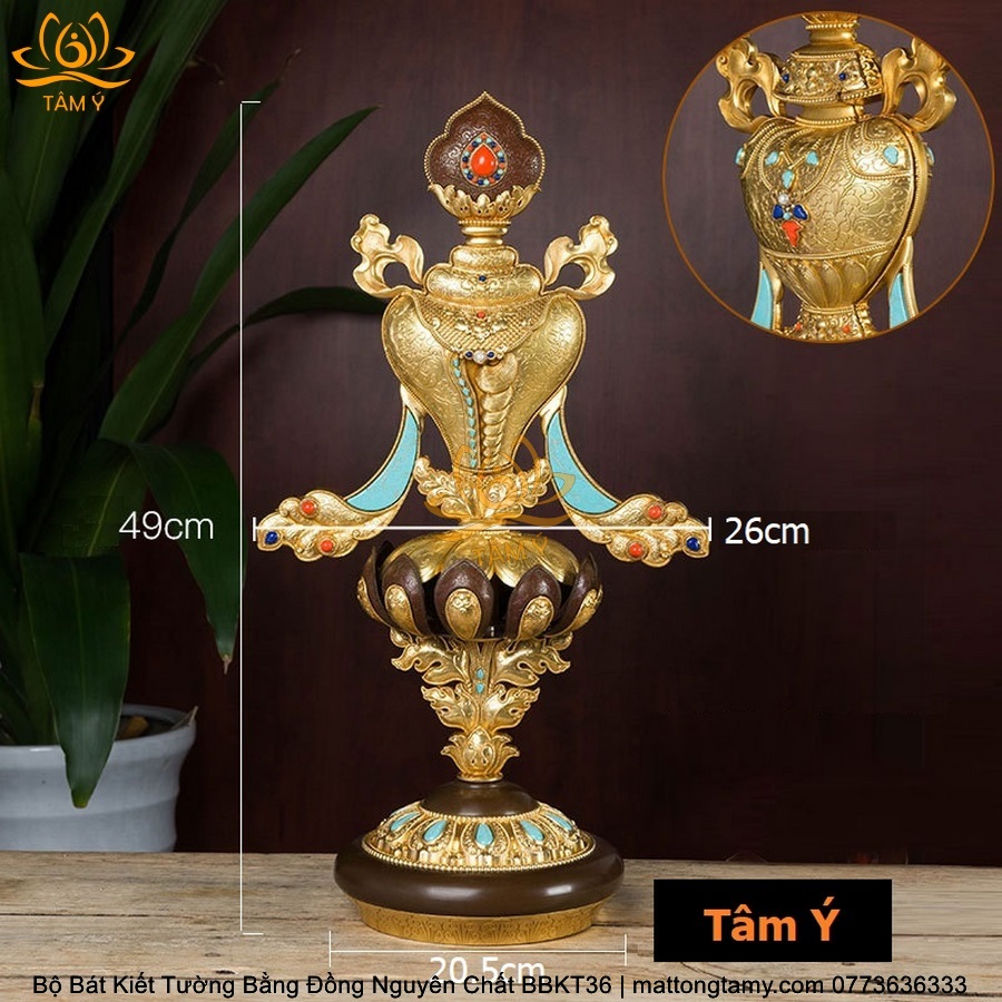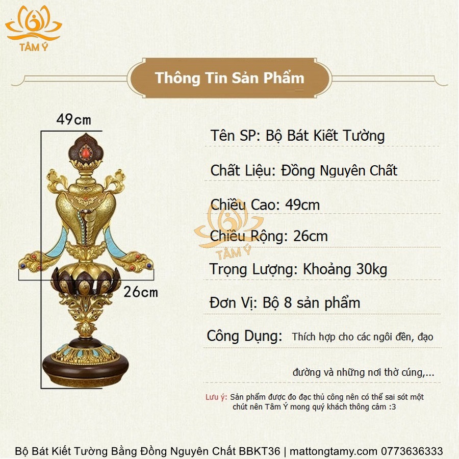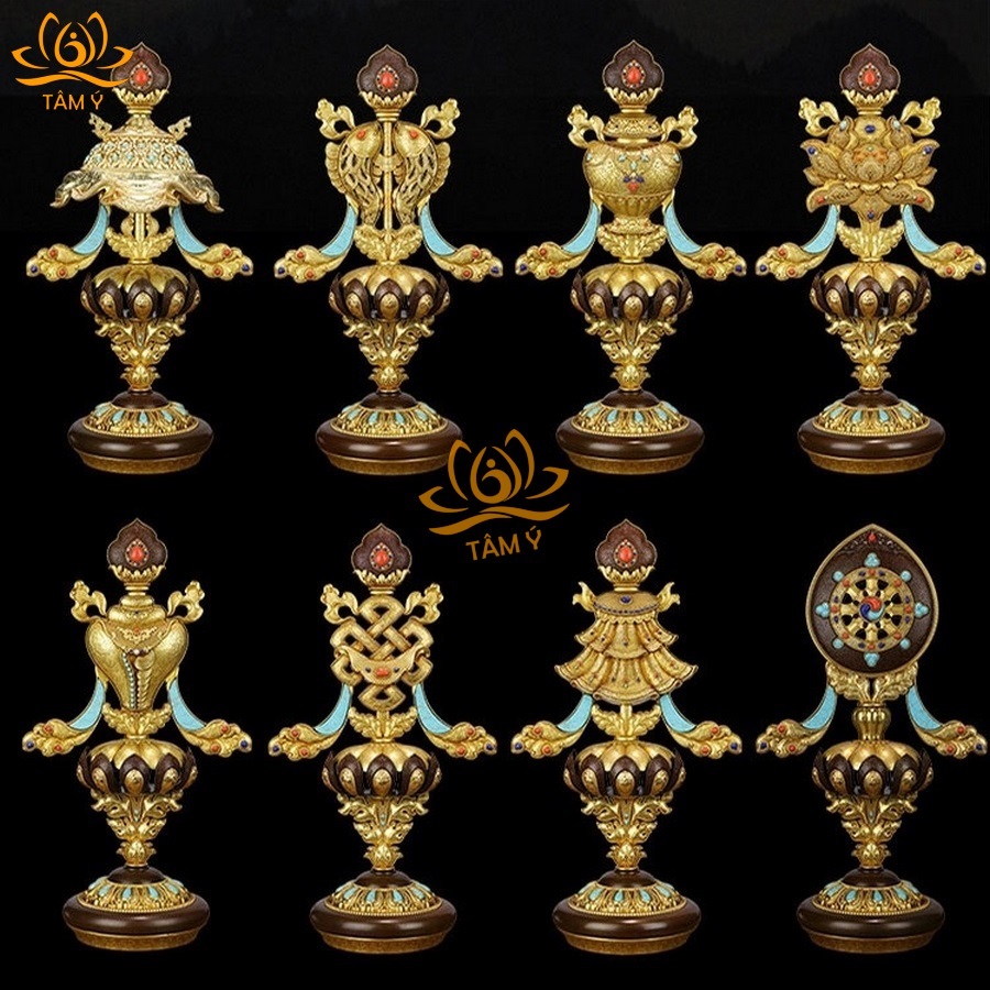 Bộ Bát Kiết Tường (Bát Đại Cát Tường - Tám Tướng Cát Tường) Cao 49cm Bằng Đồng Thau, Hoàn Thiện Thủ Công BBKT36
