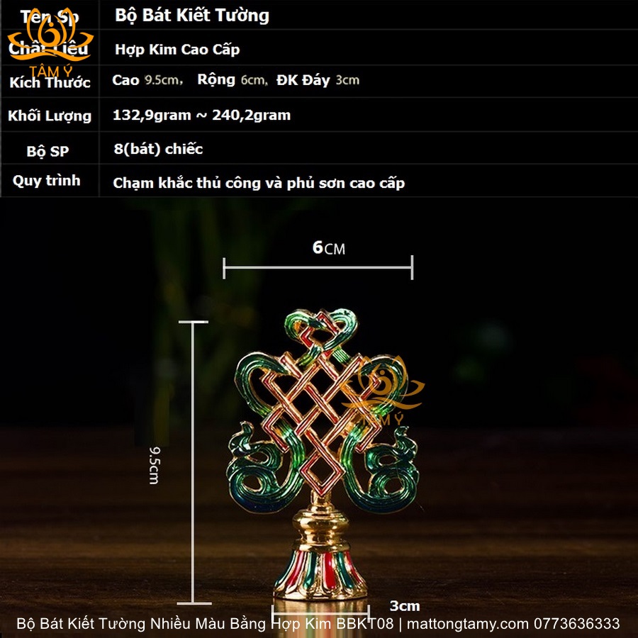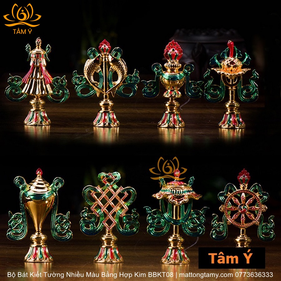 Bộ Bát Kiết Tường (Bát Đại Cát Tường - Tám Tướng Cát Tường) Cao 9,5cm Bằng Hợp Kim Cao Cấp, Hoàn Thiện Thủ Công BBKT08