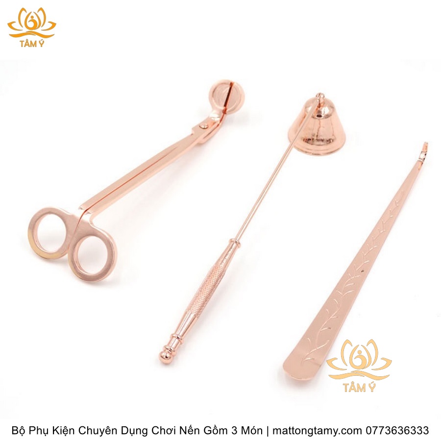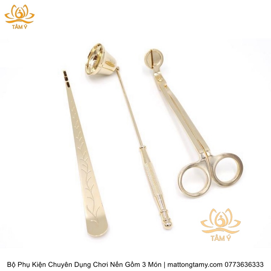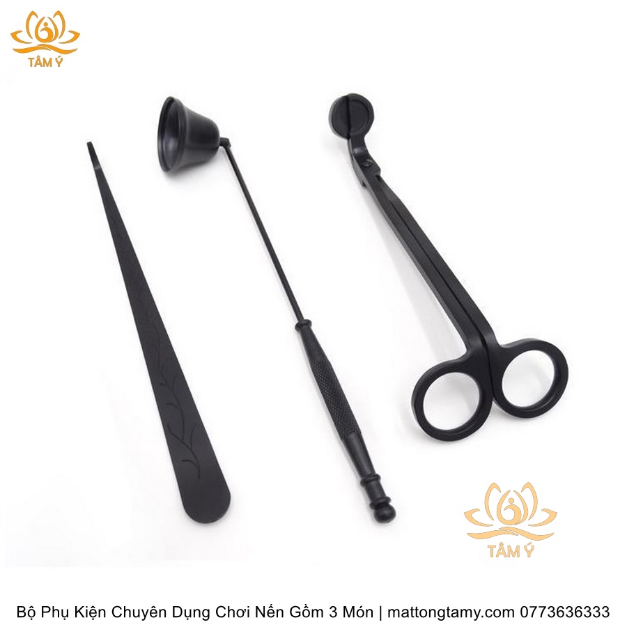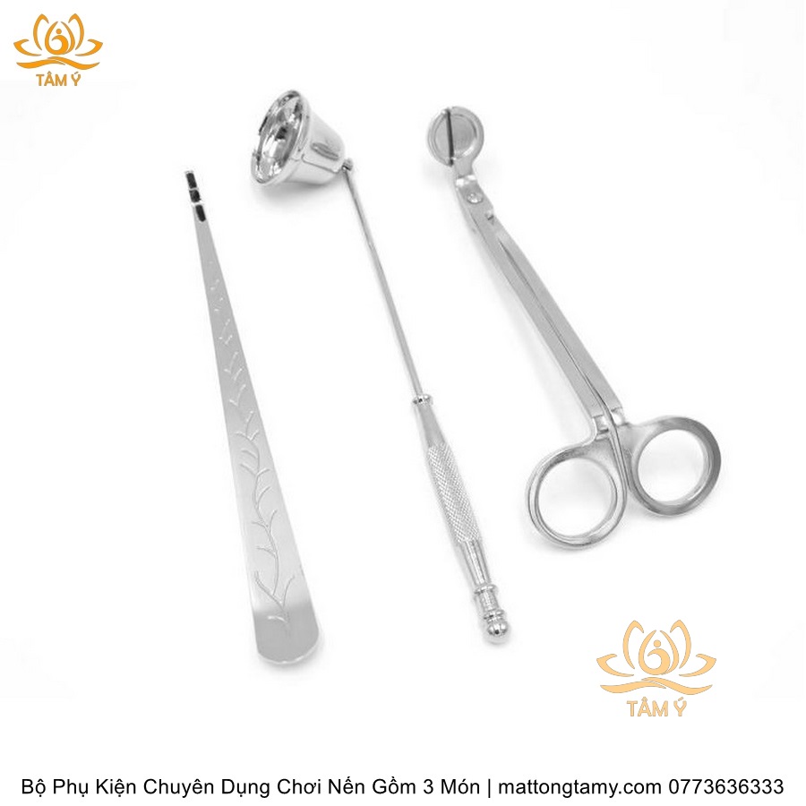 Bộ Phụ Kiện Chuyên Dụng Chơi Nến Gồm 3 Món Kéo Cắt Bấc, Chuông, Khêu Bằng Thép Không Gỉ