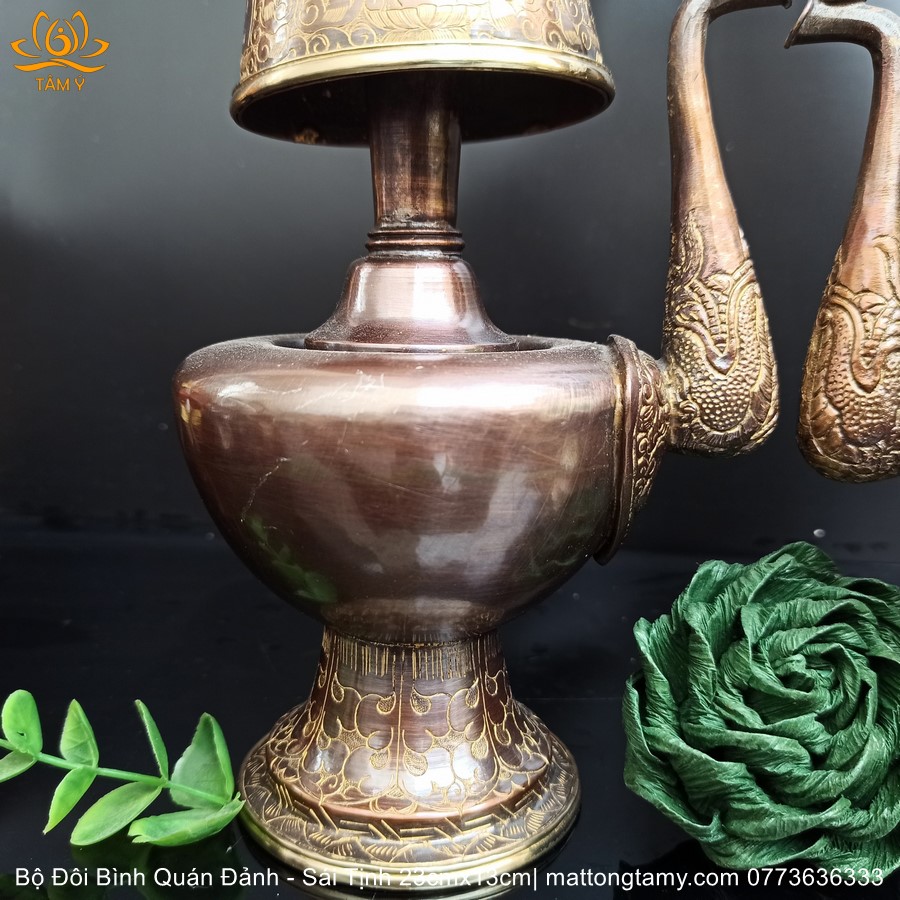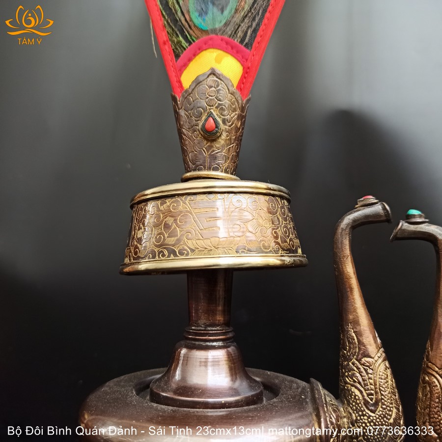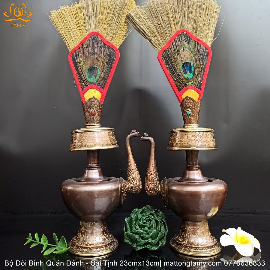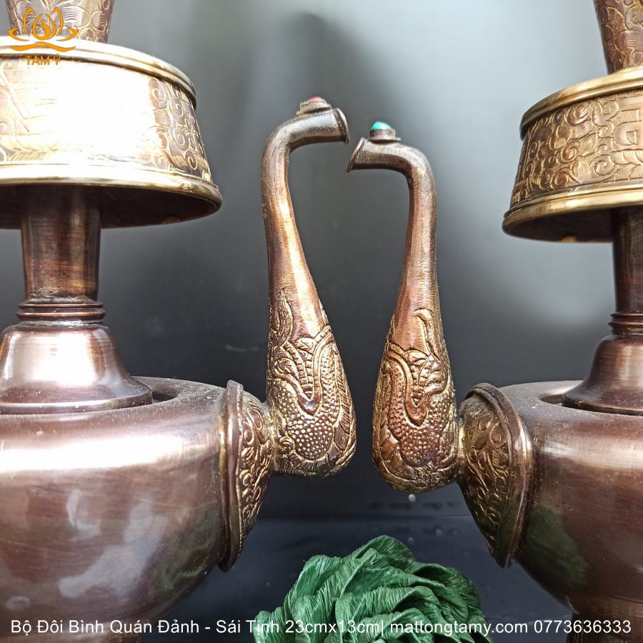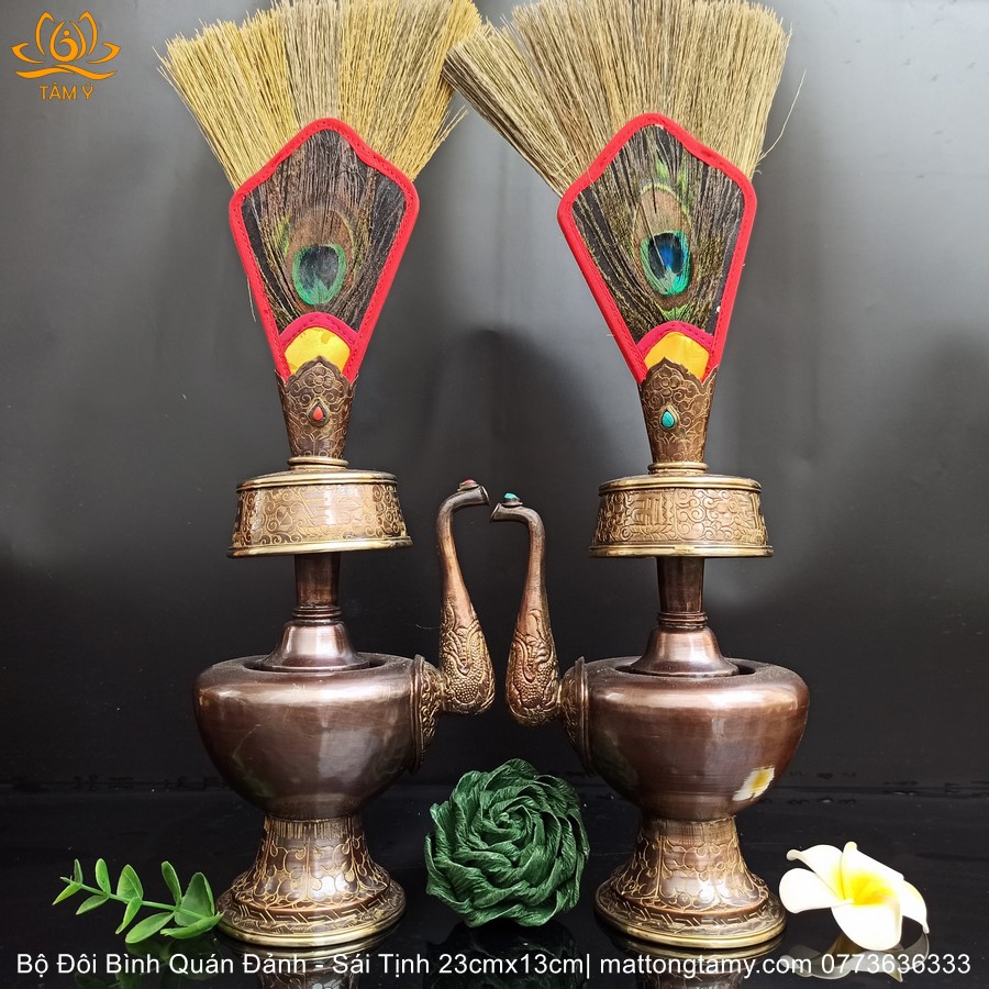 Bộ Đôi Bình Quán Đảnh - Sái Tịnh Bằng Đồng Nguyên Chất, Hàng Thủ Công Nepal 23cmX13cm