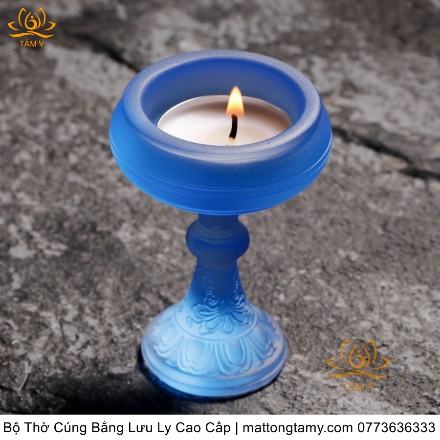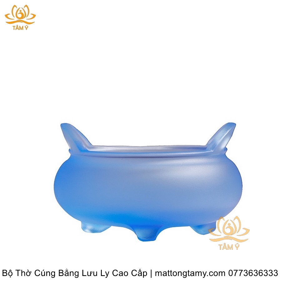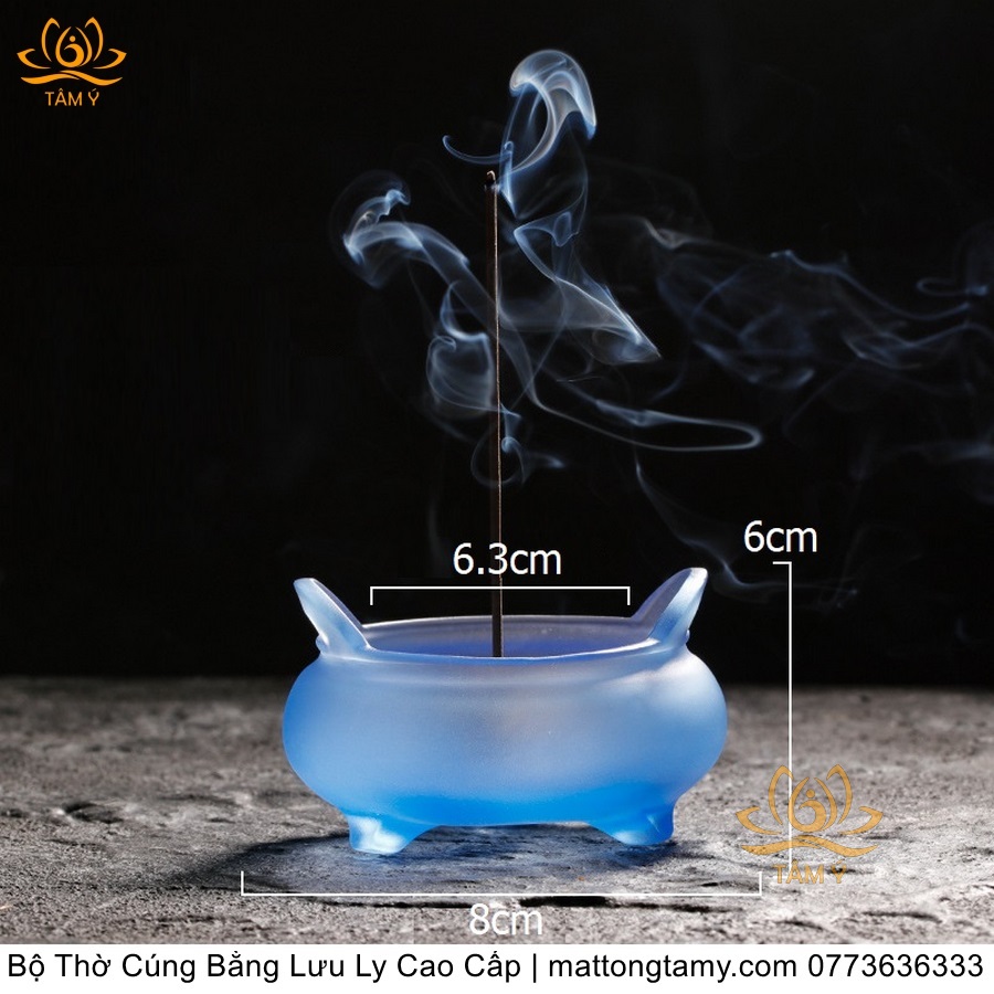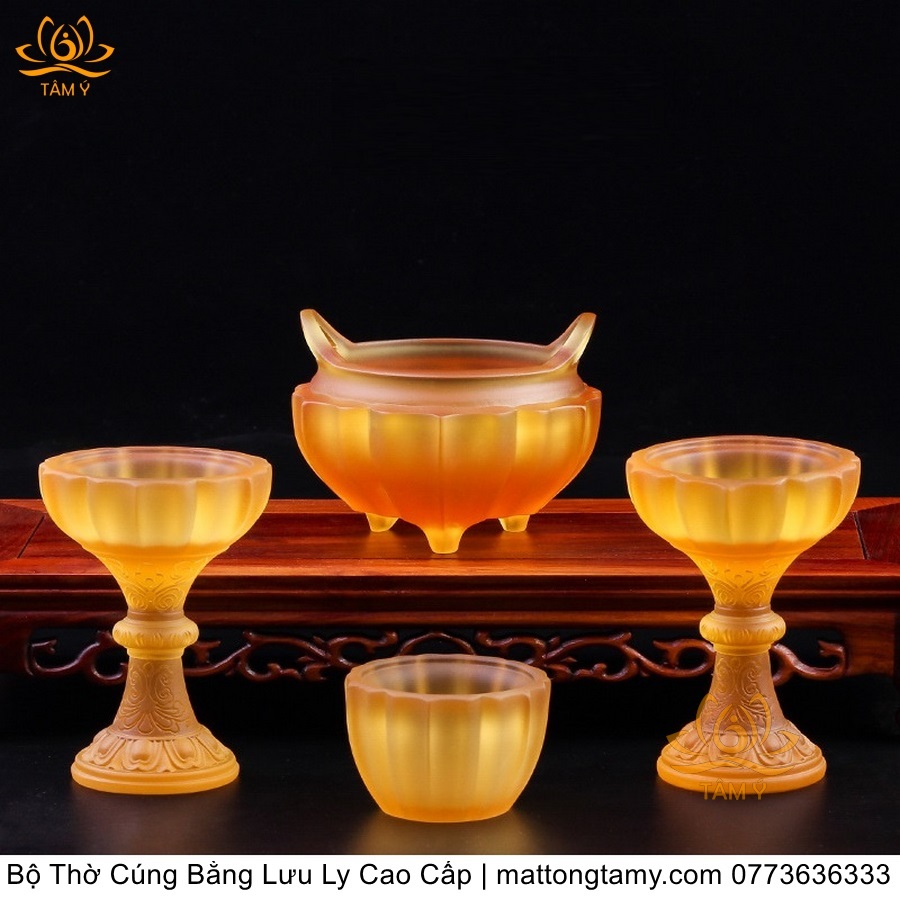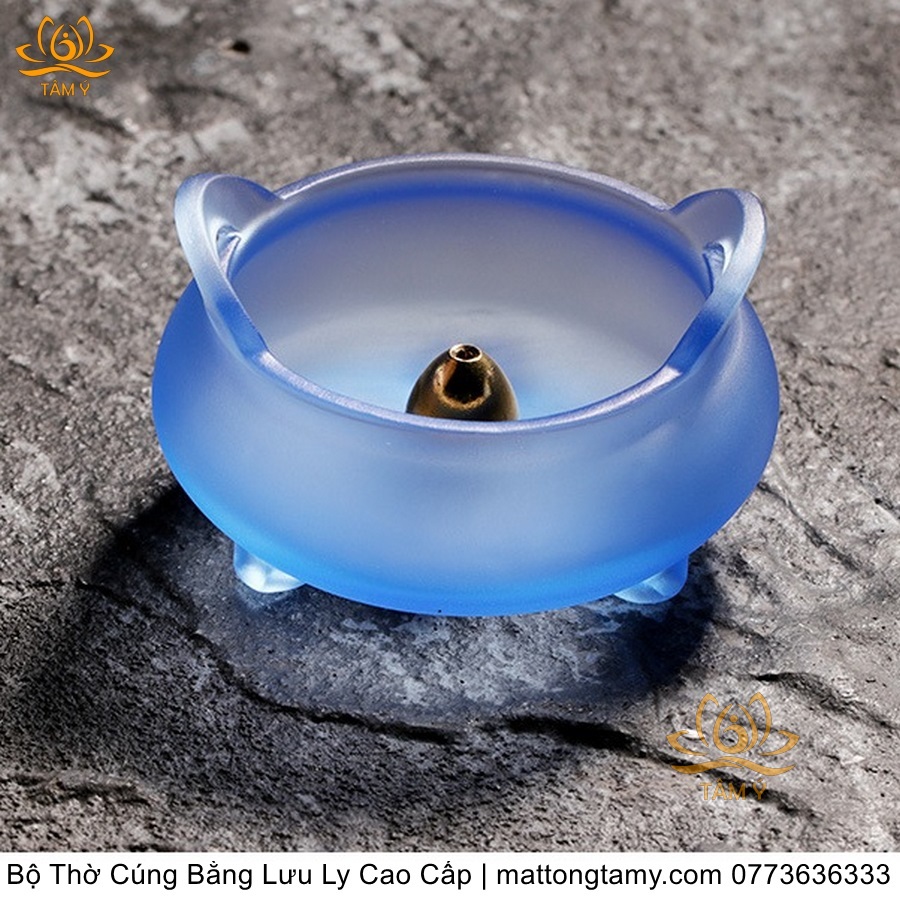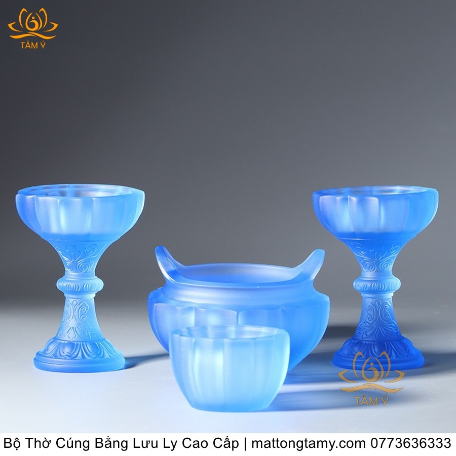 Bộ Lưu Ly Thờ Cúng: Lư Hương, Bát Nến, Chén Nước, 2 Kiểu Thiết Kế, Màu Hổ Phách Và Xanh Dương