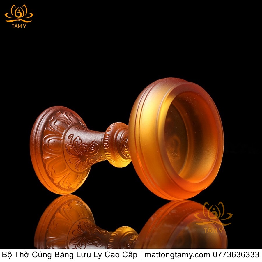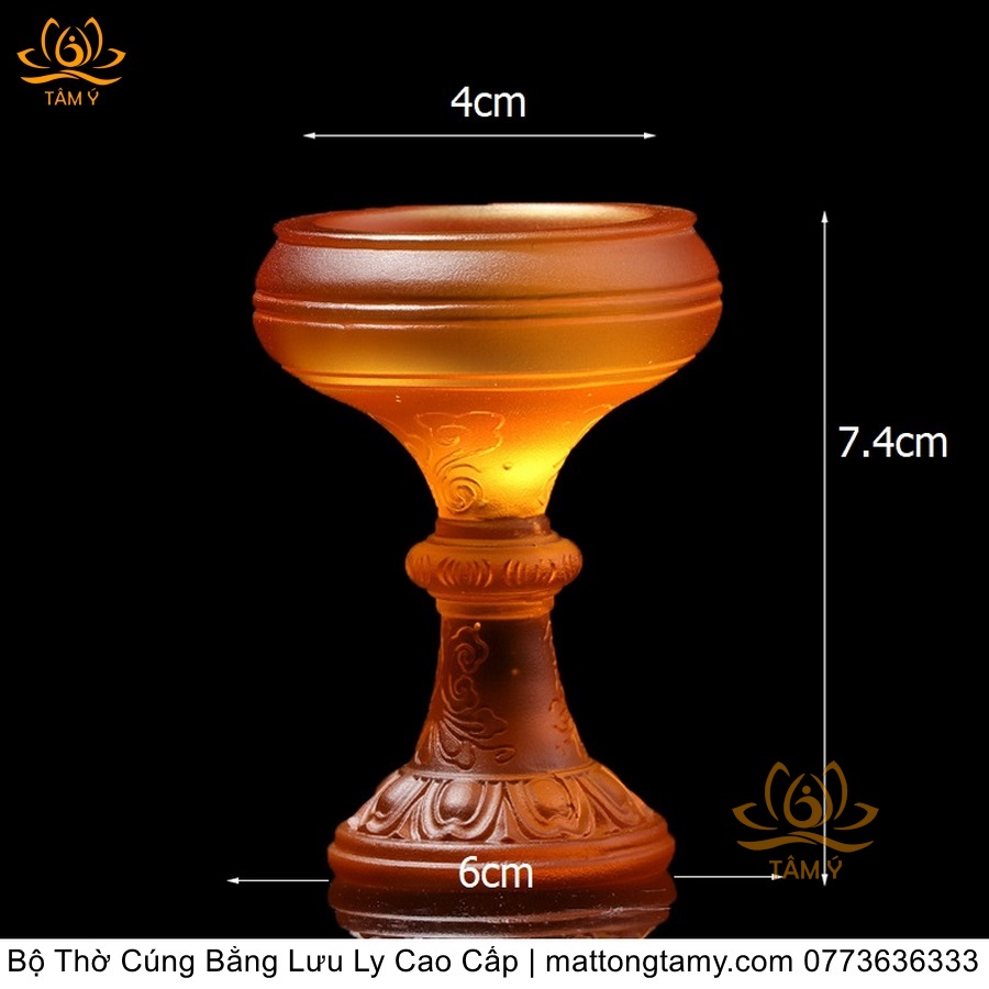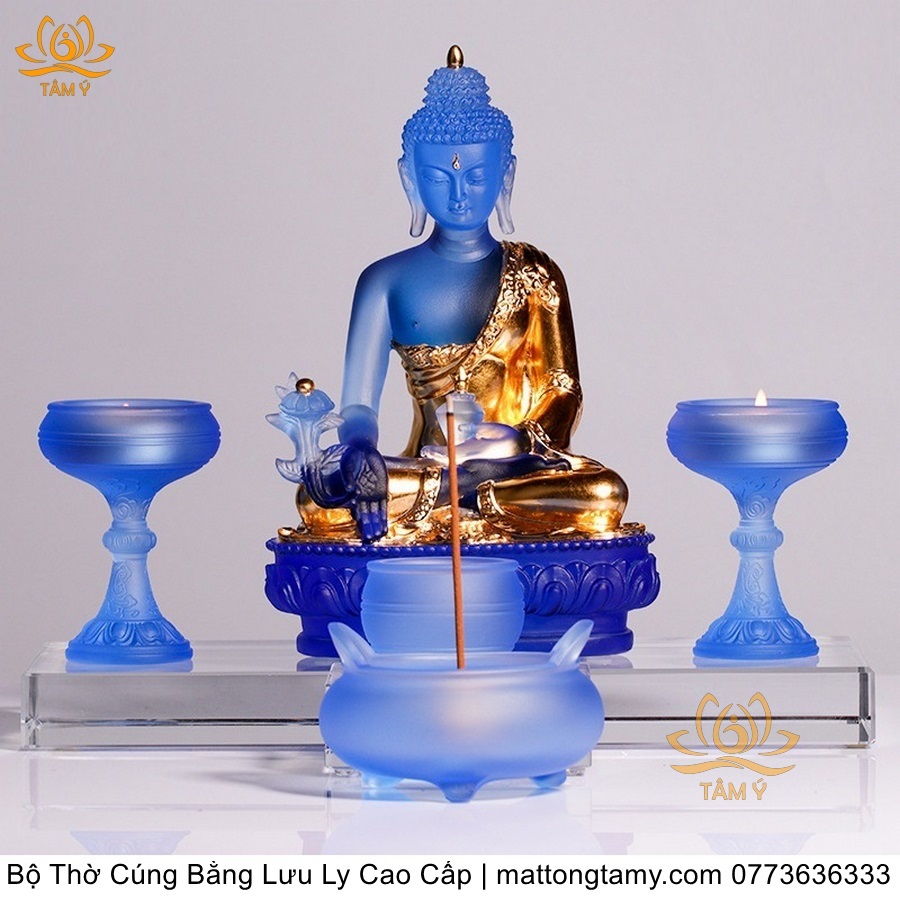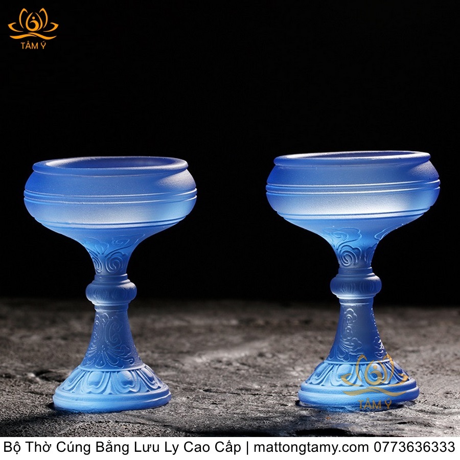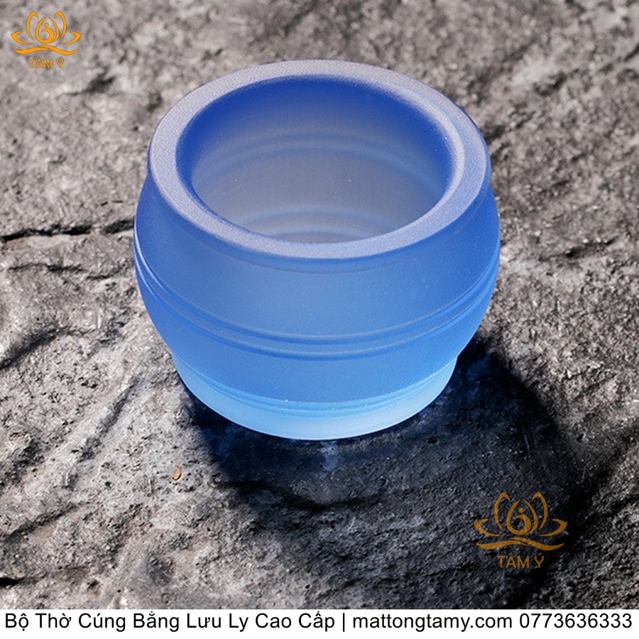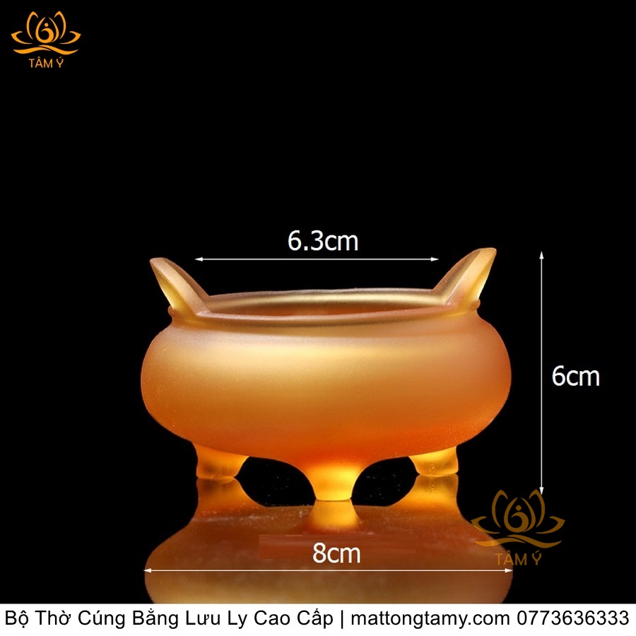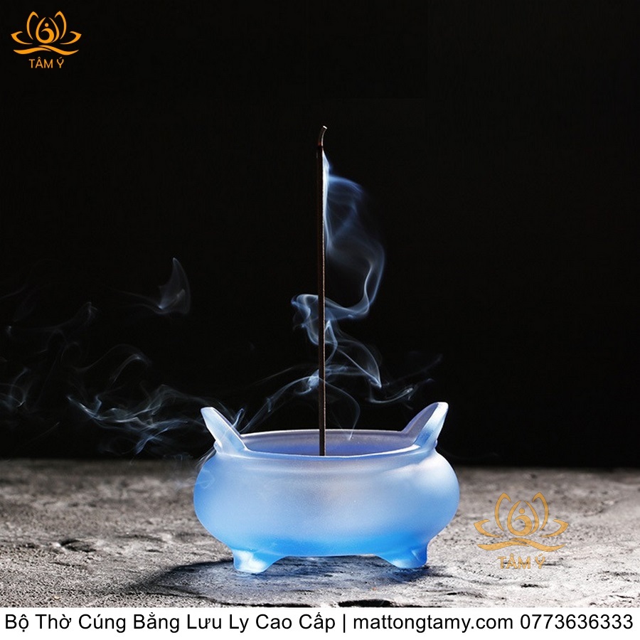 Bộ Lưu Ly Thờ Cúng: Lư Hương, Bát Nến, Chén Nước, 2 Kiểu Thiết Kế, Màu Hổ Phách Và Xanh Dương