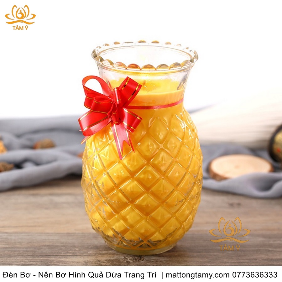 [Bơ Vàng] Đèn Bơ - Nến Bơ Hình Quả Dứa Trang Trí Cháy 3-5-7 Ngày