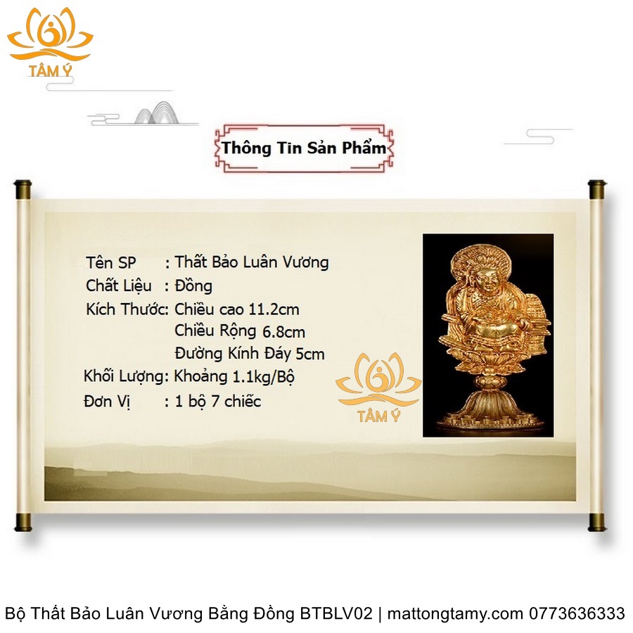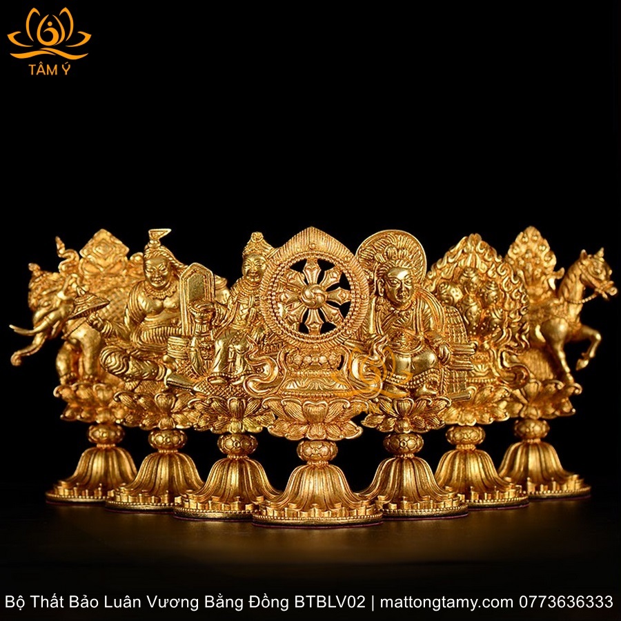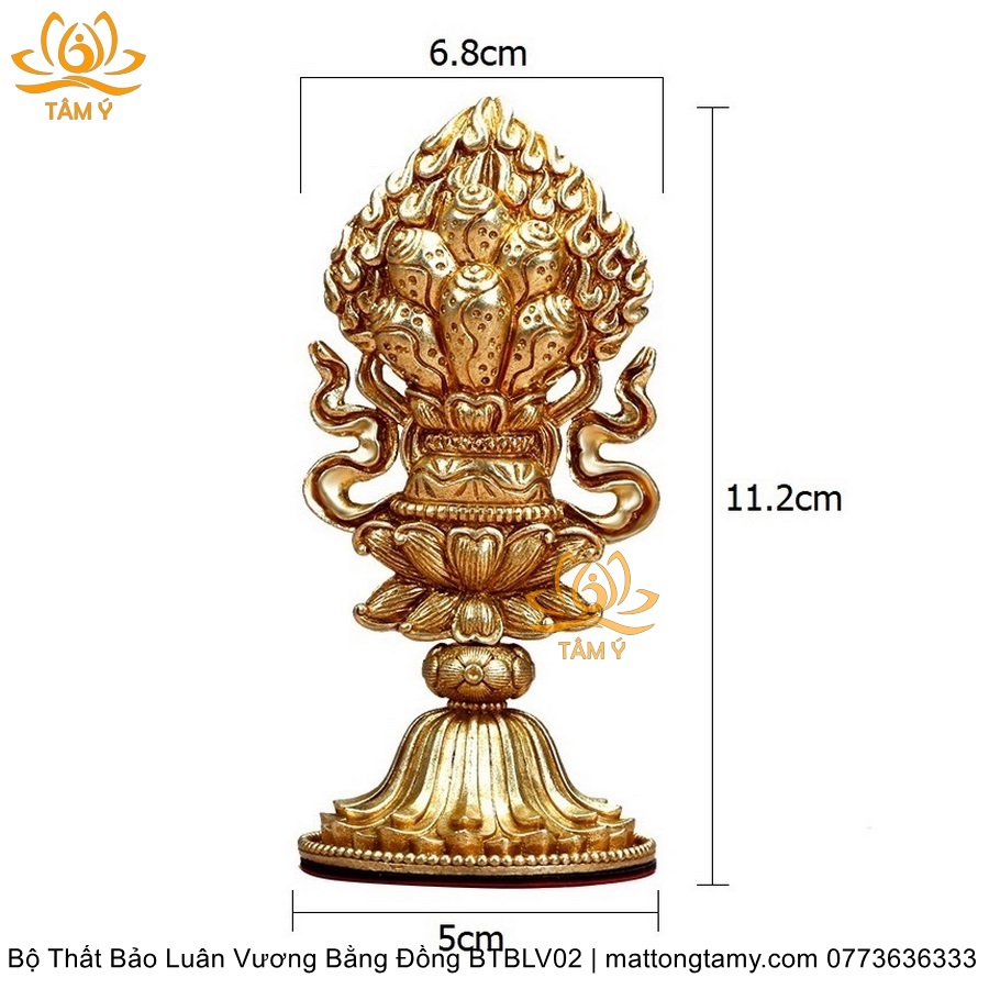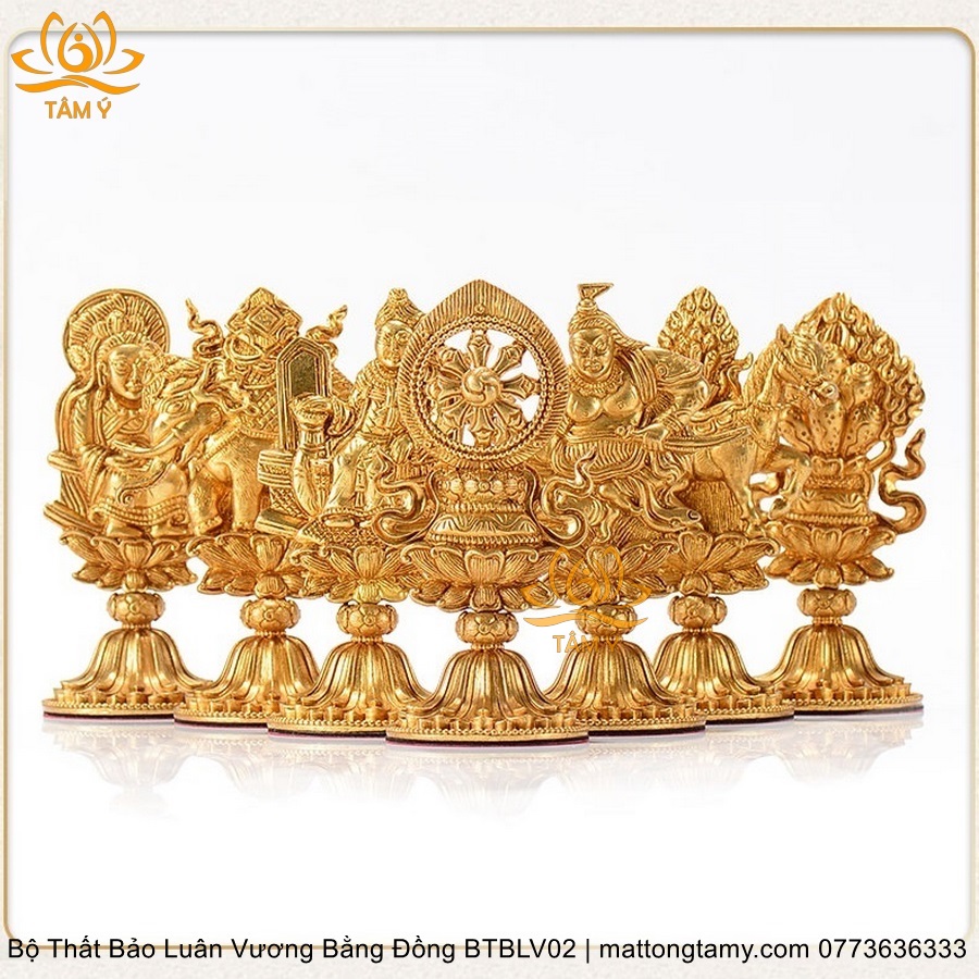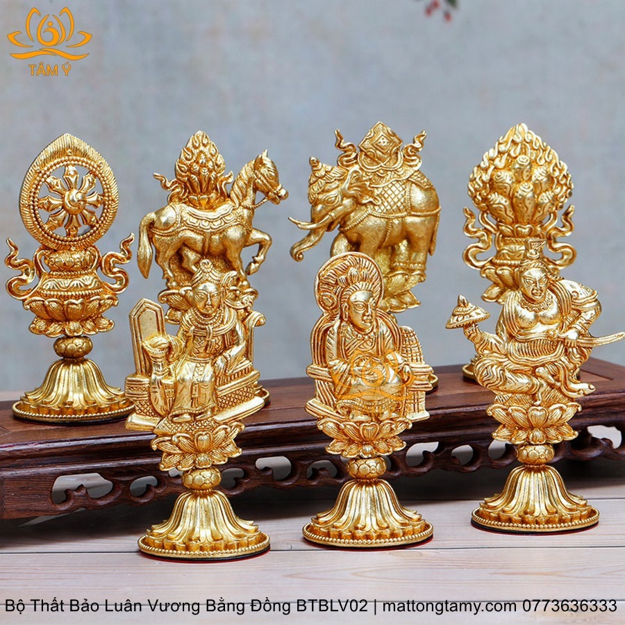 |Cao 11.2cm| Bộ Thất Bảo Luân Vương Bằng Đồng Nguyên Chất, Hoàn Thiên Thủ Công BTBLV02