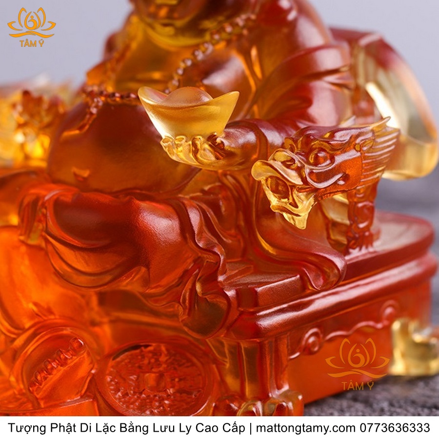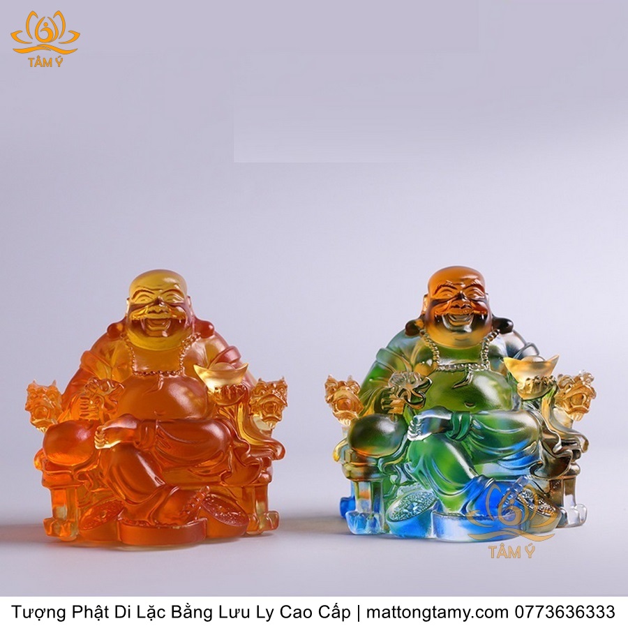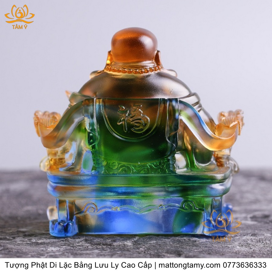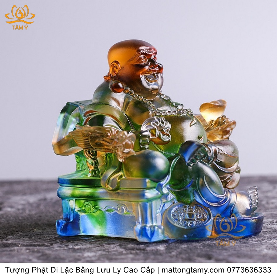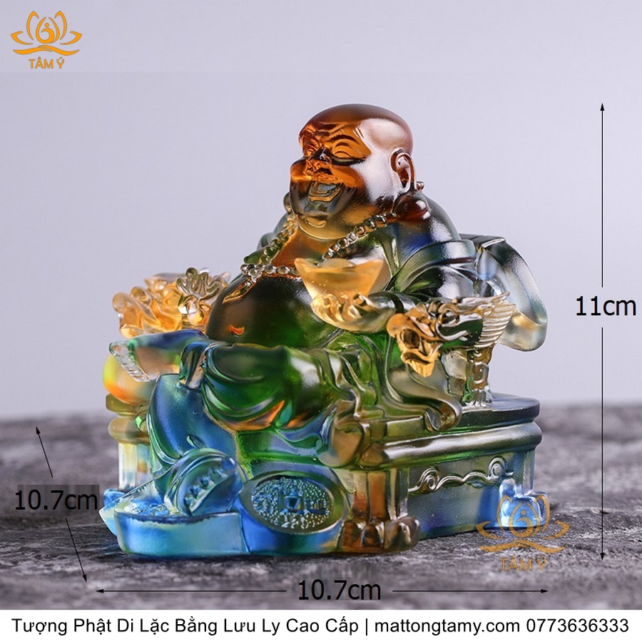 |Cao 11cm| Tượng Phật Di Lặc Bằng Lưu Ly Cao Cấp Màu Ngũ Sắc Và Hổ Phách Thiết Kế Sang Trọng, Siêu Đẹp TP221