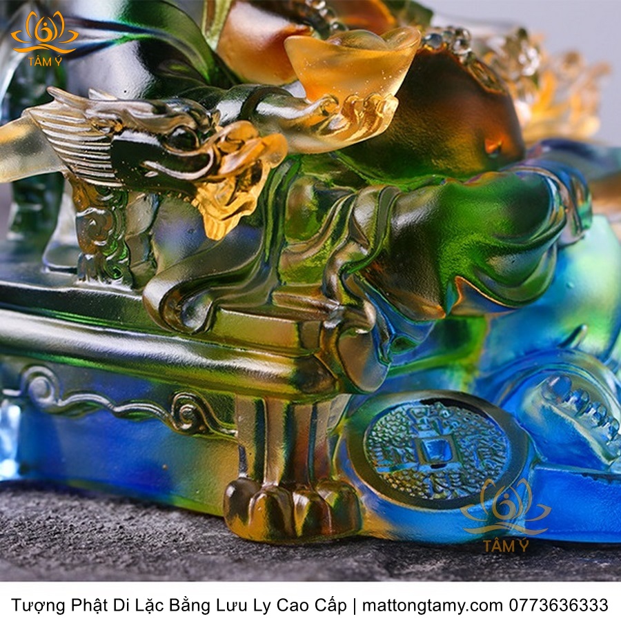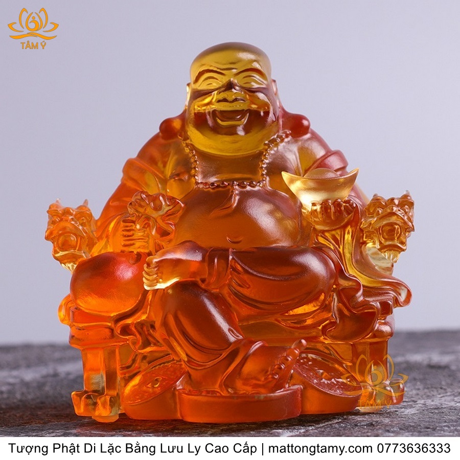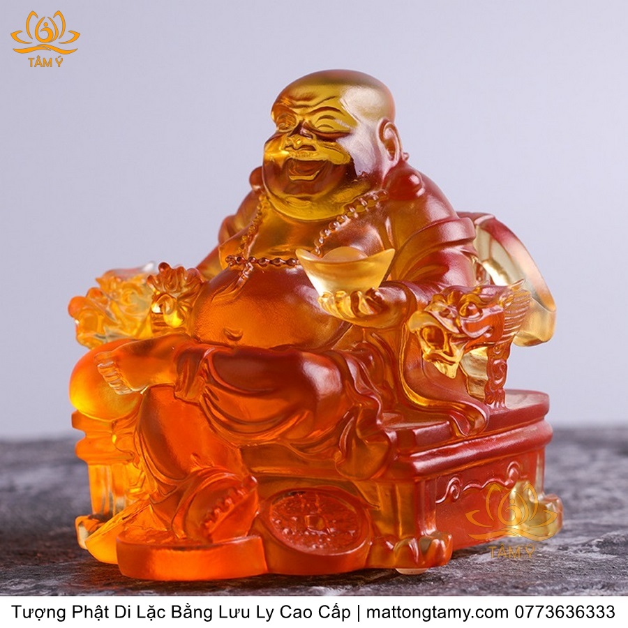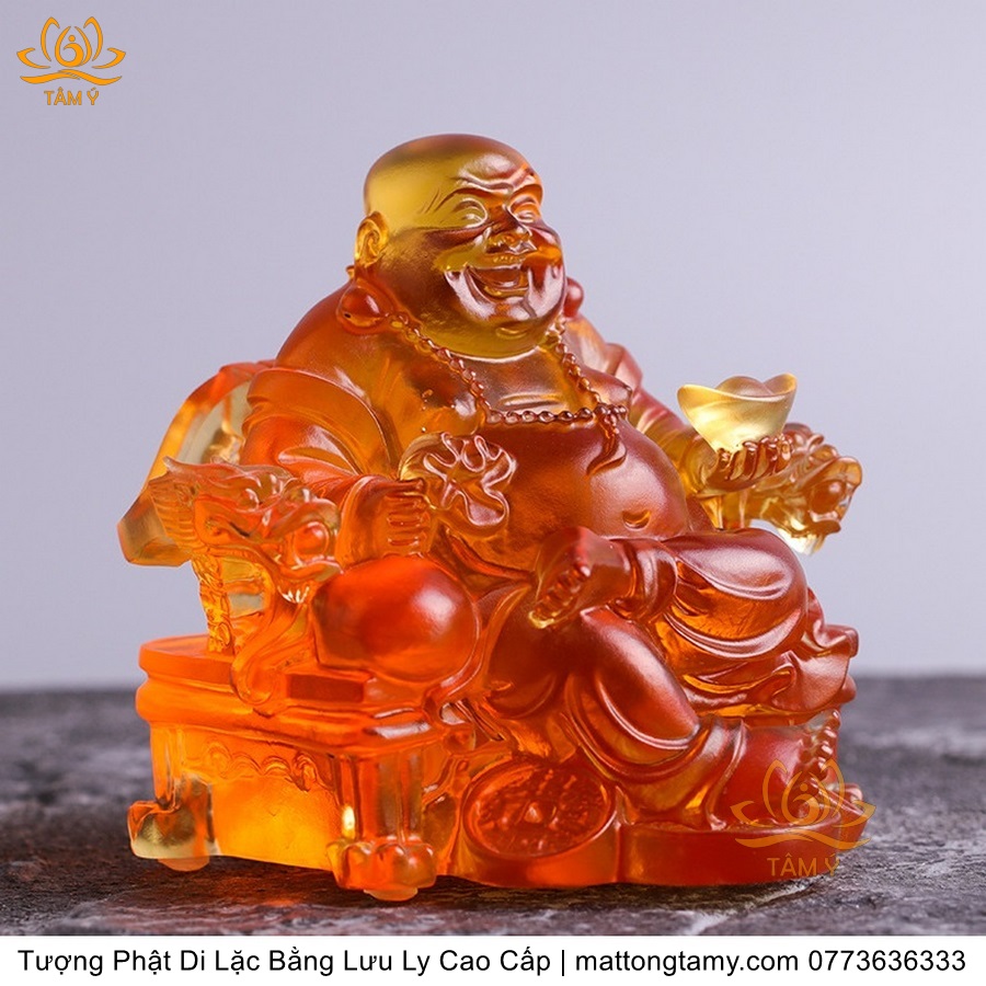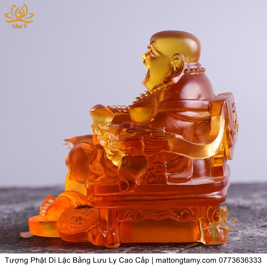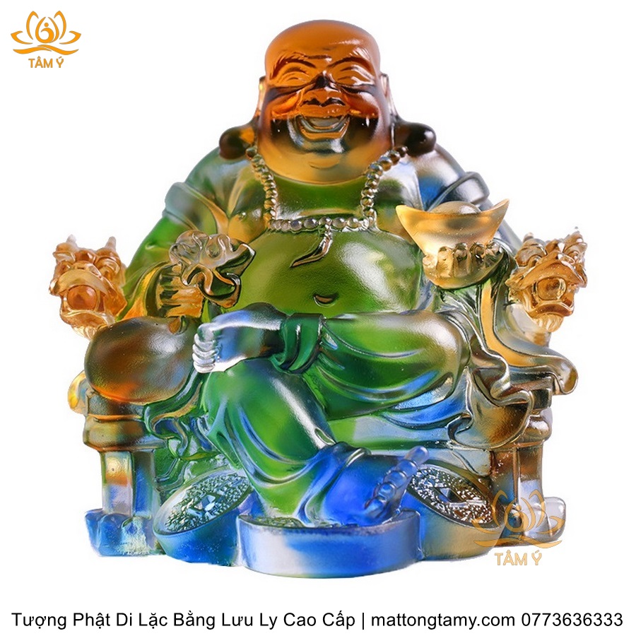 |Cao 11cm| Tượng Phật Di Lặc Bằng Lưu Ly Cao Cấp Màu Ngũ Sắc Và Hổ Phách Thiết Kế Sang Trọng, Siêu Đẹp TP221