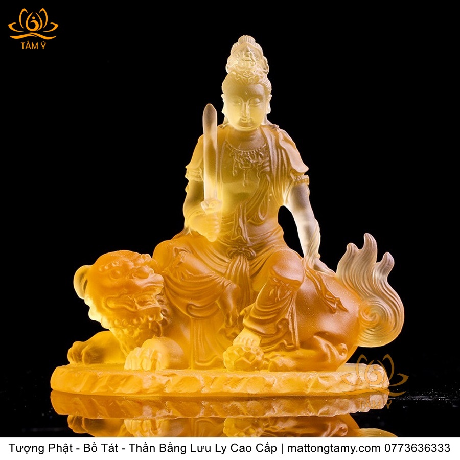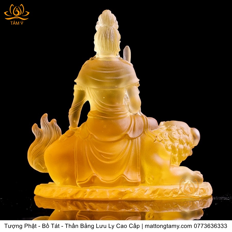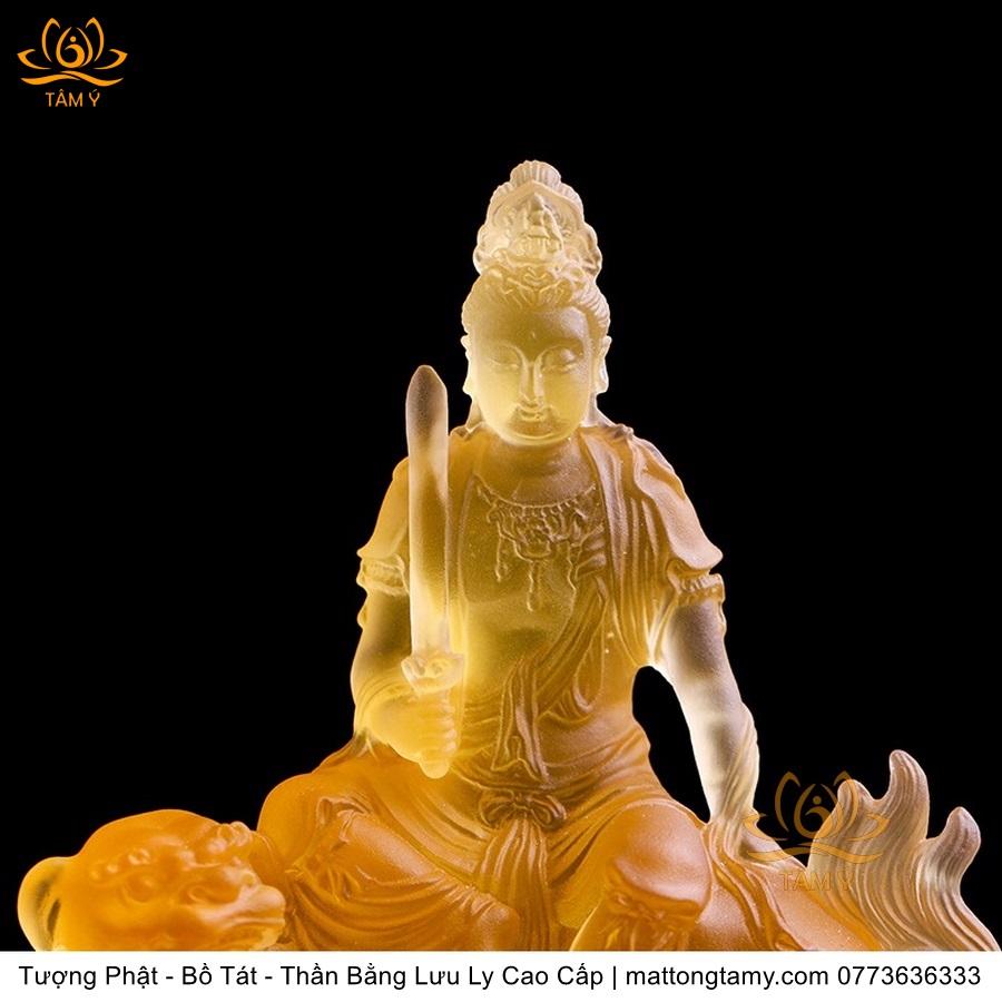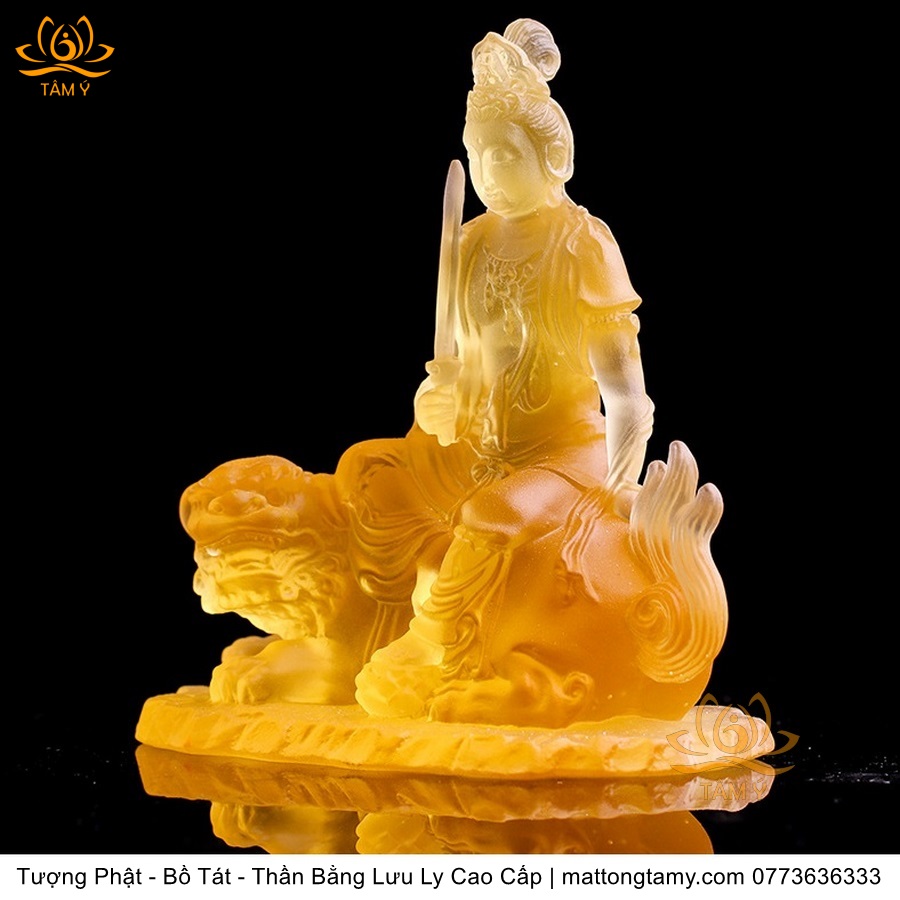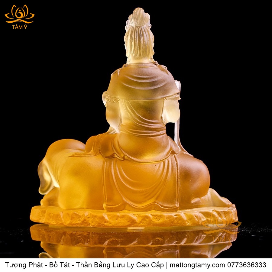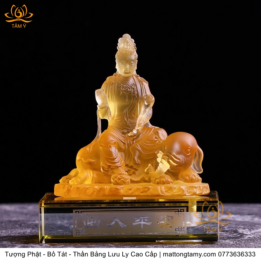 Chất liệu: Lưu Ly Cao Cấp. Kích thước: Có Đế Rời: Cao 13cm, Rộng Trái Qua Phải 11.2cm, Rộng Từ Sau Ra Trước 6.7cm. Không Đế Rời: Cao 10.5cm, Rộng Trái Qua Phải 9.8cm, Rộng Từ Sau Ra Trước 6.3cm. Đức Phổ Hiền tượng trưng cho CHÂN LÝ, còn Đức Văn Thù tượng trưng cho CHÂN TRÍ. Lý trí dung thông. Phổ Hiền tượng trưng cho tam muội, còn Văn Thù tượng trưng cho Bát Nhã. Phổ Hiền tượng trưng cho hạnh, còn Văn Thù tượng trưng cho giải.