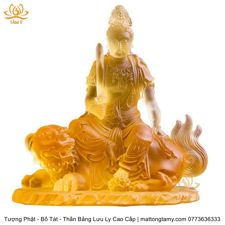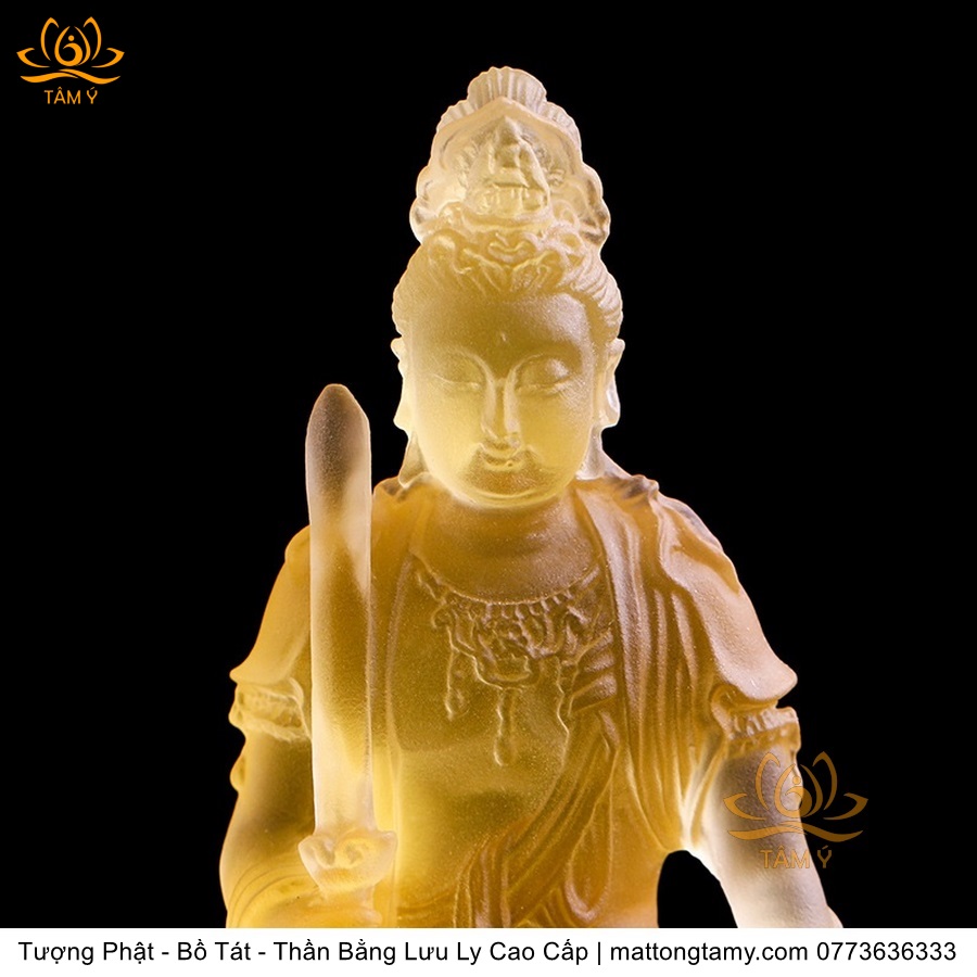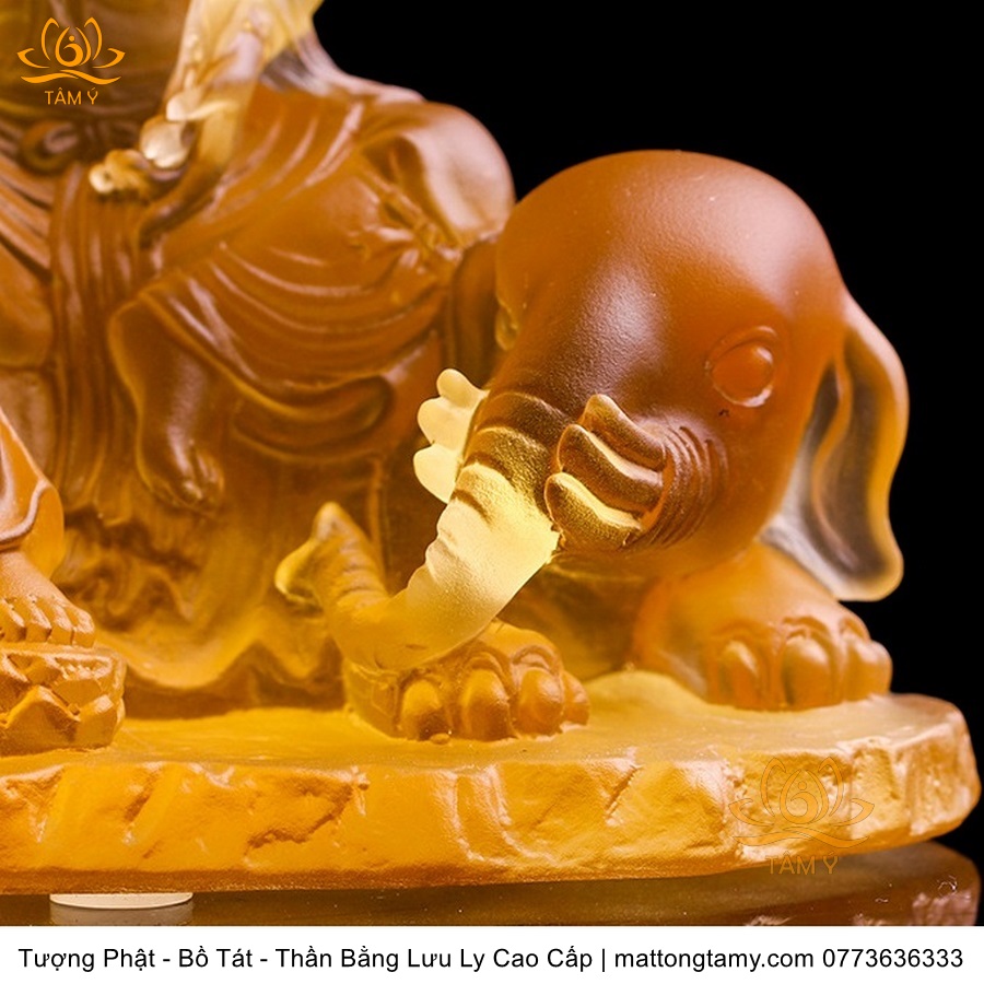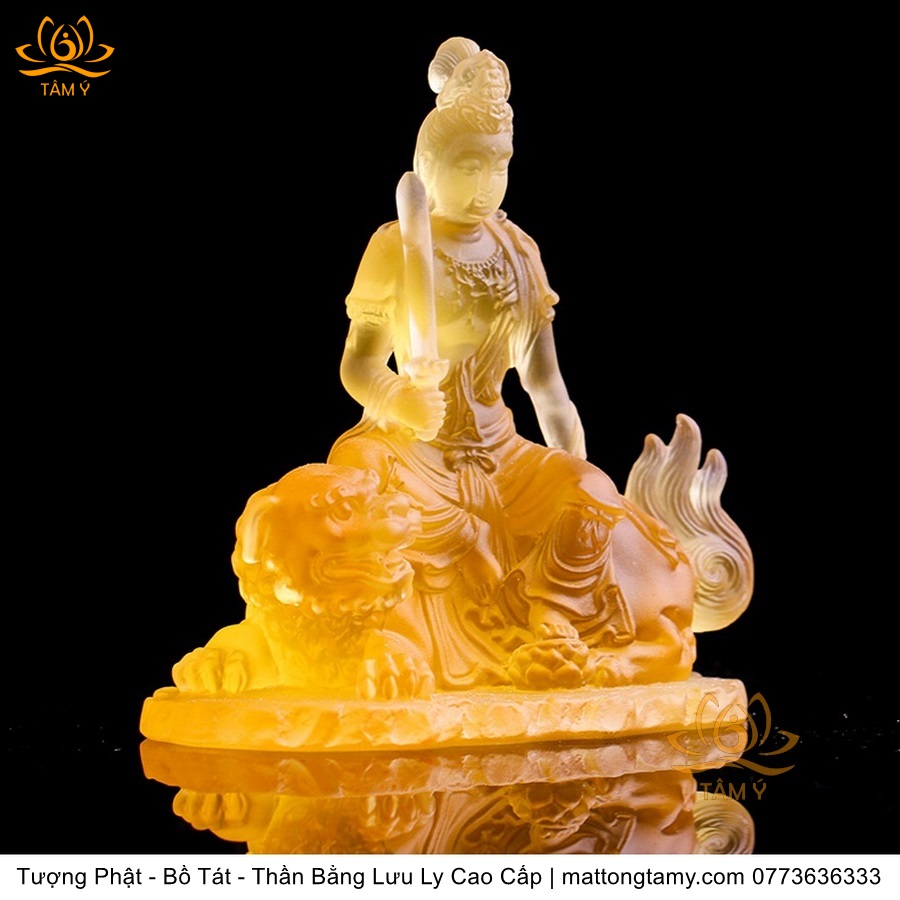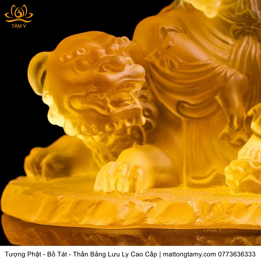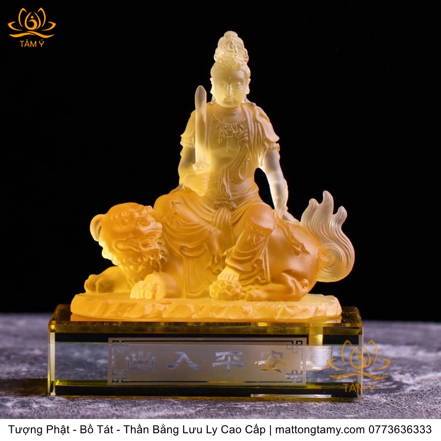 Chất liệu: Lưu Ly Cao Cấp. Kích thước: Có Đế Rời: Cao 13cm, Rộng Trái Qua Phải 11.2cm, Rộng Từ Sau Ra Trước 6.7cm. Không Đế Rời: Cao 10.5cm, Rộng Trái Qua Phải 9.8cm, Rộng Từ Sau Ra Trước 6.3cm. Đức Phổ Hiền tượng trưng cho CHÂN LÝ, còn Đức Văn Thù tượng trưng cho CHÂN TRÍ. Lý trí dung thông. Phổ Hiền tượng trưng cho tam muội, còn Văn Thù tượng trưng cho Bát Nhã. Phổ Hiền tượng trưng cho hạnh, còn Văn Thù tượng trưng cho giải.