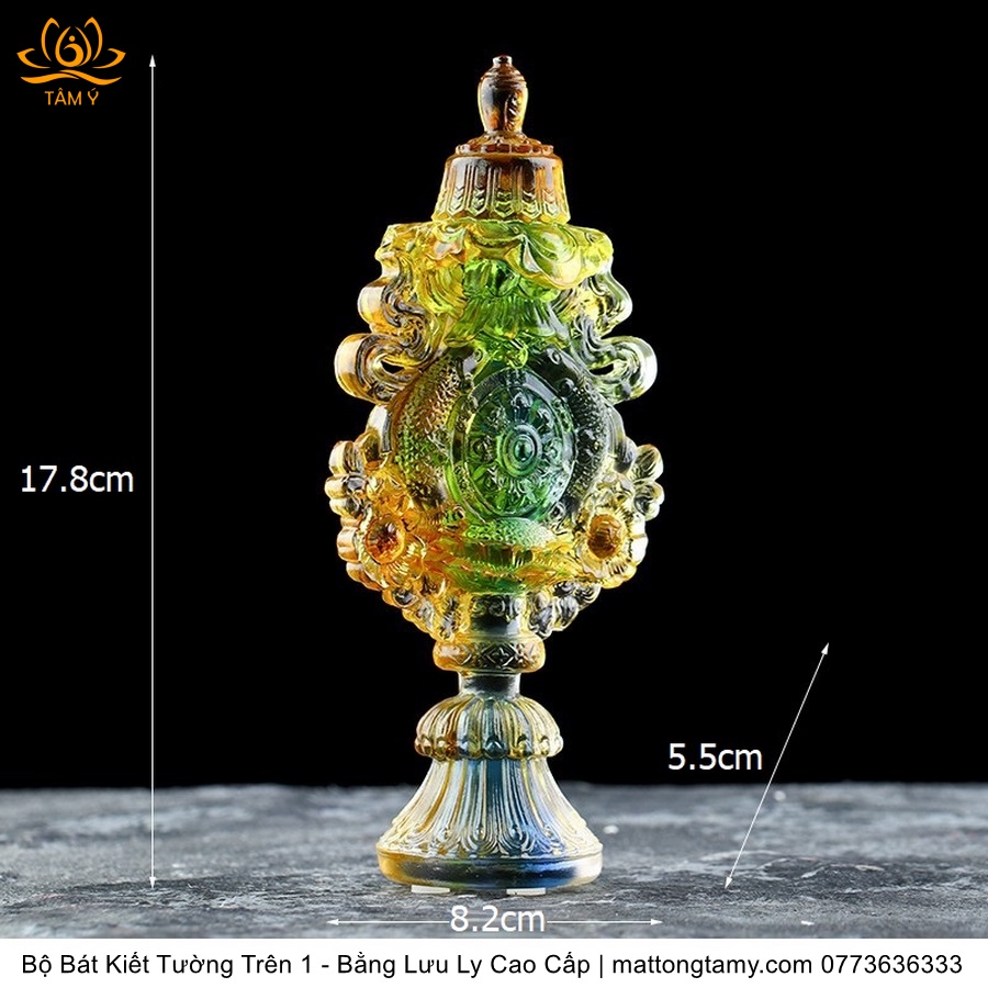 [Cao 17.8cm] Bộ Tổng Hợp Bát Kiết Tường 8 trên 1 (Bát Đại Cát Tường - Tám Tướng Cát Tường) Bằng Lưu Ly Cao Cấp B08