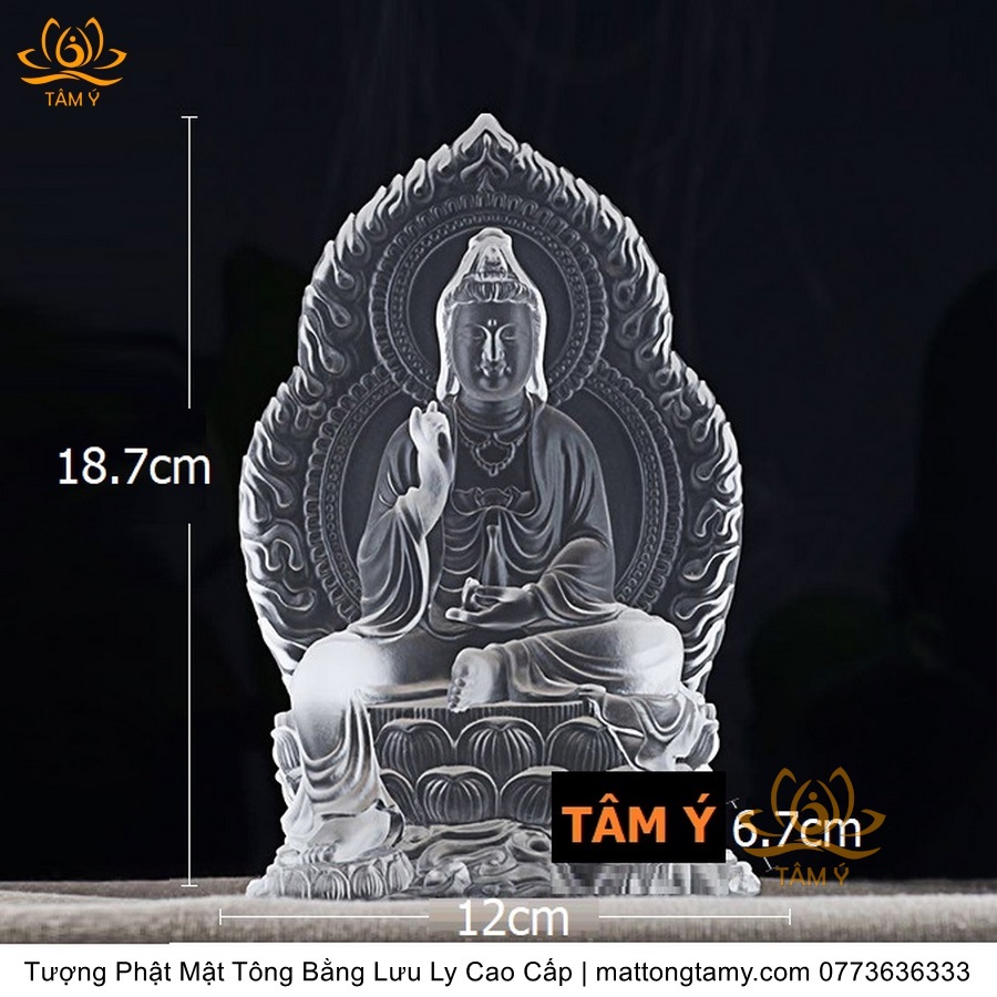 Chất liệu: Lưu Ly Cao Cấp. Kích thước: Cao 23cm, Rộng Trái Qua Phải 15cm, Rộng Từ Sau Ra Trước 12.5cm. Các thông tin khác về sản phẩm vui lòng liên hệ thỉnh tại SĐT: 0773636333.