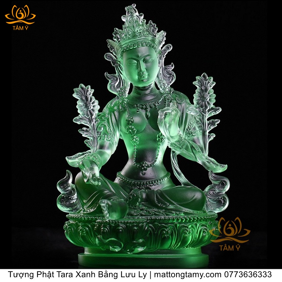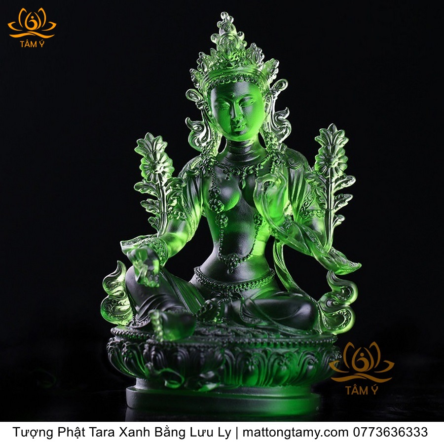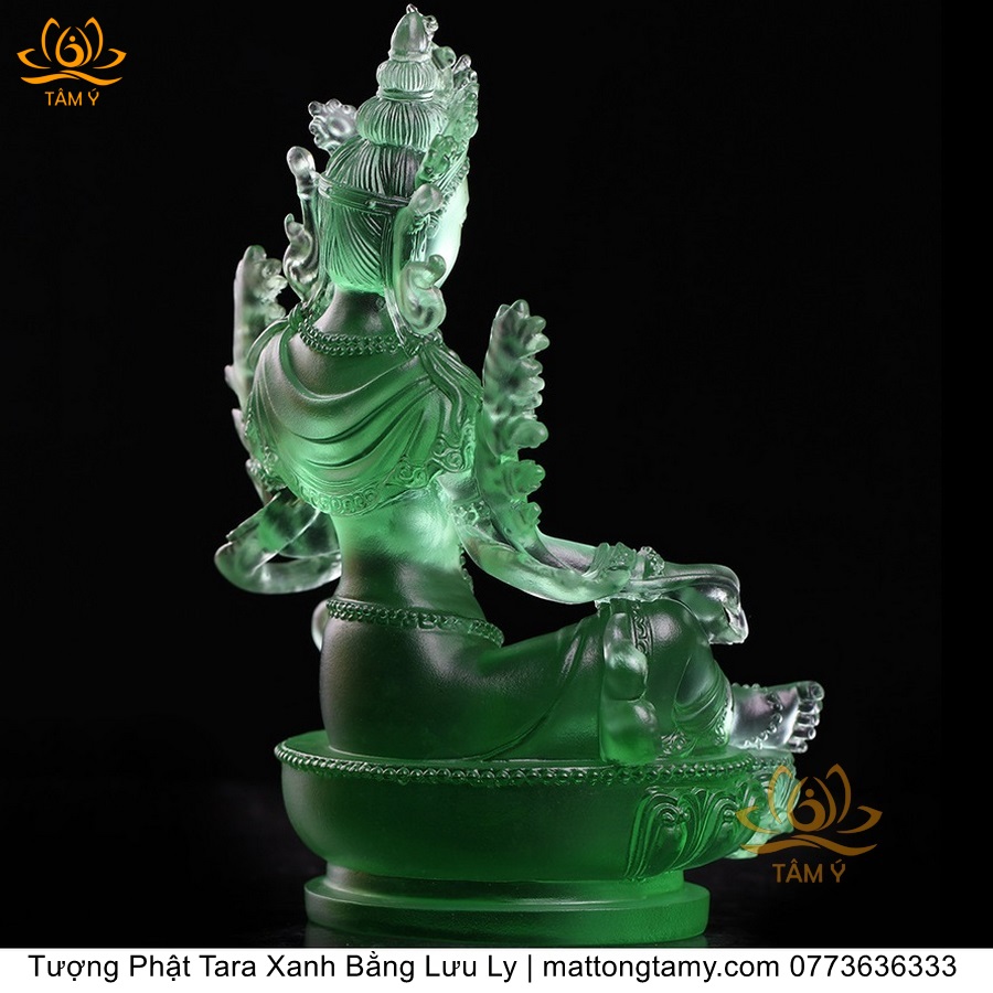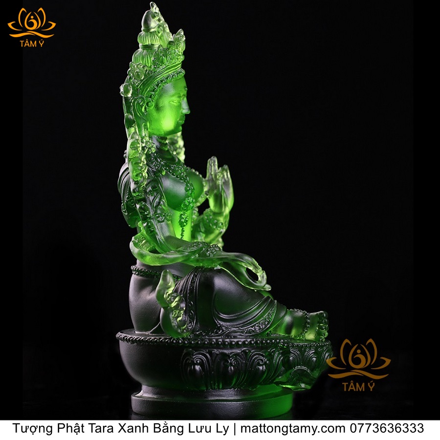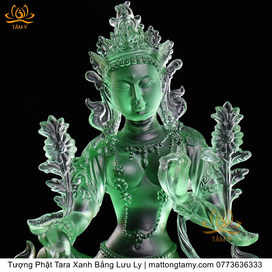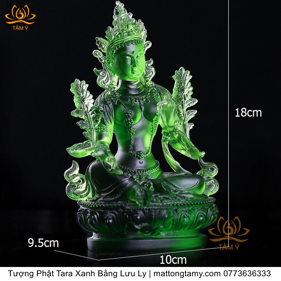 |Cao 18cm| Tượng Phật Tara Xanh Lục Độ Phật Mẫu Bằng Lưu Ly Cao Cấp Màu Xanh Ngọc, Thiết Kế Sang Trọng TP211