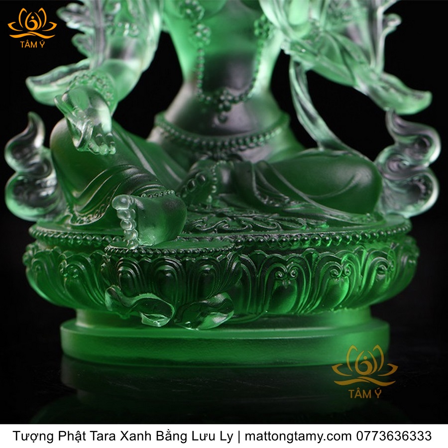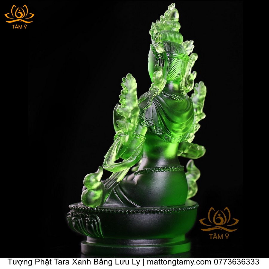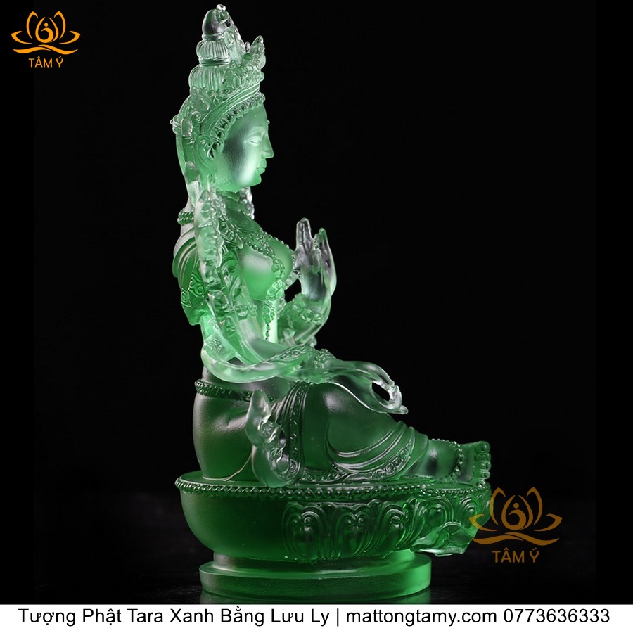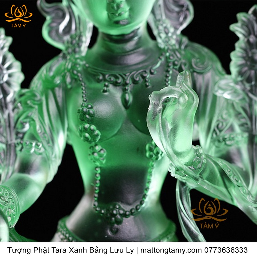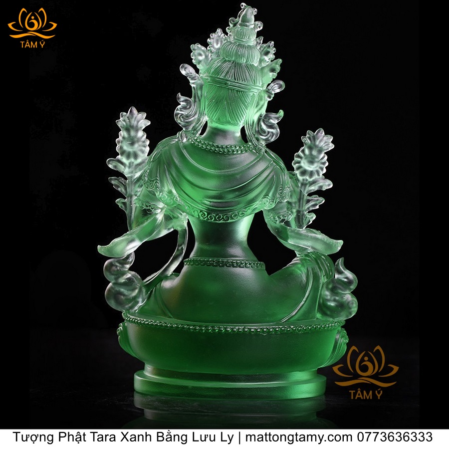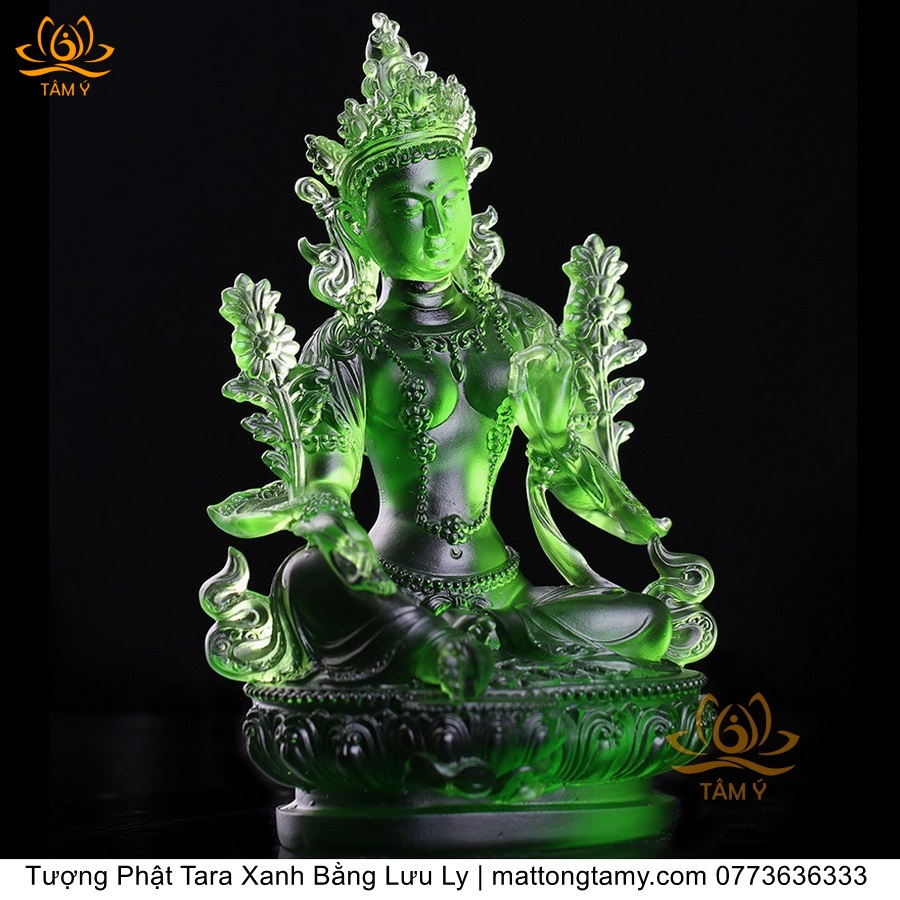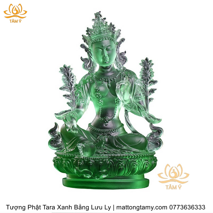 |Cao 18cm| Tượng Phật Tara Xanh Lục Độ Phật Mẫu Bằng Lưu Ly Cao Cấp Màu Xanh Ngọc, Thiết Kế Sang Trọng TP211