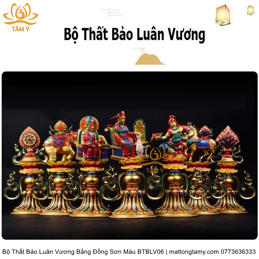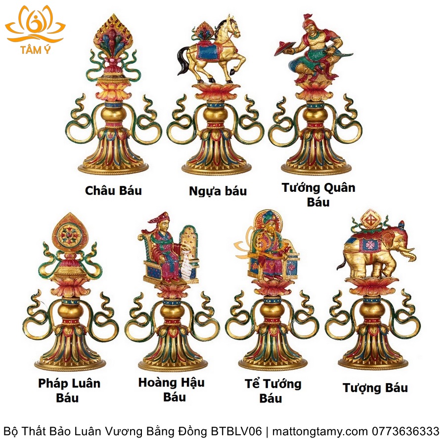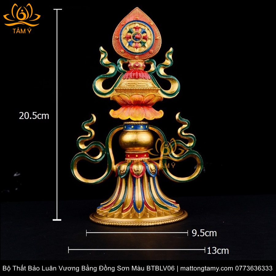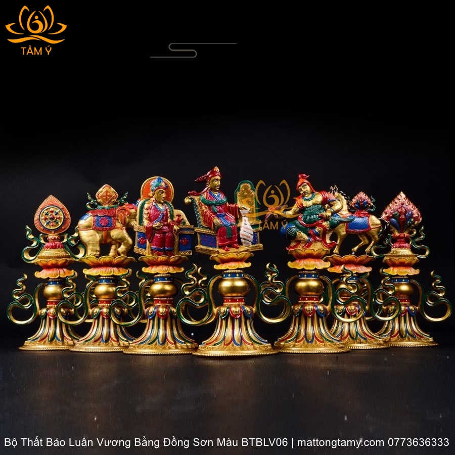|Cao 20.5cm| Bộ Thất Bảo Luân Vương Bằng Bằng Đồng Nguyên Chất Sơn Nhiều Màu Cao Cấp, Hoàn Thiên Thủ Công BTBLV06