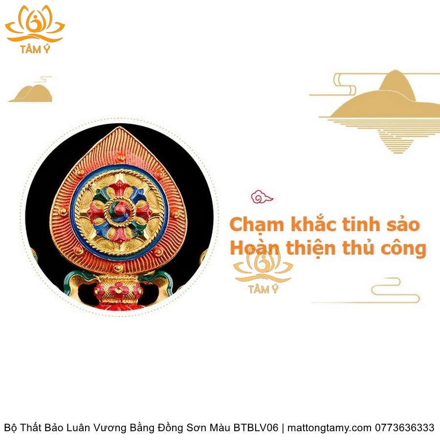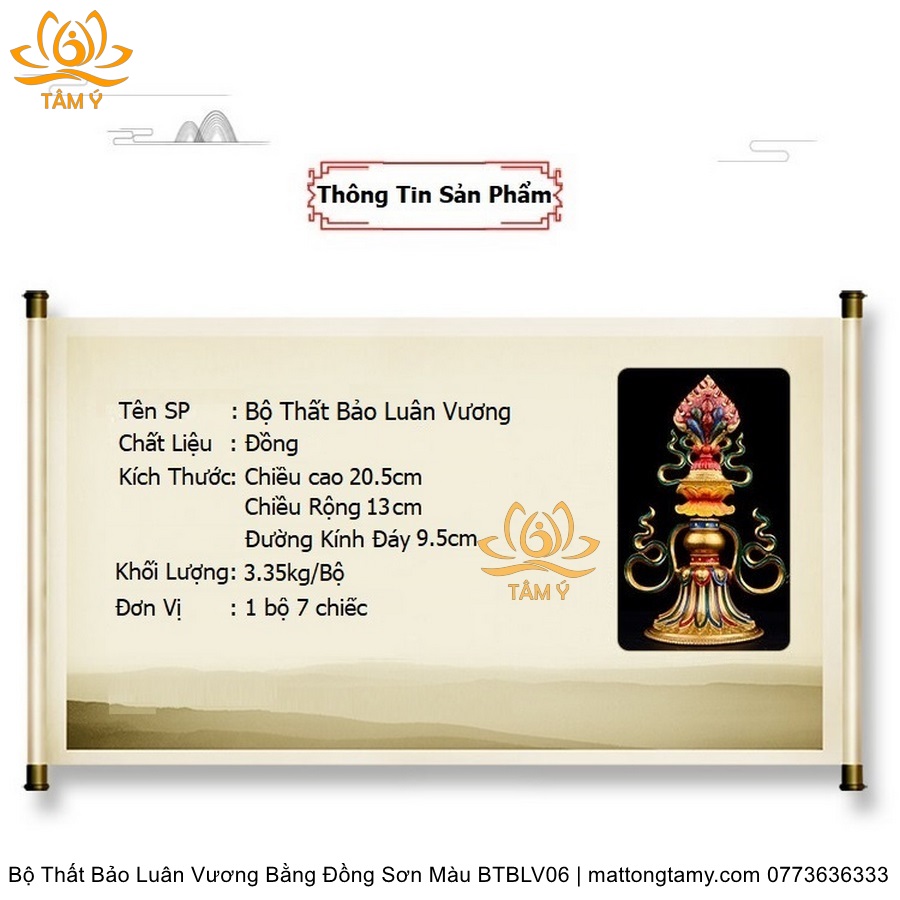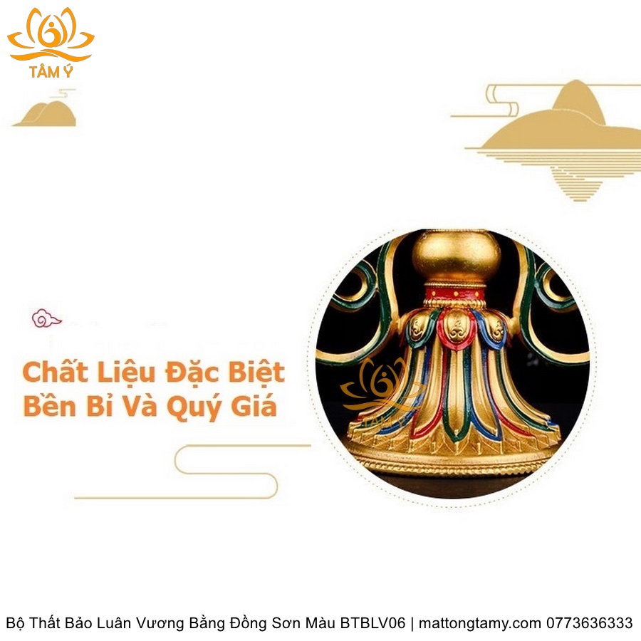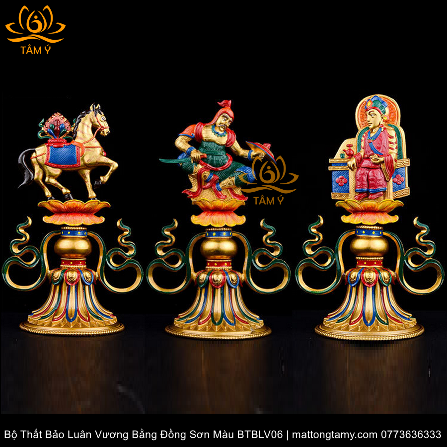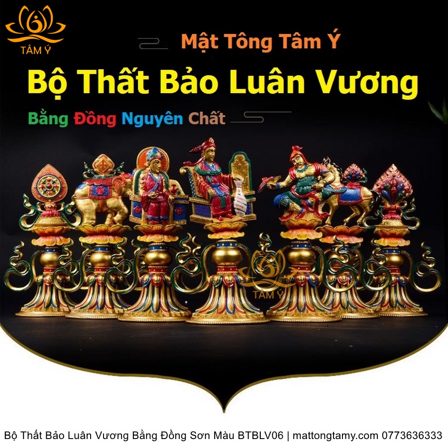 |Cao 20.5cm| Bộ Thất Bảo Luân Vương Bằng Bằng Đồng Nguyên Chất Sơn Nhiều Màu Cao Cấp, Hoàn Thiên Thủ Công BTBLV06