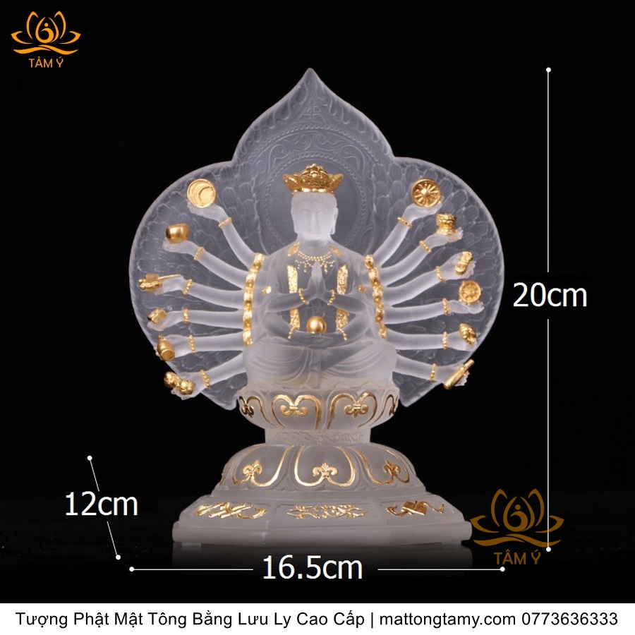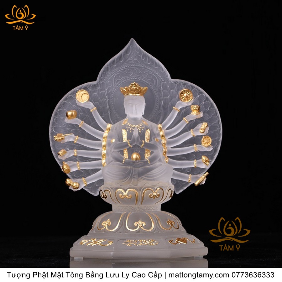 |Cao 22cm| Tượng Phật Quan Âm Thiên Thủ Thiên Nhãn Bằng Lưu Ly Cao Cấp, Sang Trọng TP159
