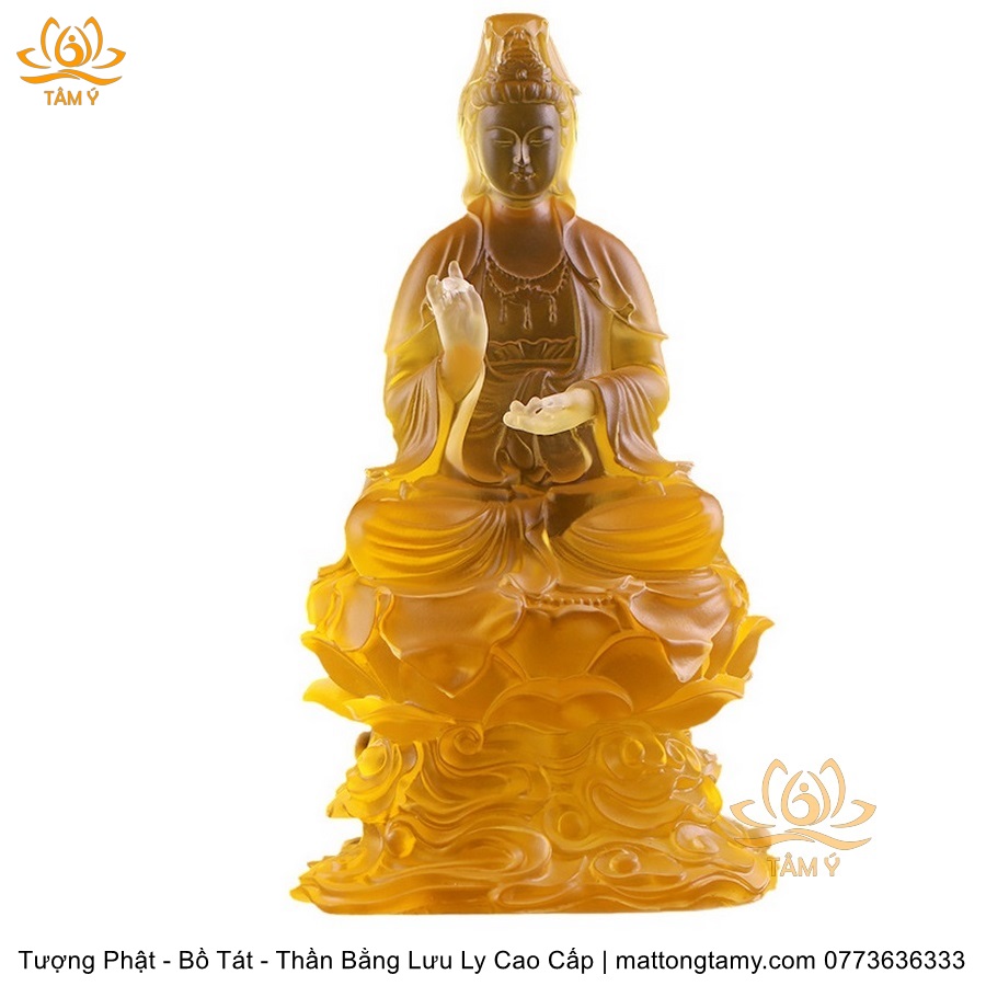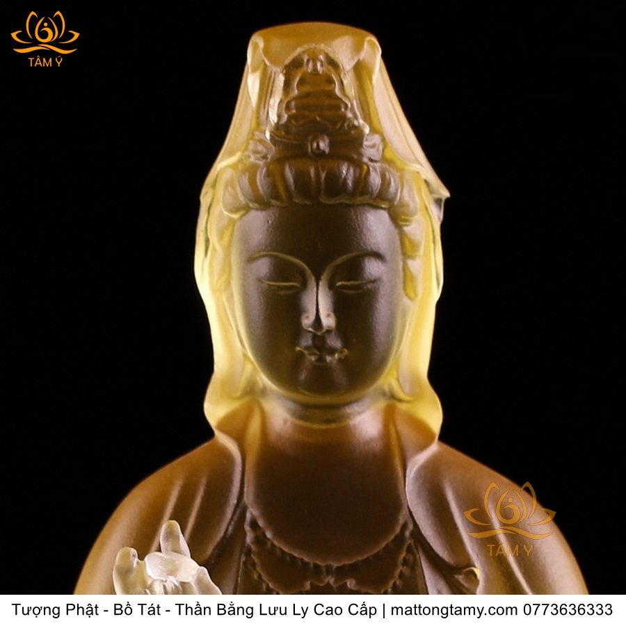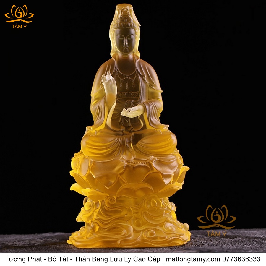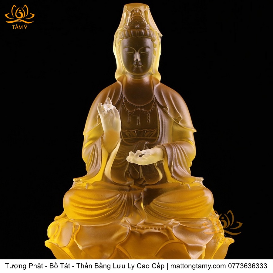 |Cao 20cm| Tượng Quan Âm (Dáng Ngồi) Bồ Tát Bằng Lưu Ly Cao Cấp, Sang Trọng TP248