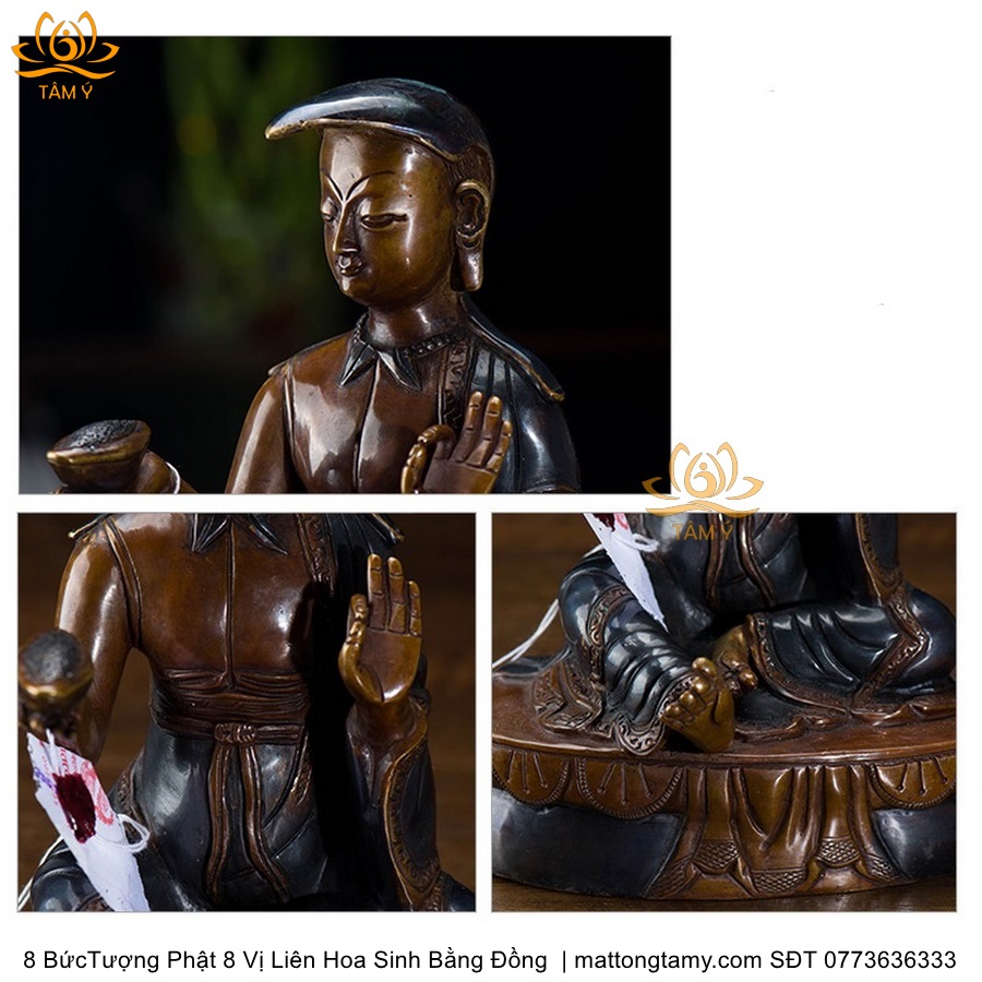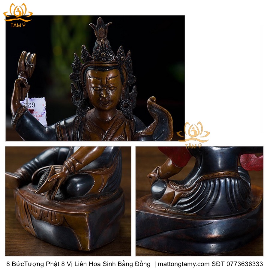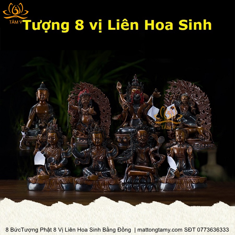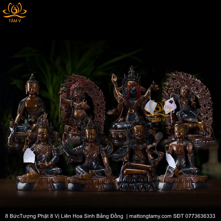 |Cao Đơn 21.5cm| 8 Bức Tượng Phật 8 Vị Liên Hoa Sinh Bằng Đồng Nguyên Chất TP51