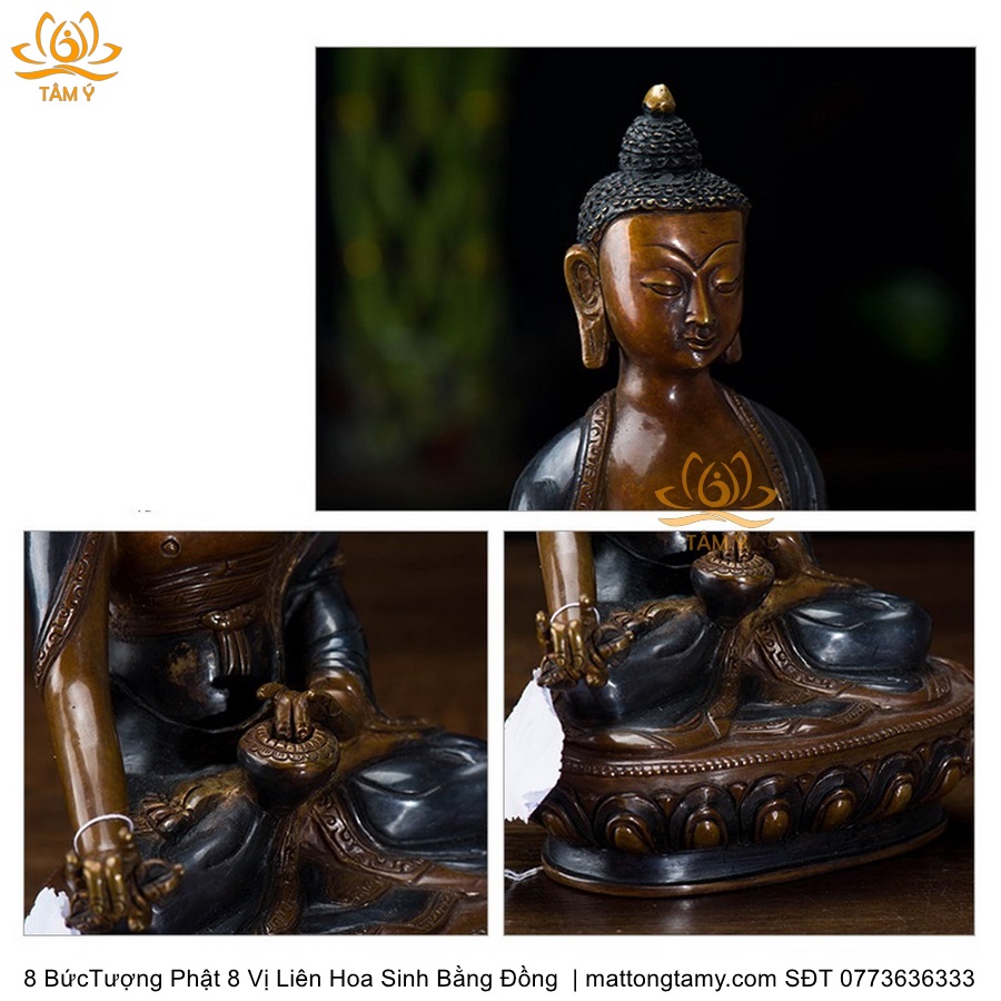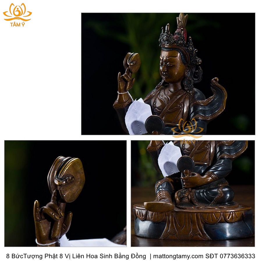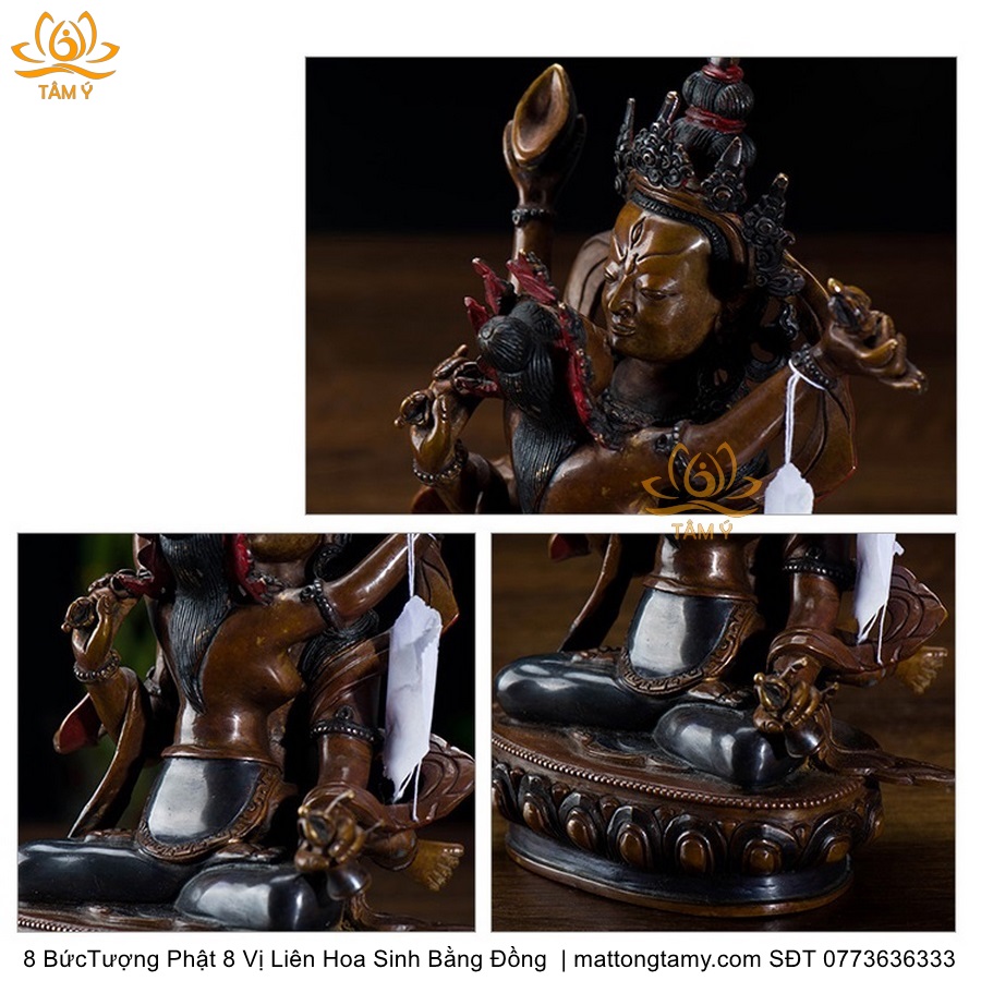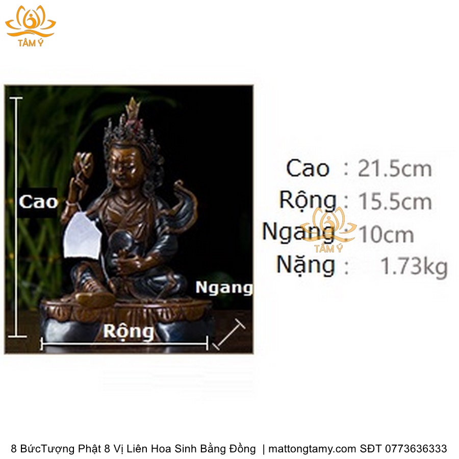 |Cao Đơn 21.5cm| 8 Bức Tượng Phật 8 Vị Liên Hoa Sinh Bằng Đồng Nguyên Chất TP51
