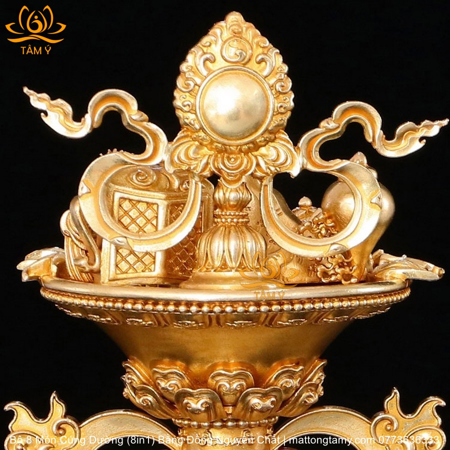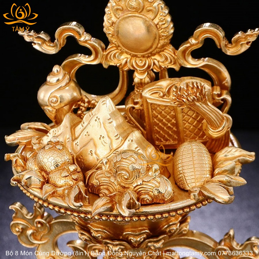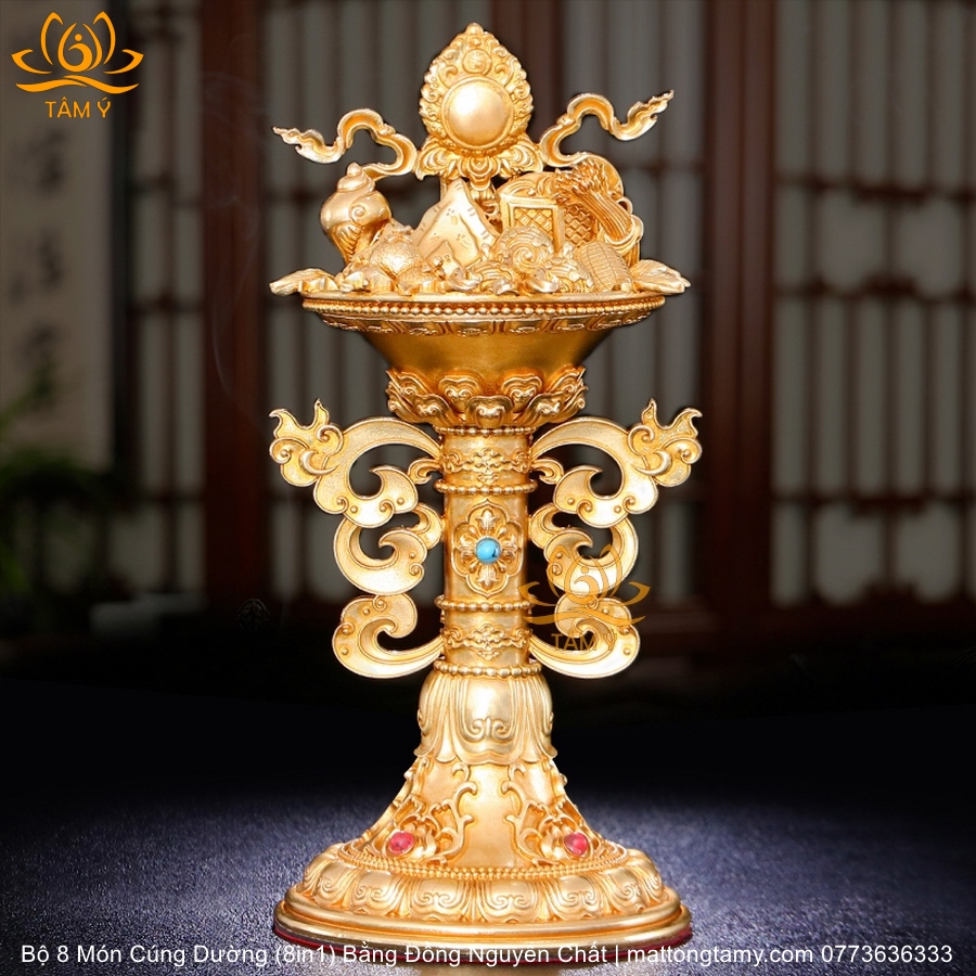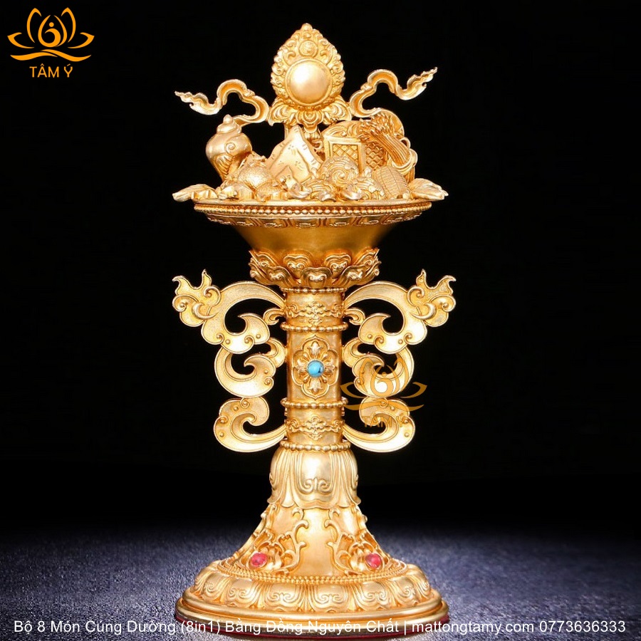 |Cao 21.5cm| Torma Tám Món Cúng Dường (8 Trên 1) Bằng Đồng Nguyên Chất Mạ Vàng