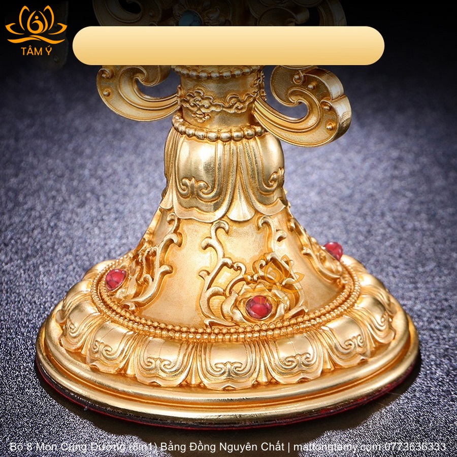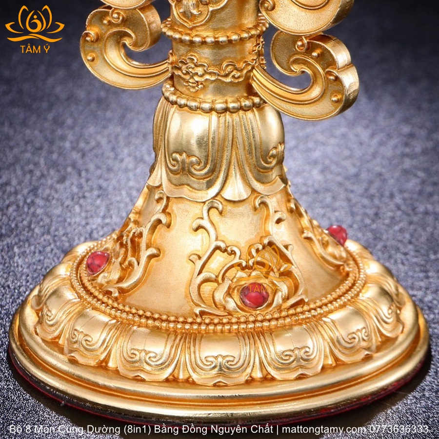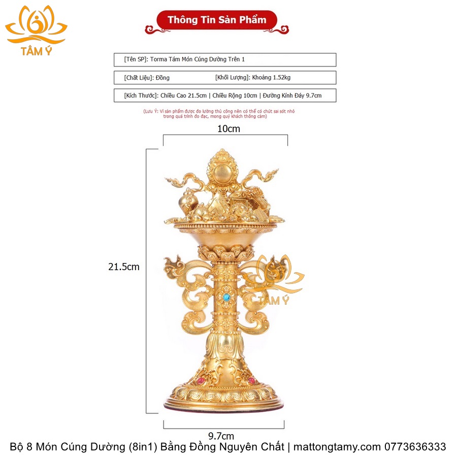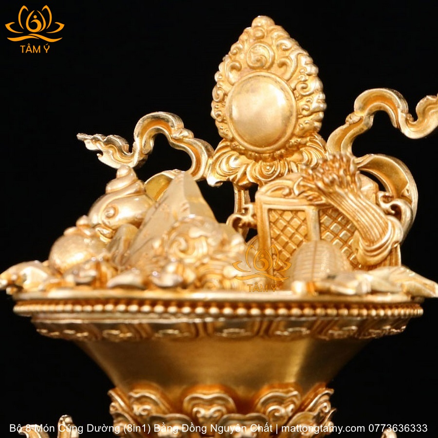 |Cao 21.5cm| Torma Tám Món Cúng Dường (8 Trên 1) Bằng Đồng Nguyên Chất Mạ Vàng