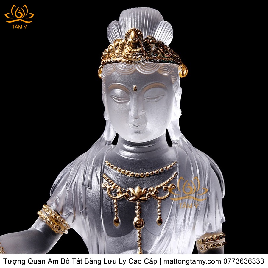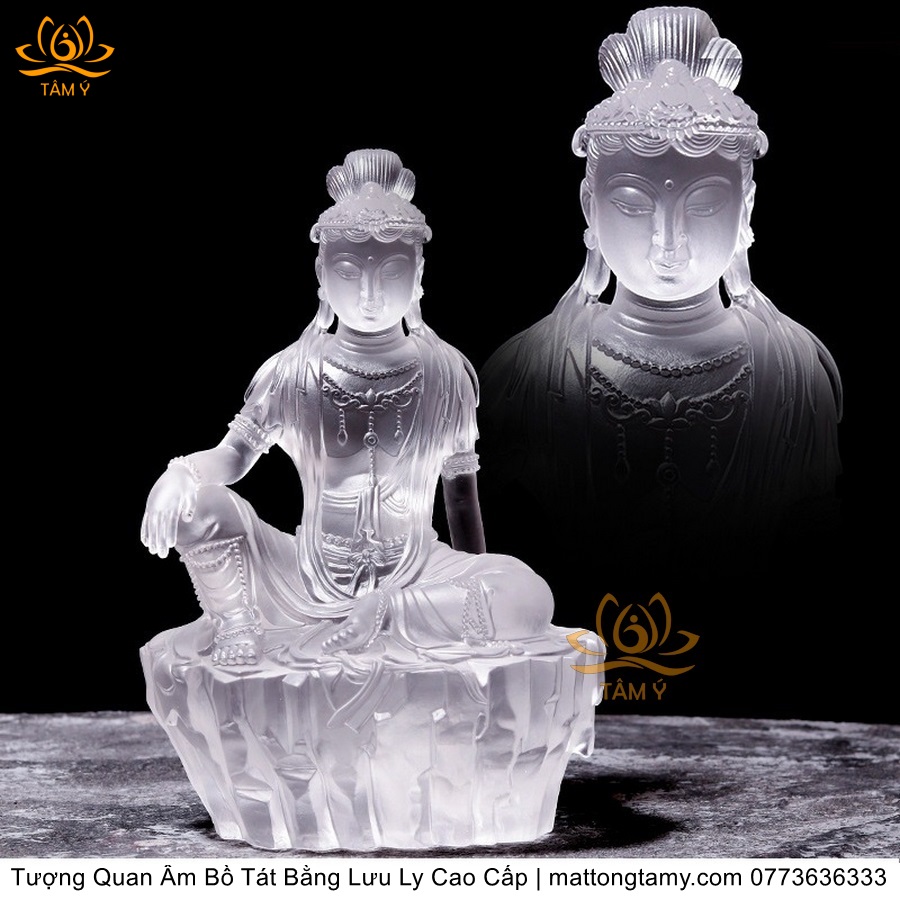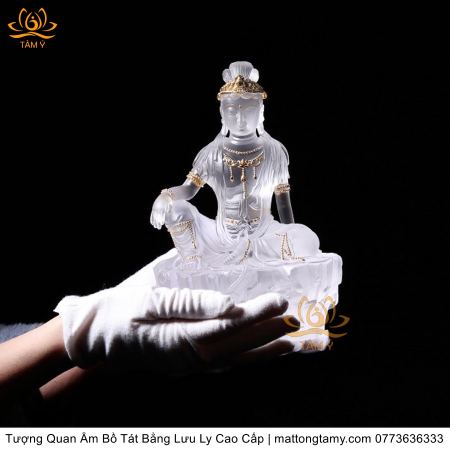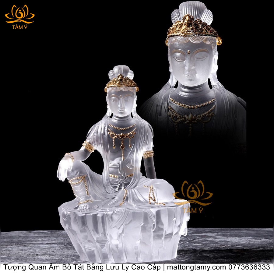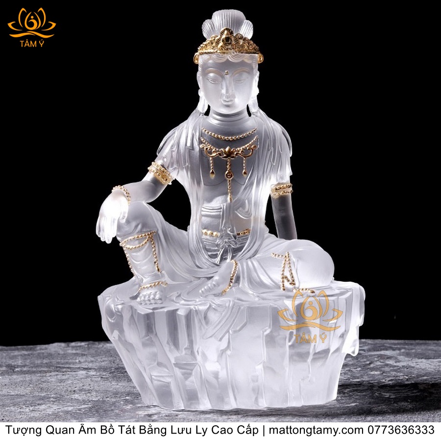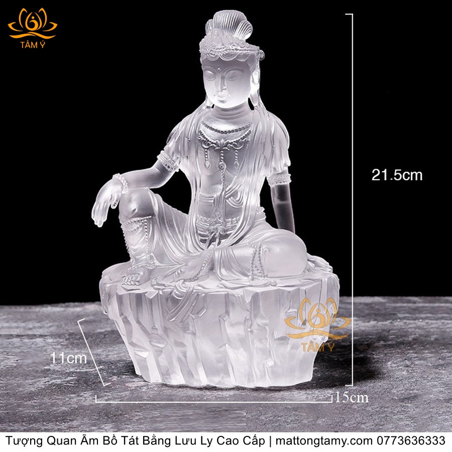 |Cao 21.5cm| Tượng Quan Âm Tự Tại Bồ Tát Bằng Lưu Ly Cao Cấp Thiết Kế Sang Trọng TP138