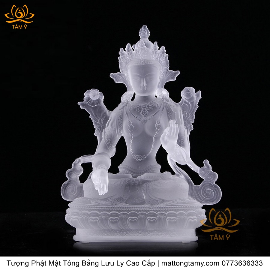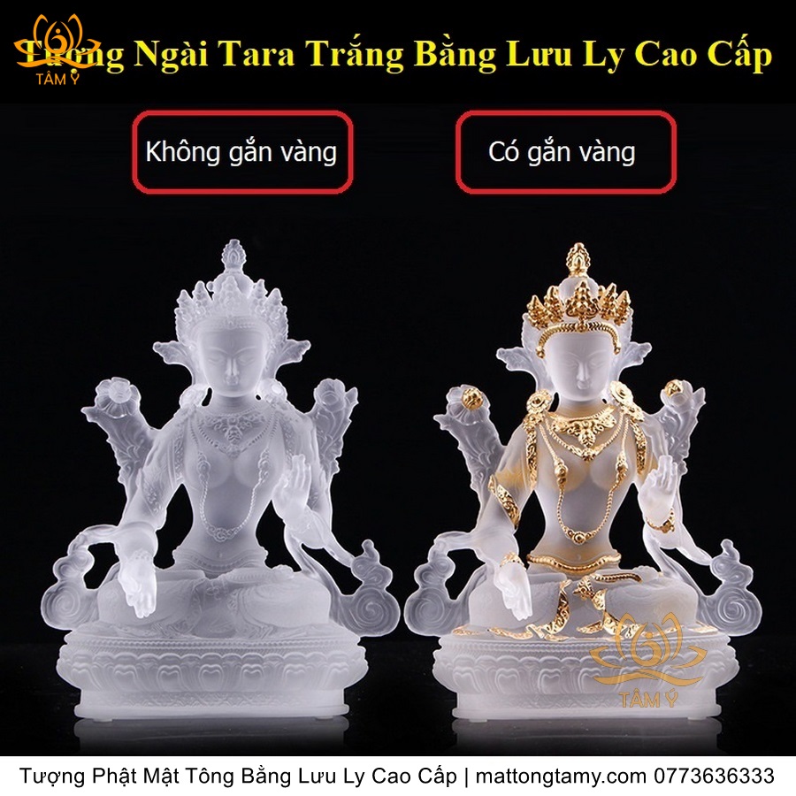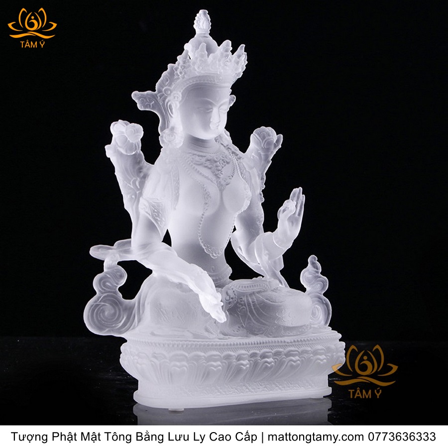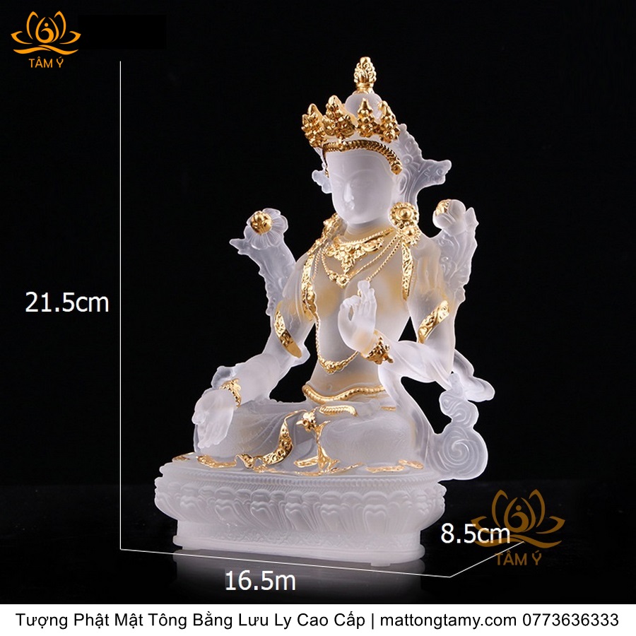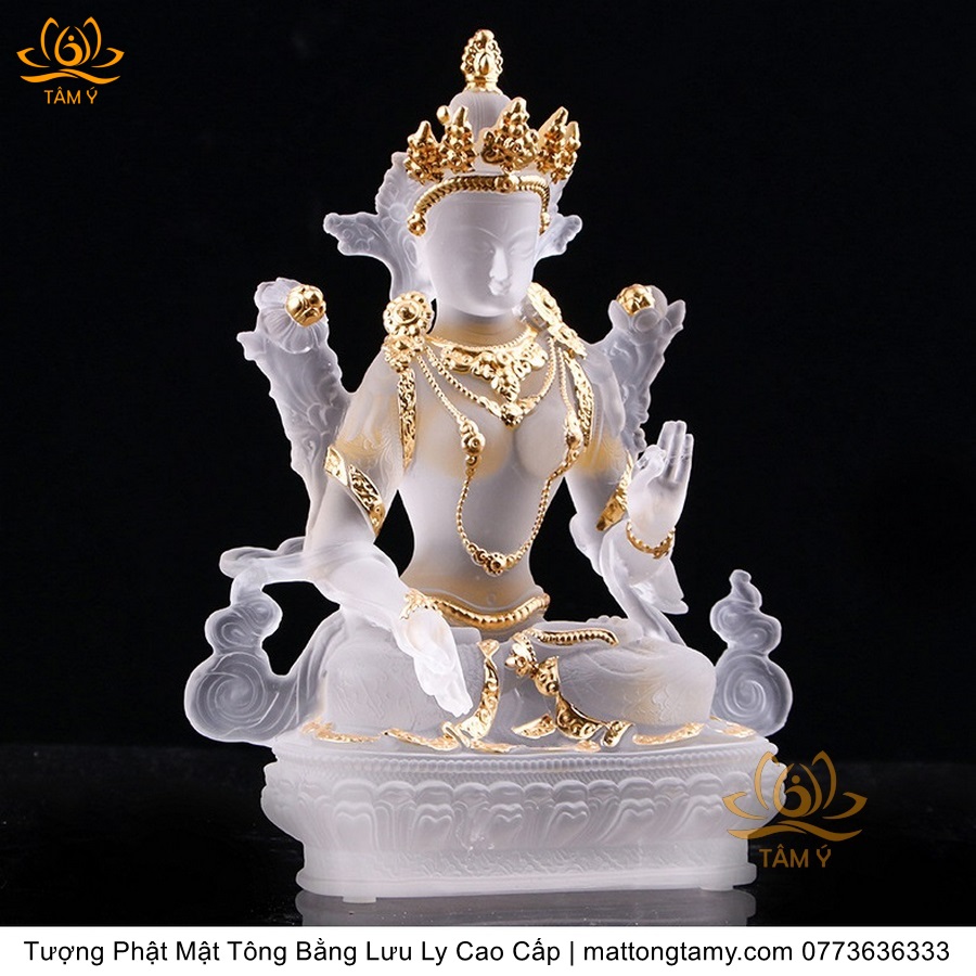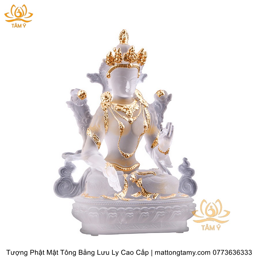 |Cao 21.5cm| Tượng Phật Tara Trắng Bằng Lưu Ly Cao Cấp, Thiết Kế Sang Trọng TP165