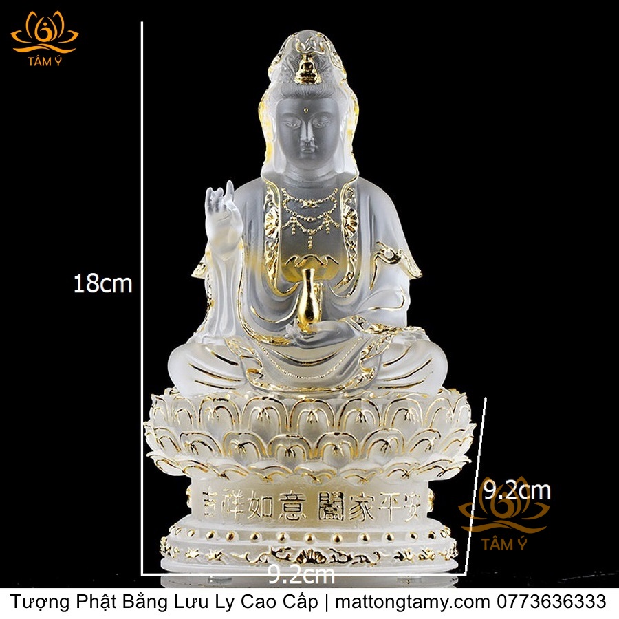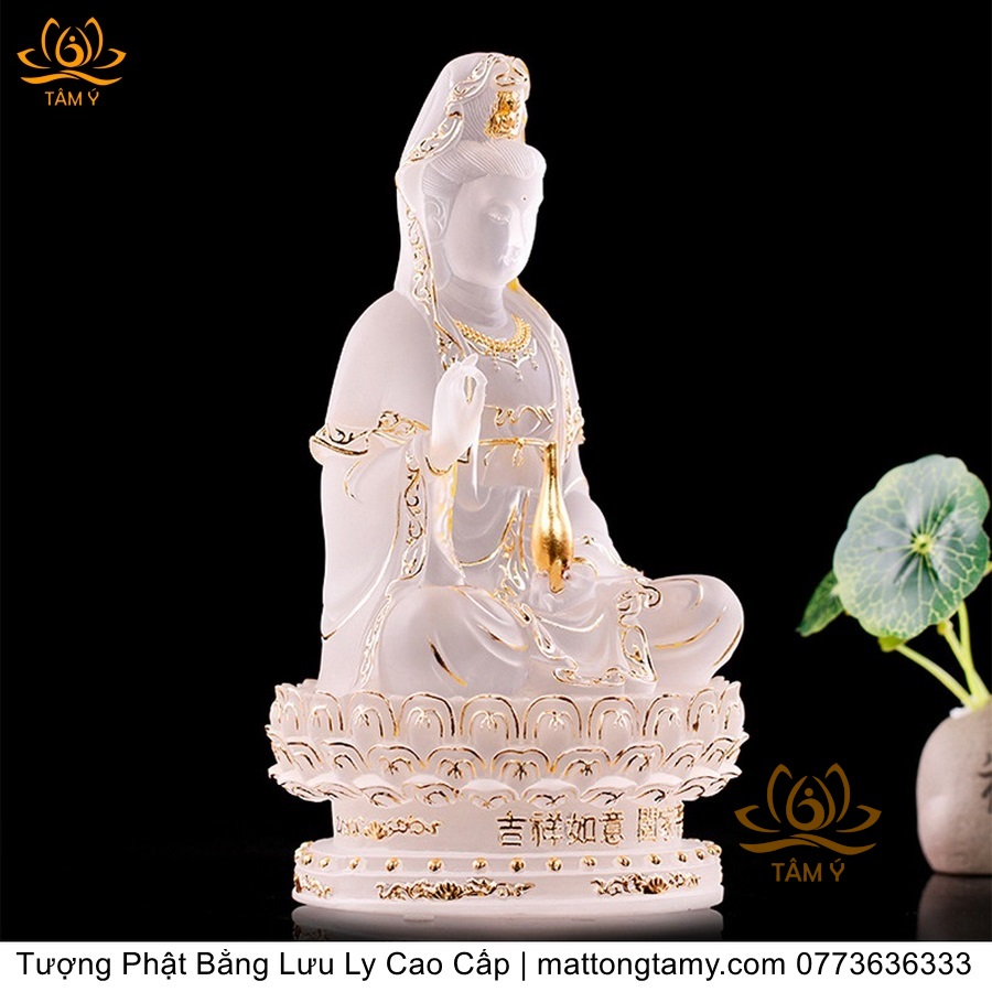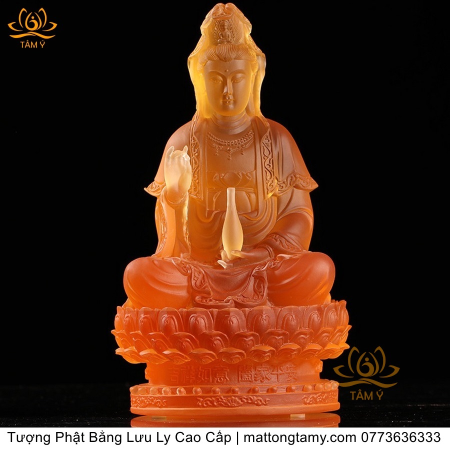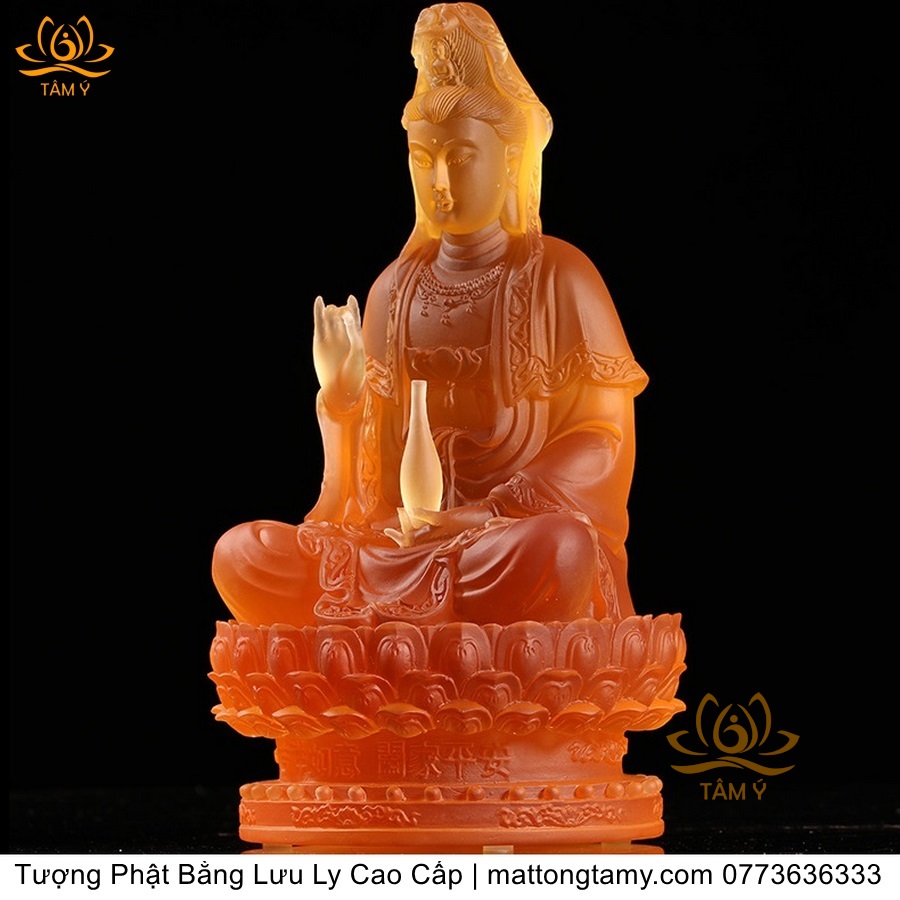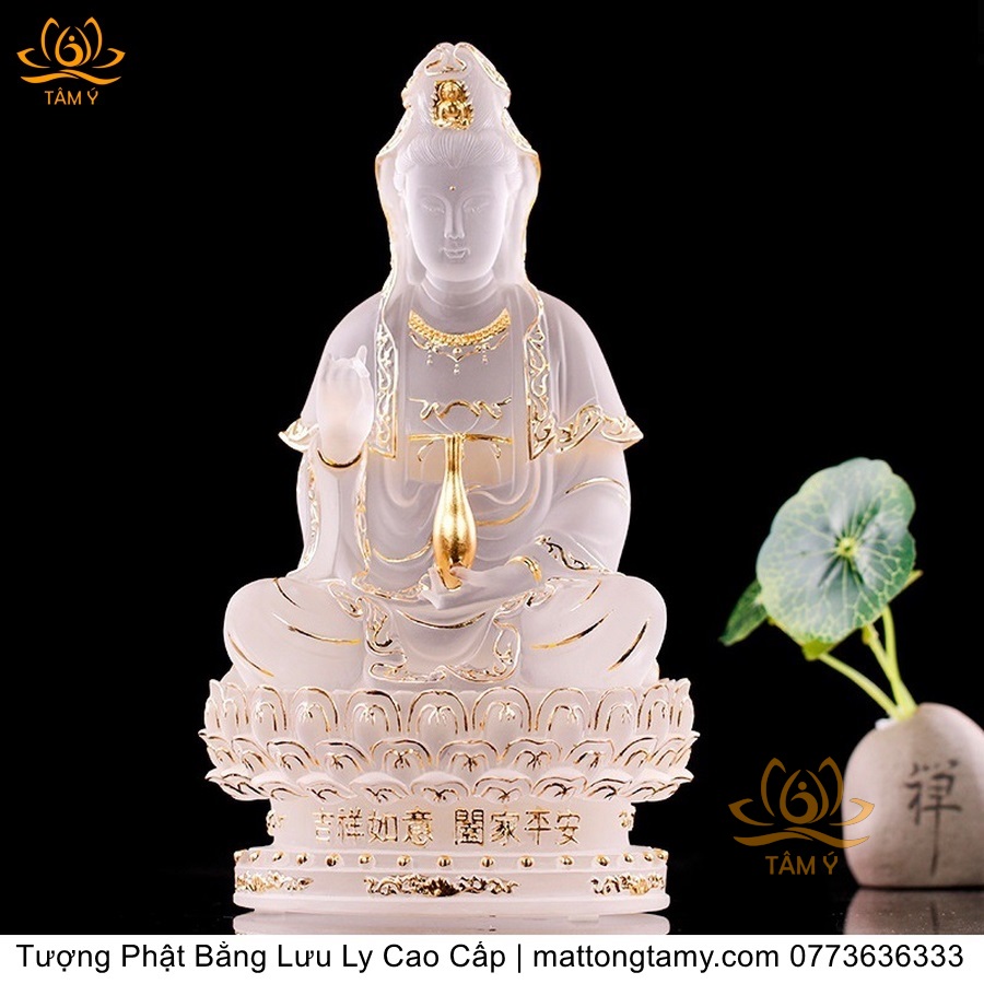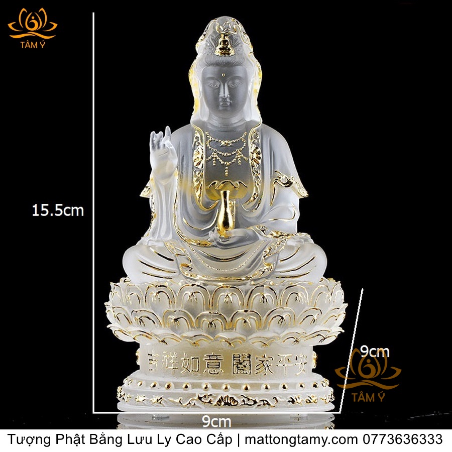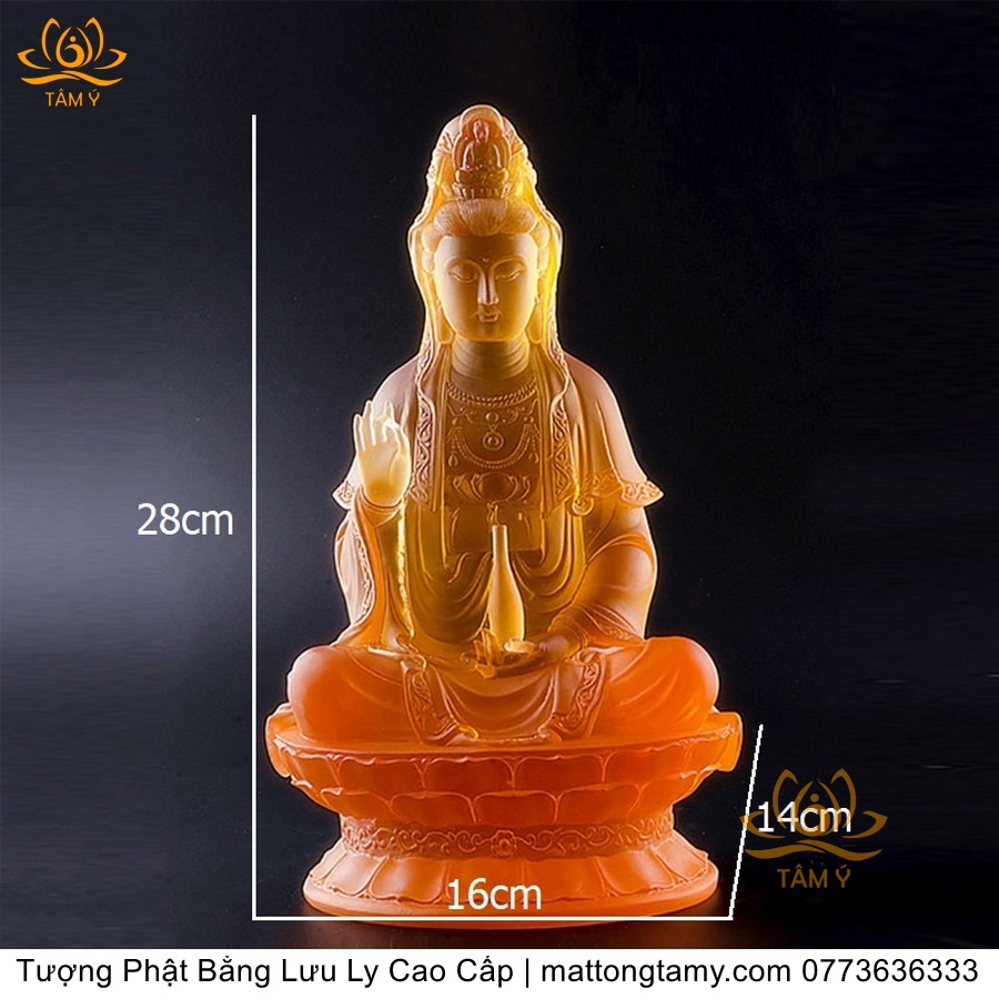 |Cao 21cm| Tượng Phật Quan Âm Bồ Tát (Dáng Ngự Lãm) Bằng Lưu Ly Cao Cấp Màu Vàng Thiết Kế Sang Trọng TP198