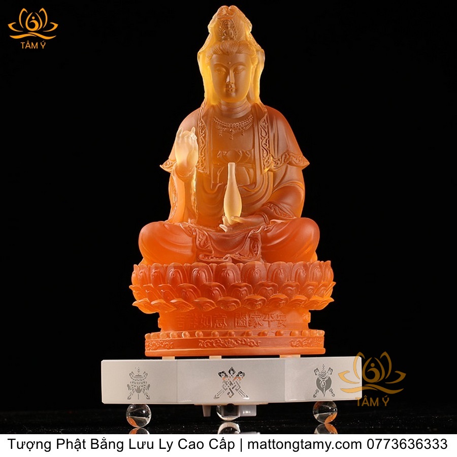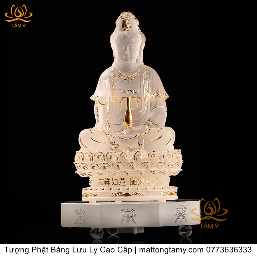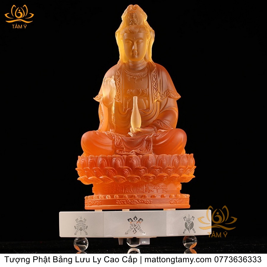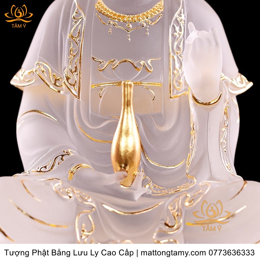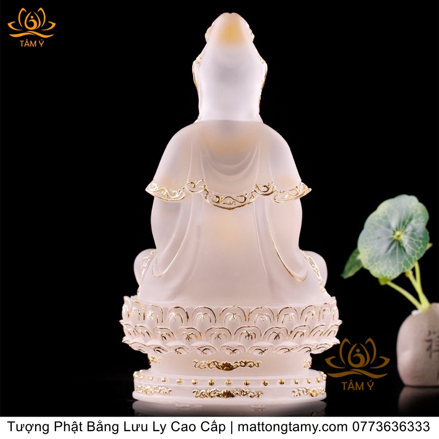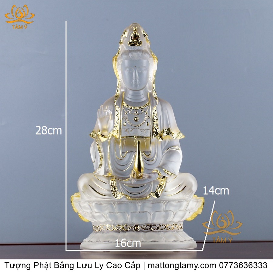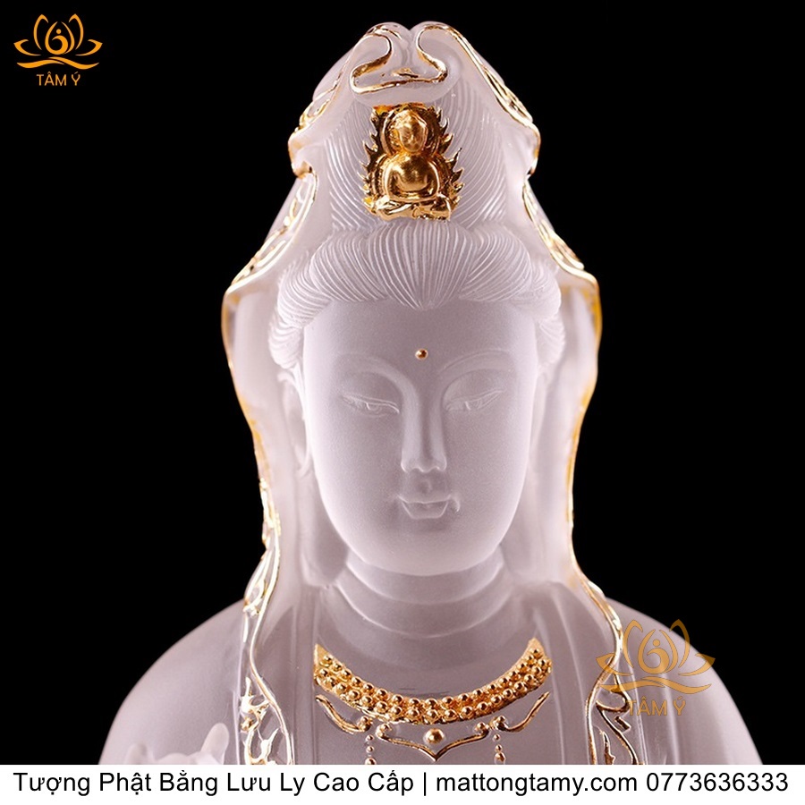 |Cao 21cm| Tượng Phật Quan Âm Bồ Tát (Dáng Ngự Lãm) Bằng Lưu Ly Cao Cấp Màu Vàng Thiết Kế Sang Trọng TP198