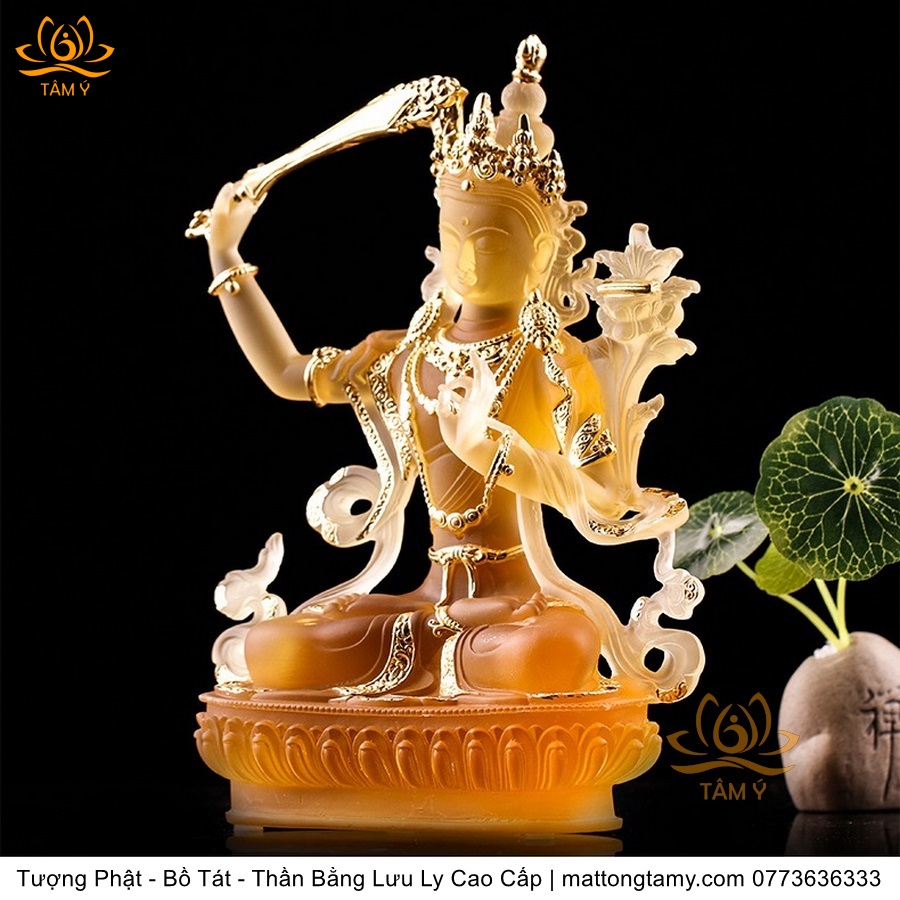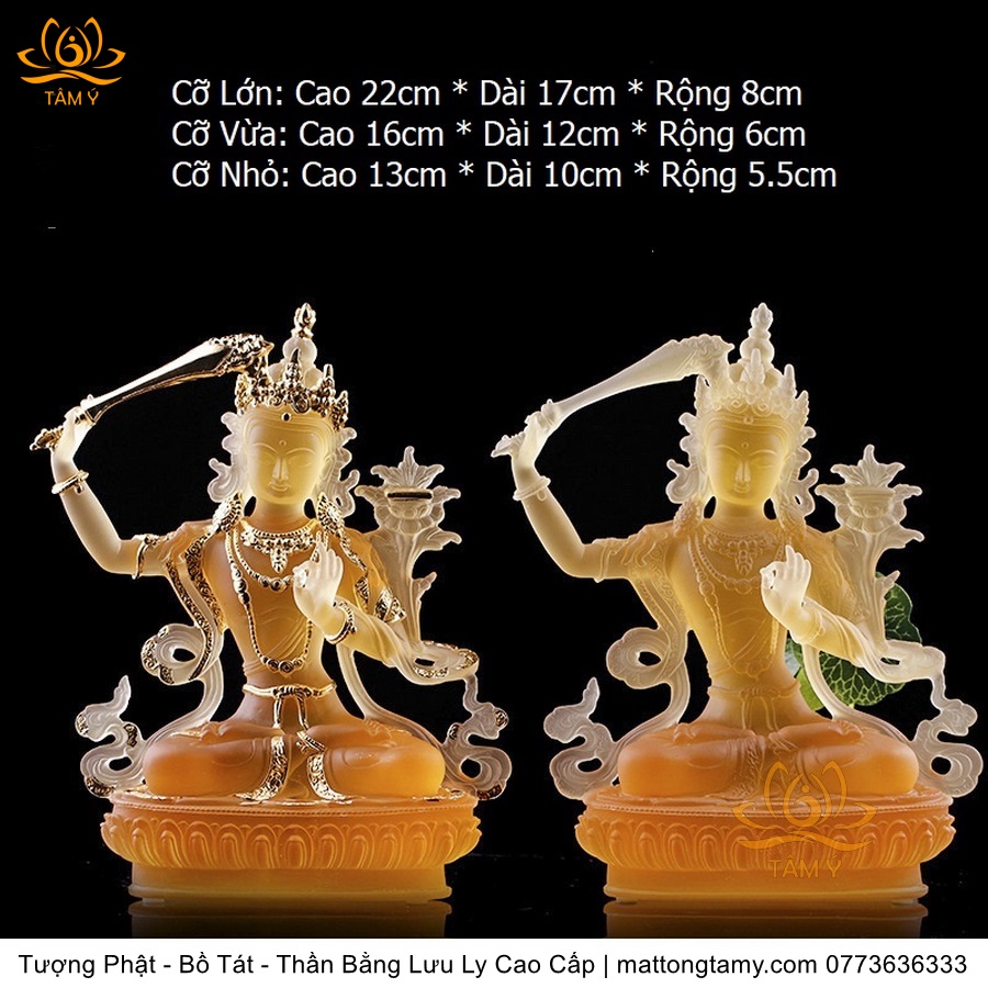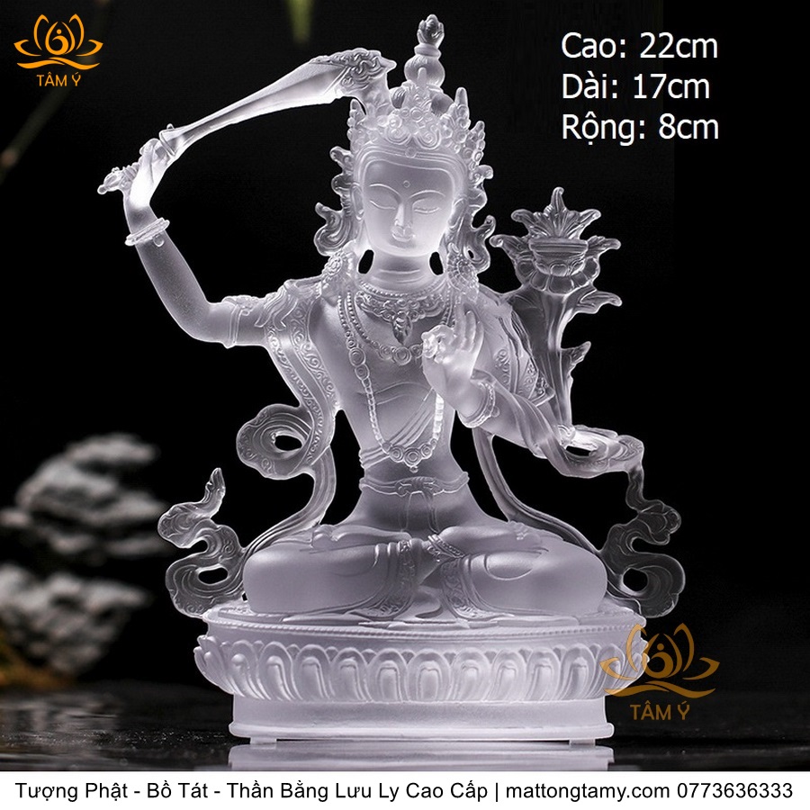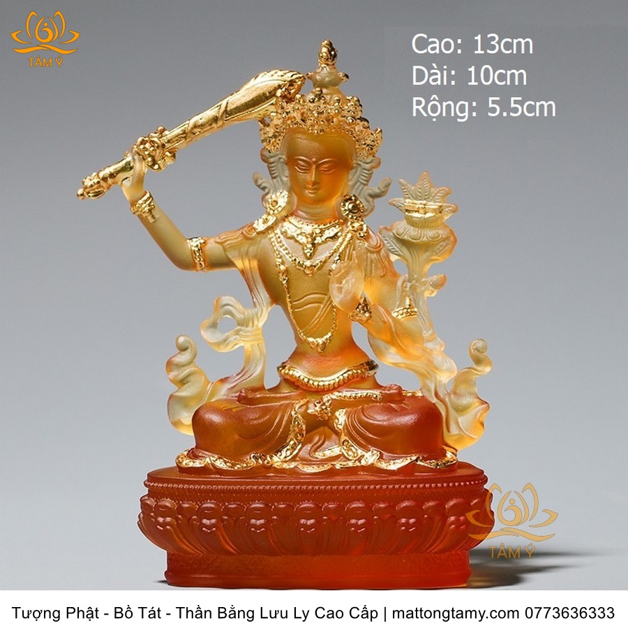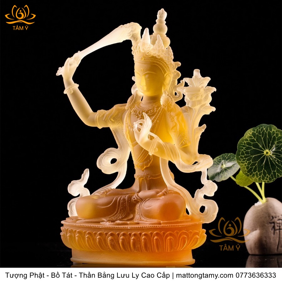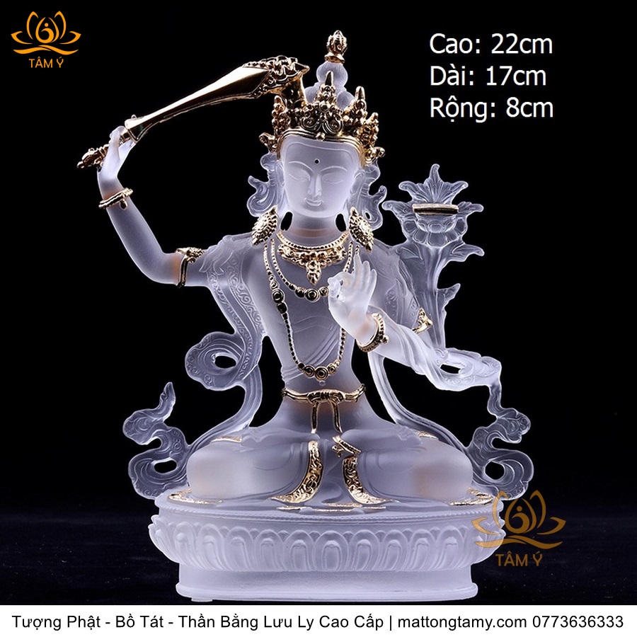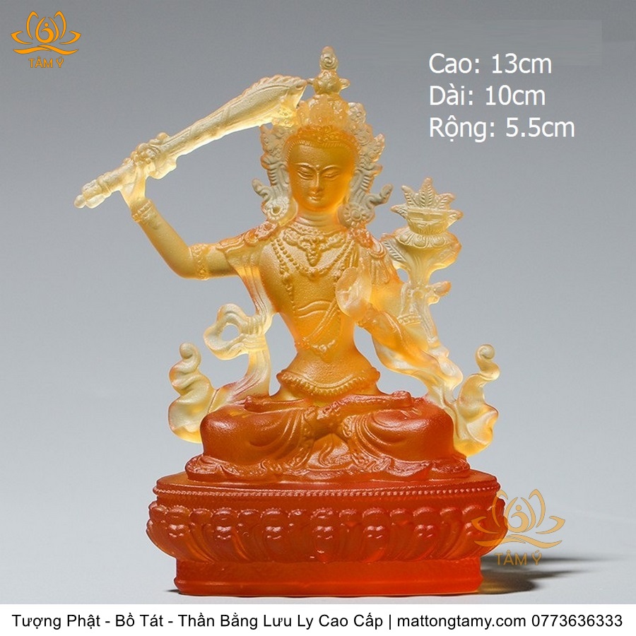 |Cao 22cm| Tượng Phật Văn Thù Bồ Tát Bằng Lưu Ly Cao Cấp, Thiết Kế Sang Trọng TP240