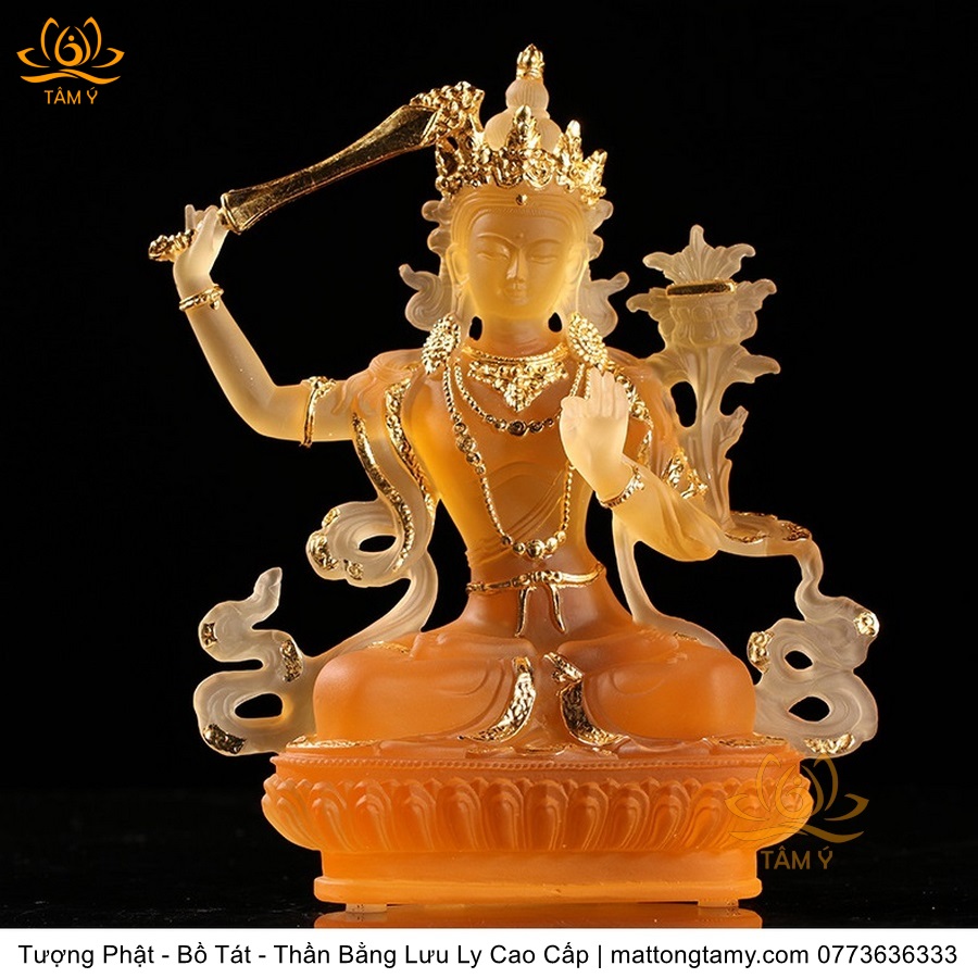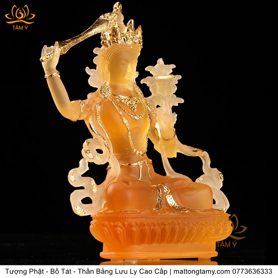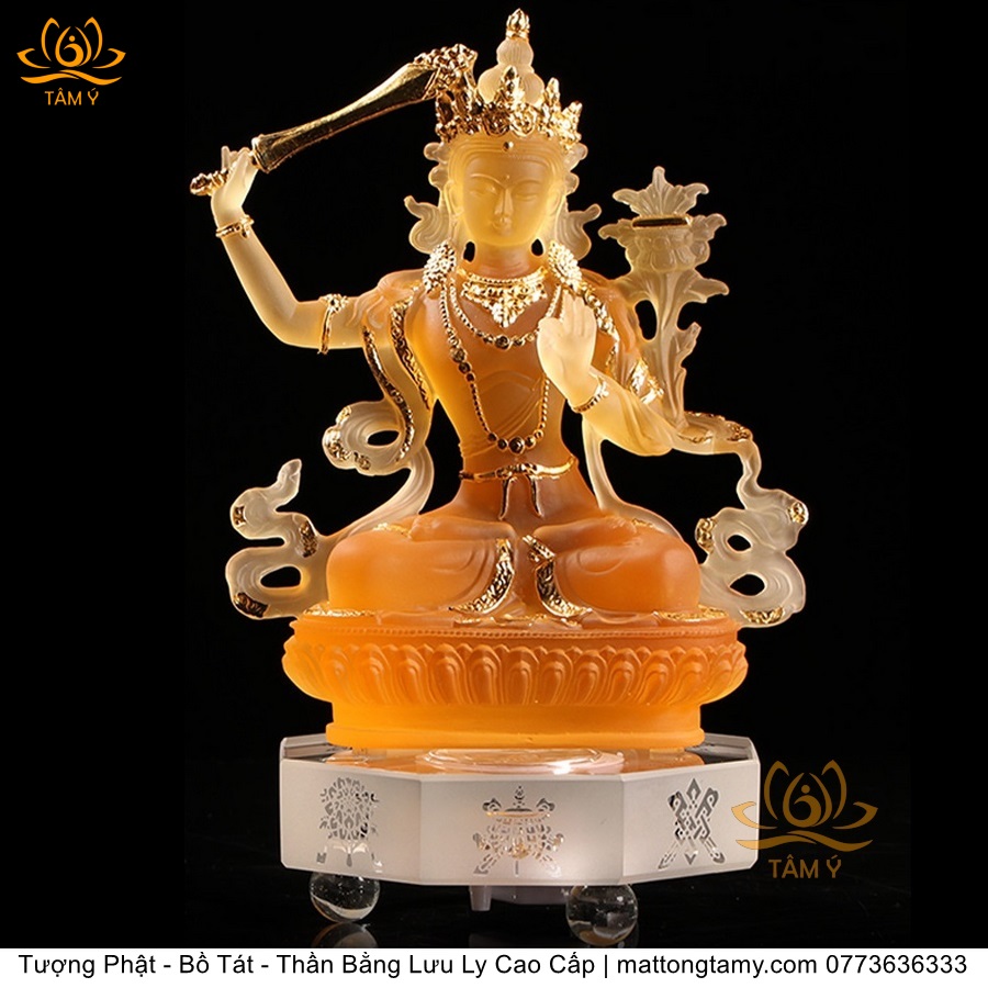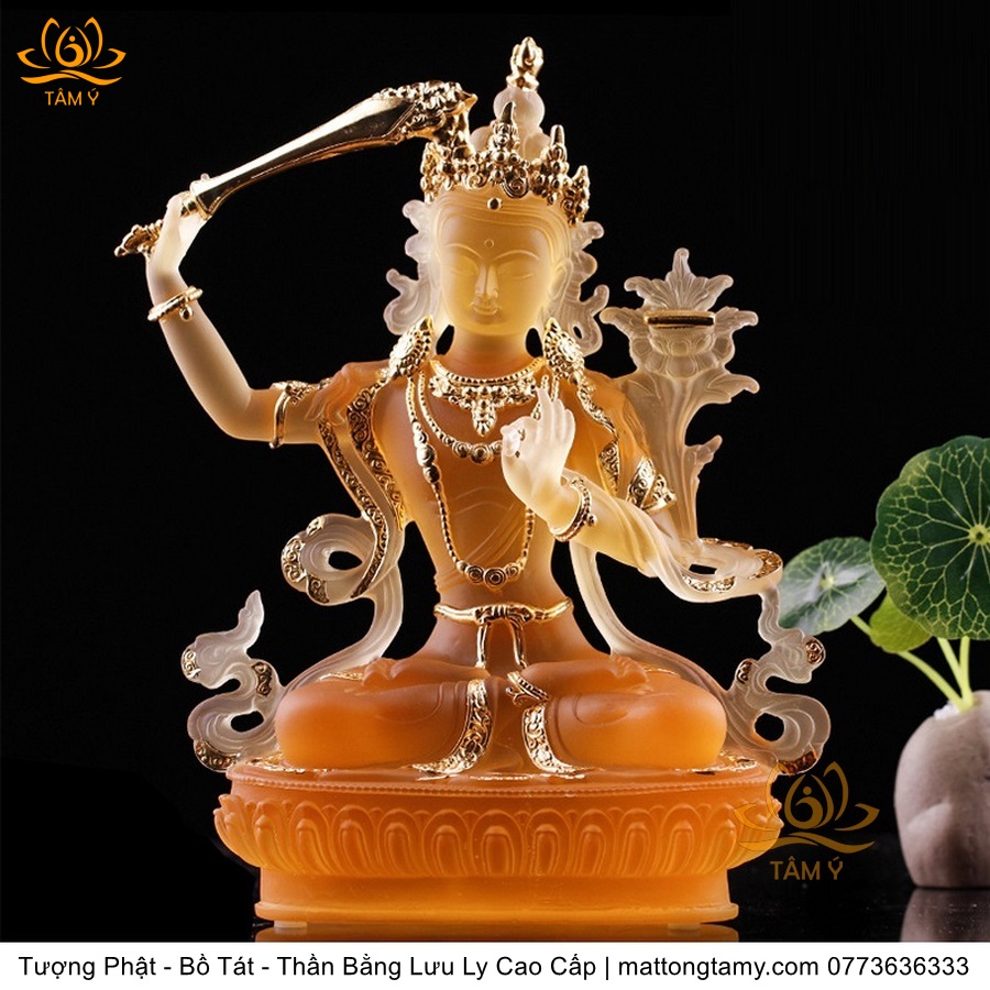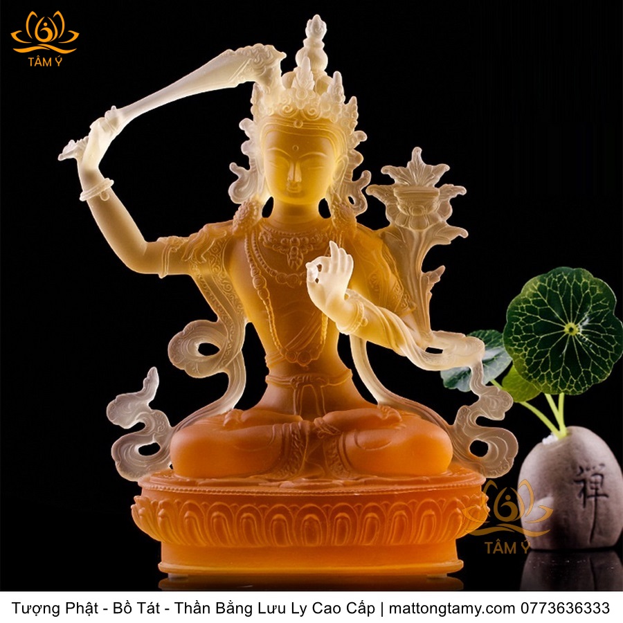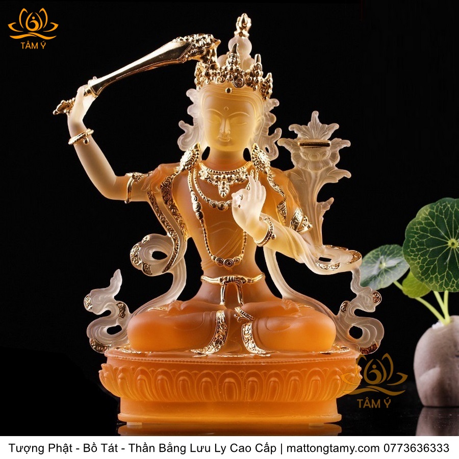 |Cao 22cm| Tượng Phật Văn Thù Bồ Tát Bằng Lưu Ly Cao Cấp, Thiết Kế Sang Trọng TP240