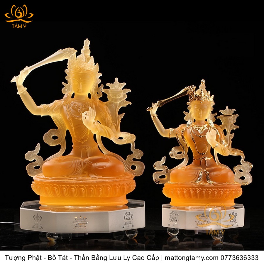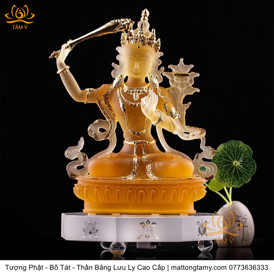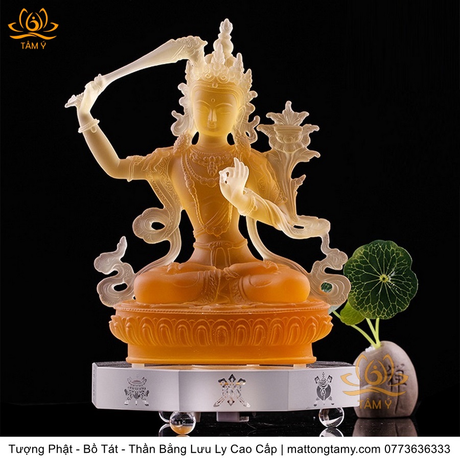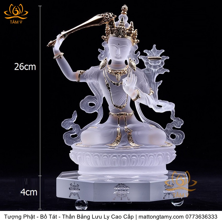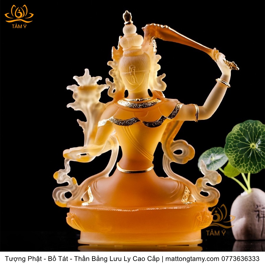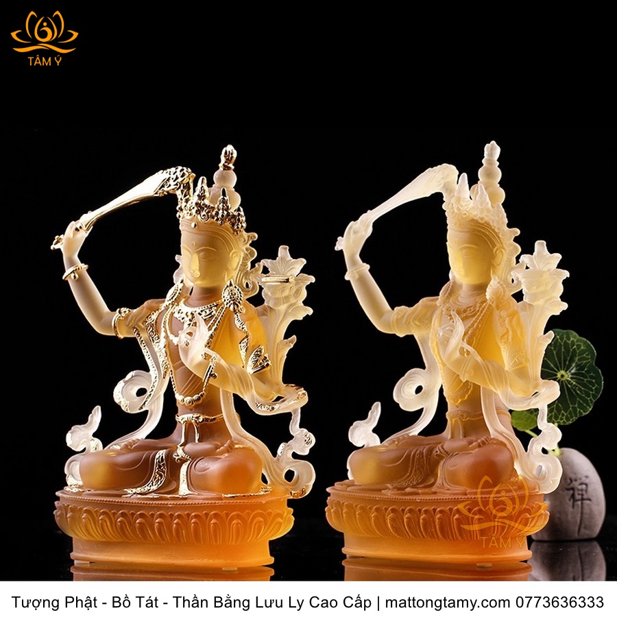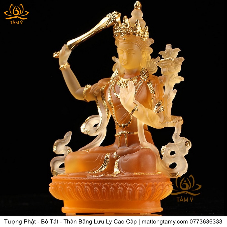 |Cao 22cm| Tượng Phật Văn Thù Bồ Tát Bằng Lưu Ly Cao Cấp, Thiết Kế Sang Trọng TP240