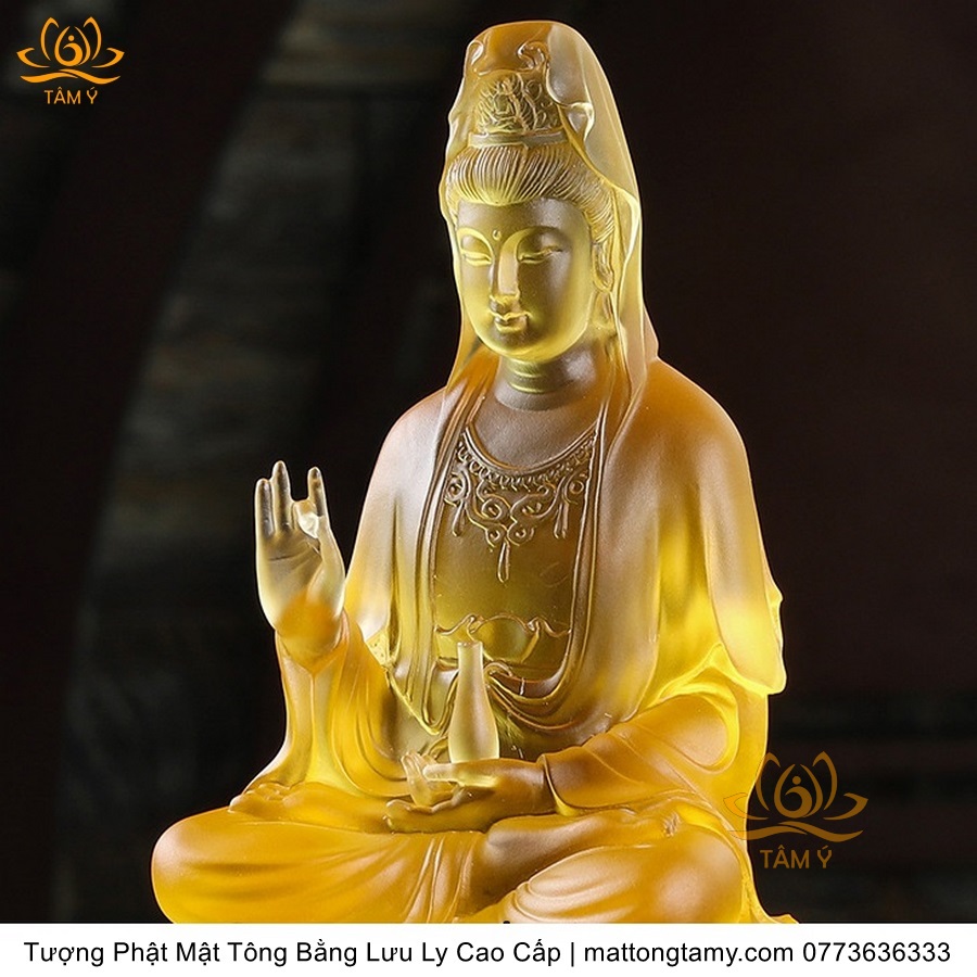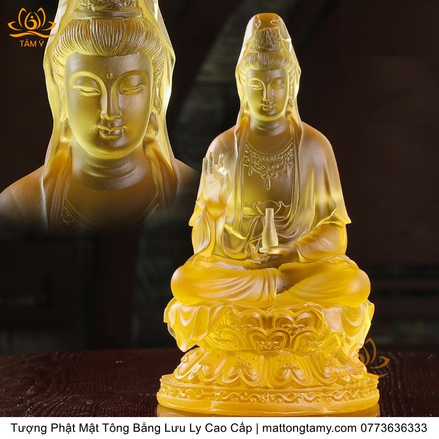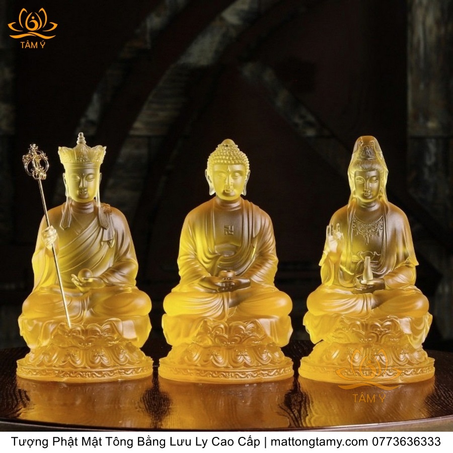 |Cao 23cm| Bộ Tượng 3 Quan Âm - Địa Tạng Vương Bồ Tát và A Di Đà Phật Bằng Lưu Ly Cao Cấp Thiết Kế Sang Trọng TP160