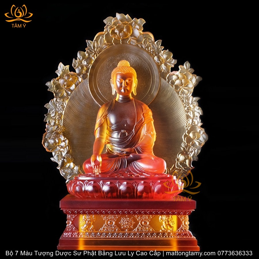 |Cao 23cm - Nhiều Màu| Tượng Dược Sư Phật Bằng Lưu Ly Cao Cấp Thiết Kế Sang Trọng TP124