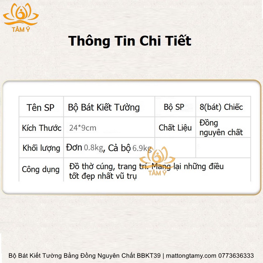 |Cao 24cm| Bộ Bát Kiết Tường Bằng Đồng Nguyên Chất, Thiết Kế Cực Sang Trọng BBKT39