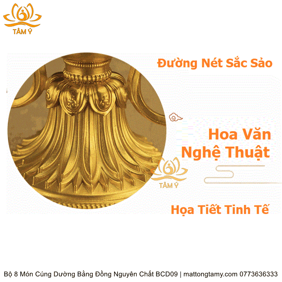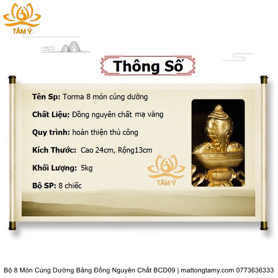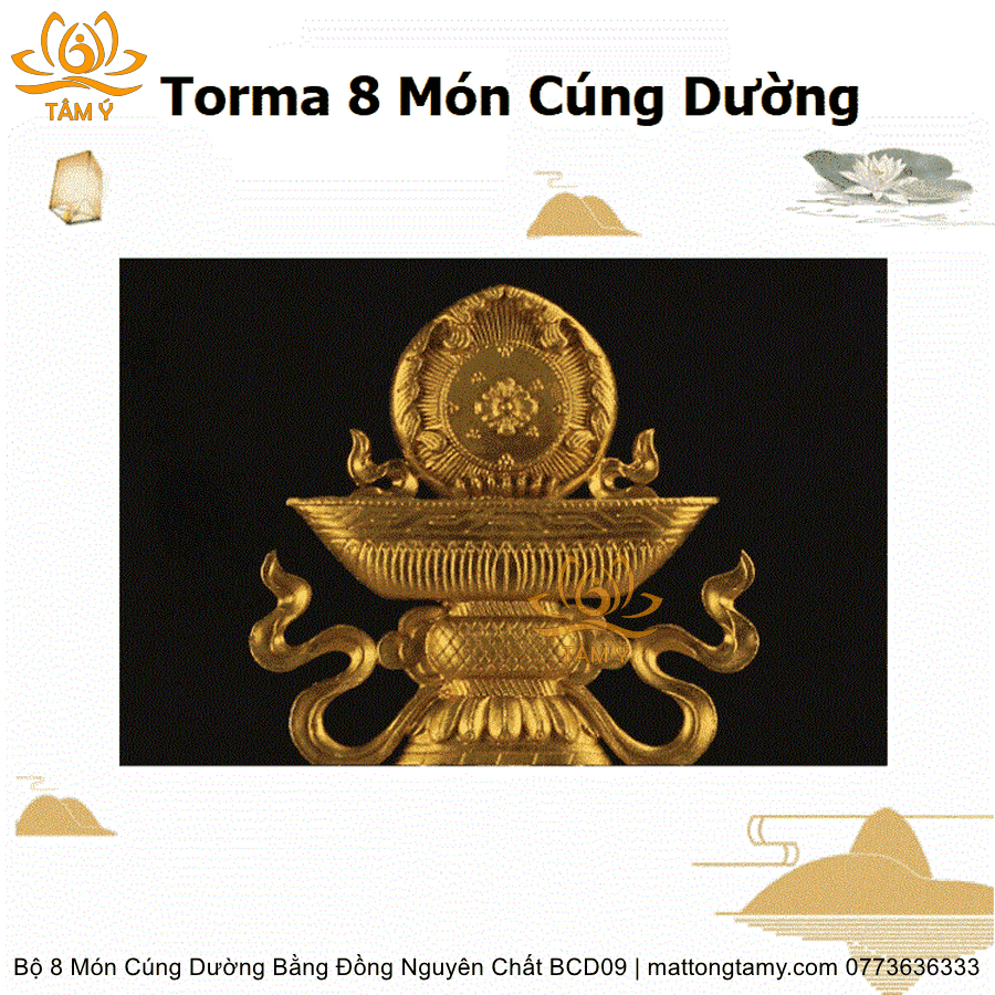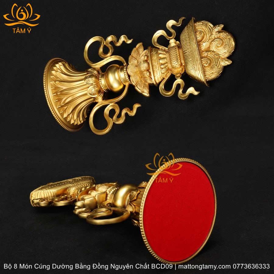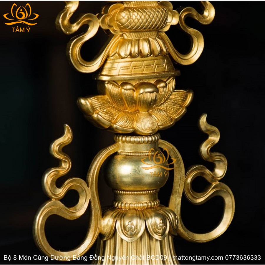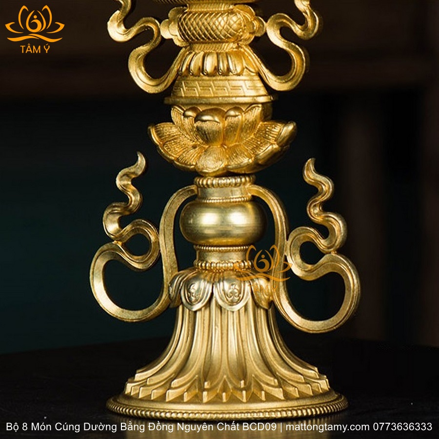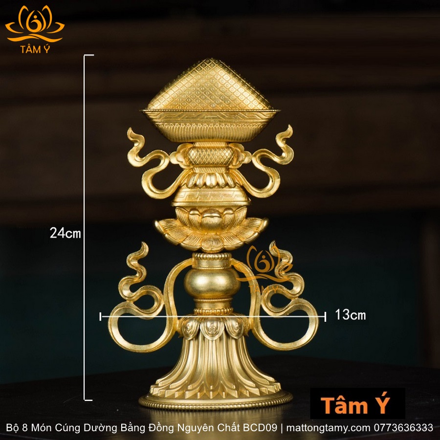 |Cao 24cm| Torma Tám Món Cúng Dường Bằng Đồng Nguyên Chất, Bệ Sen, Mạ Vàng BCD09