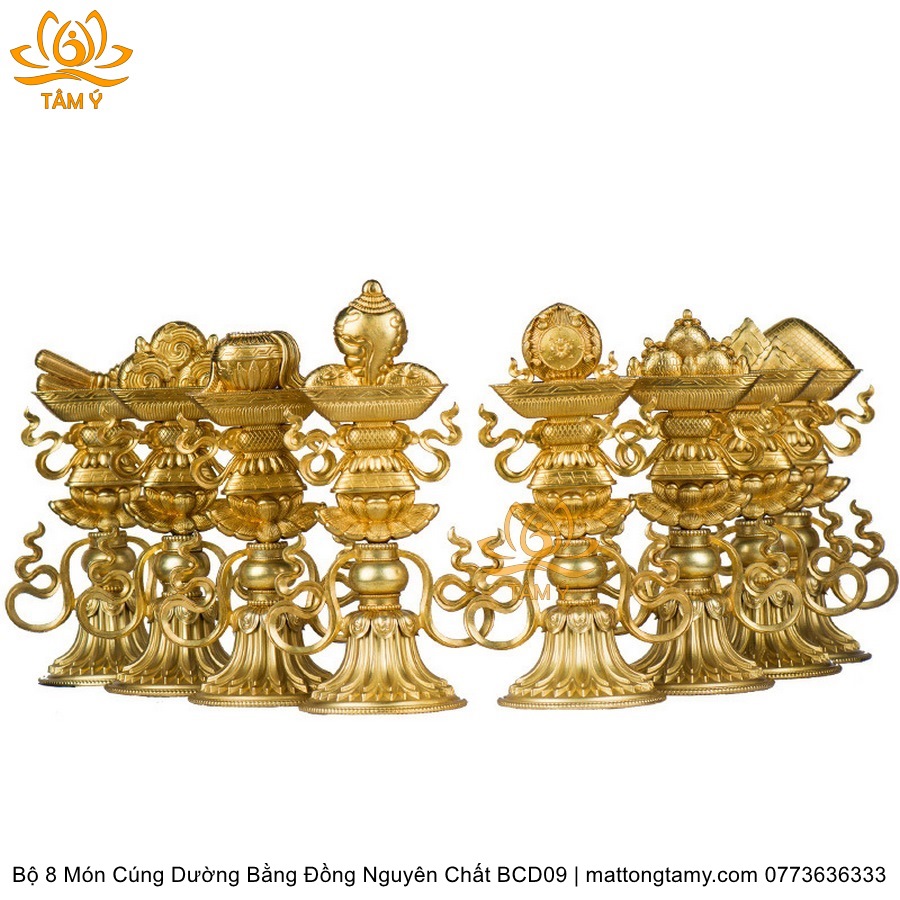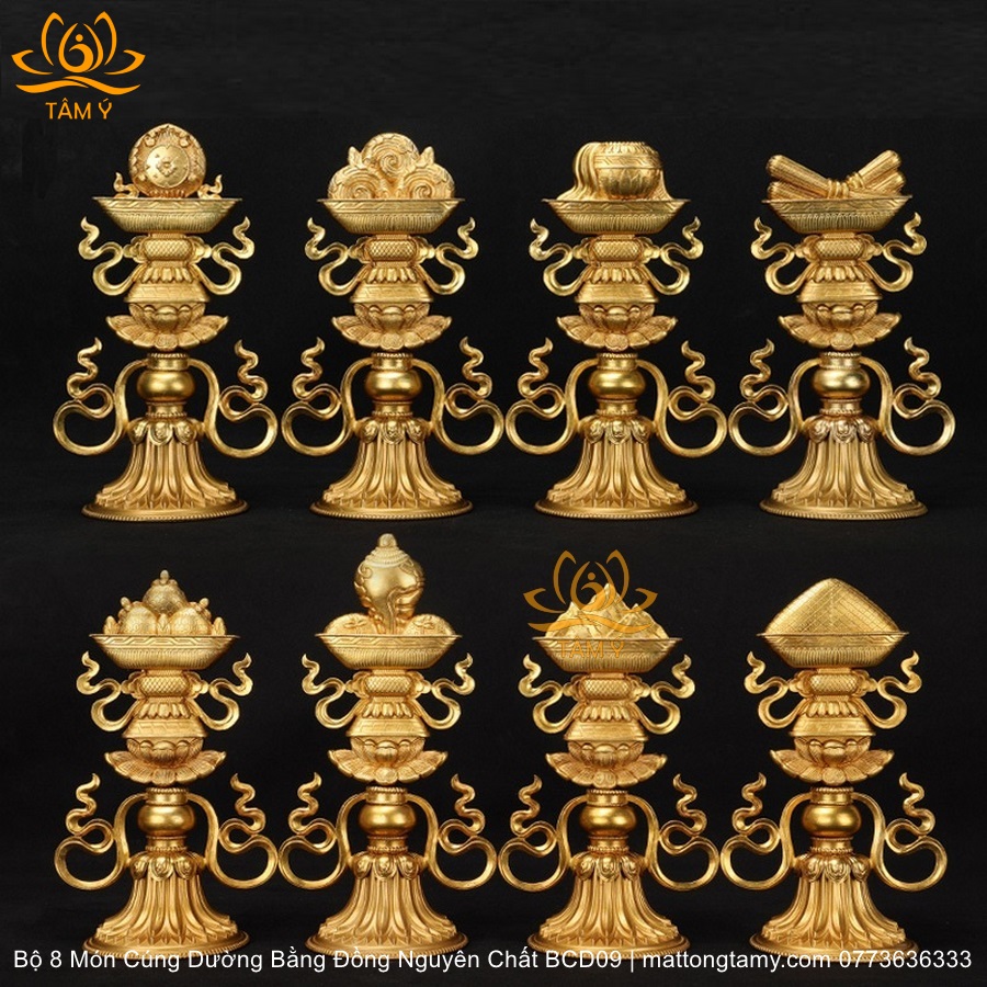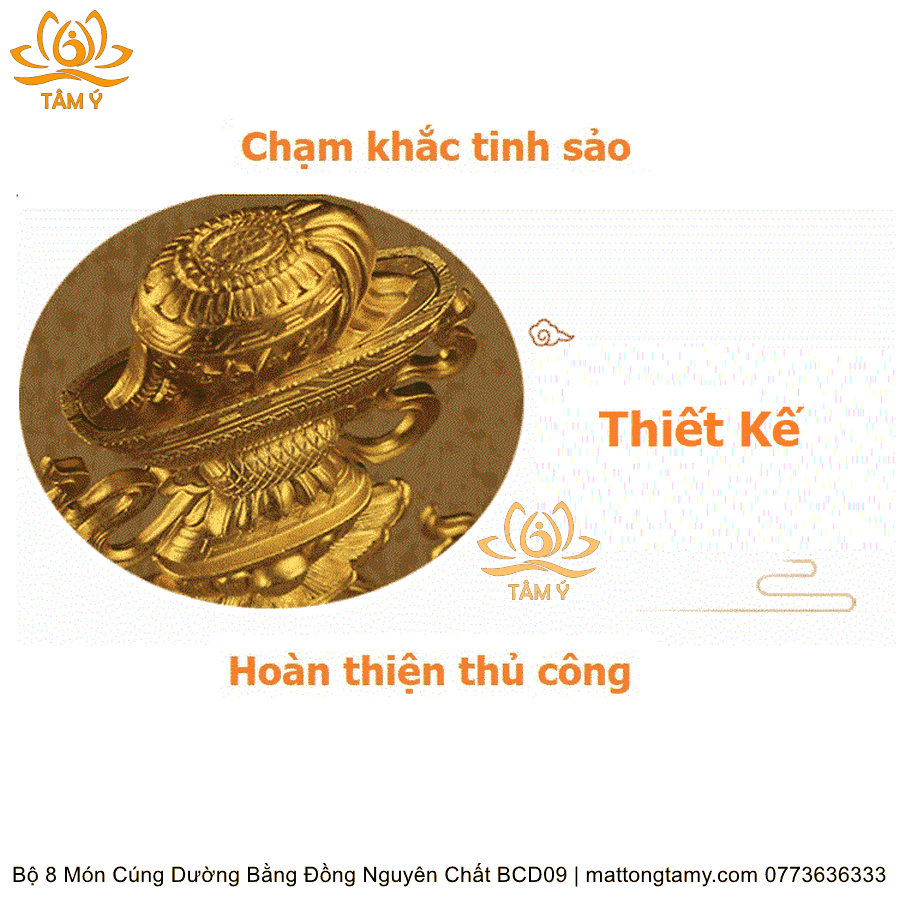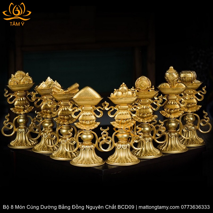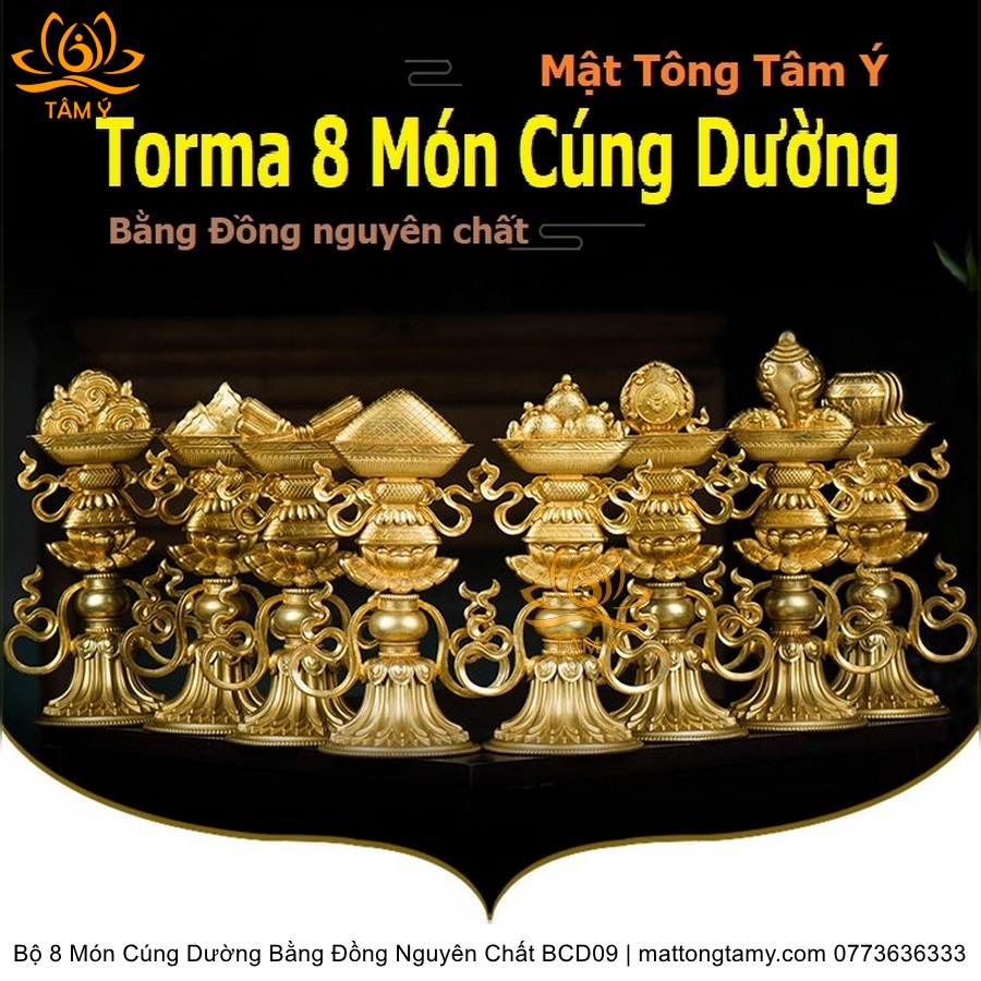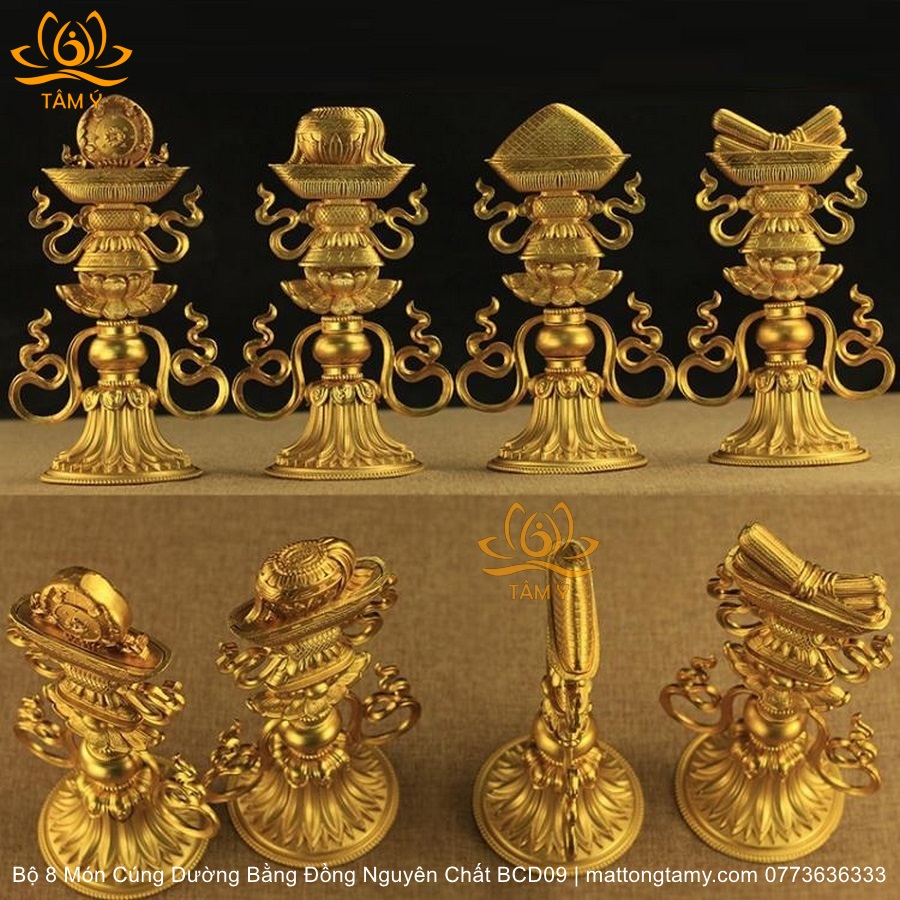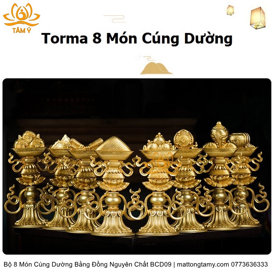 |Cao 24cm| Torma Tám Món Cúng Dường Bằng Đồng Nguyên Chất, Bệ Sen, Mạ Vàng BCD09