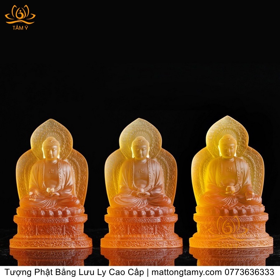 |Cao 26cm| Bộ 3 Tượng Các Vị Phật Thích Ca, Dược Sư và A Di Đà Phật Bằng Lưu Ly Cao Cấp Thiết Kế Sang Trọng TP202