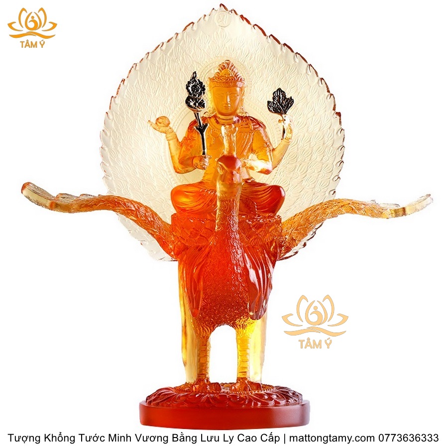|Cao 26cm| Tượng Ngài Khổng Tước Minh Vương Bằng Lưu Ly Cao Cấp, Thiết Kế Sang Trọng TP128