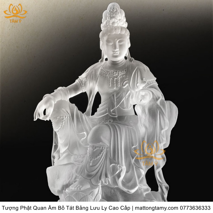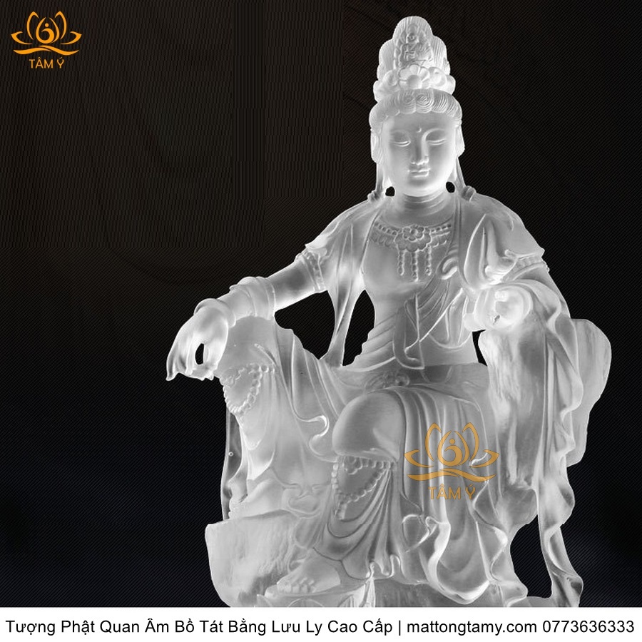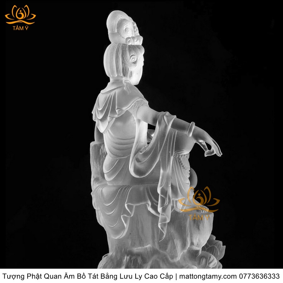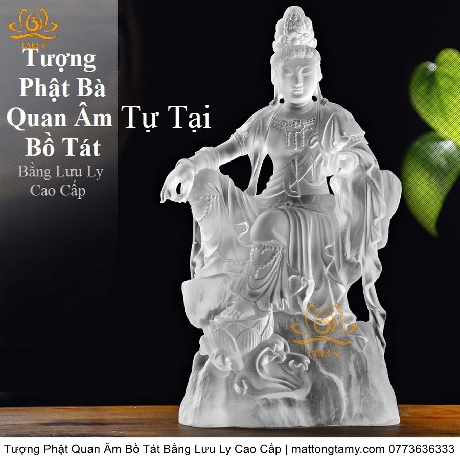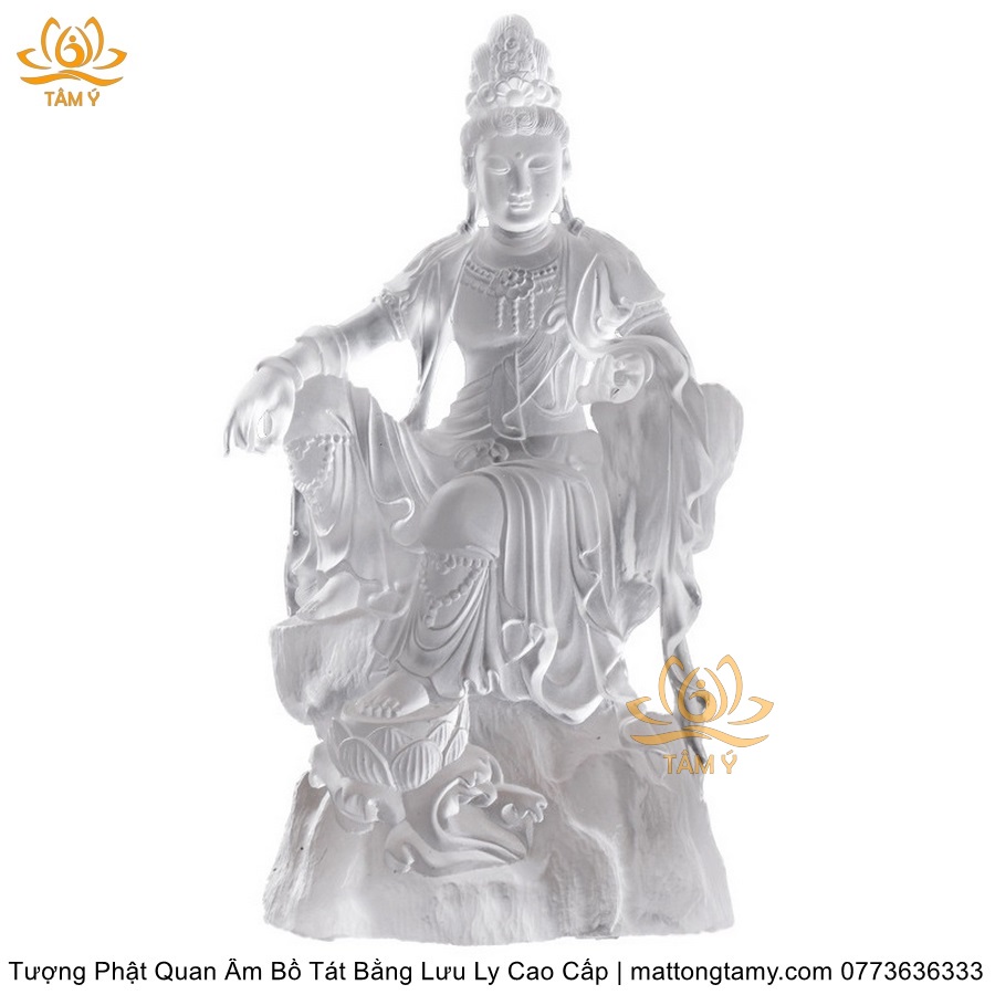 |Cao 26cm| Tượng Phật Quan Âm Tự Tại Bằng Lưu Ly Cao Cấp Mà Trắng Thiết Kế Sang Trọng TP131