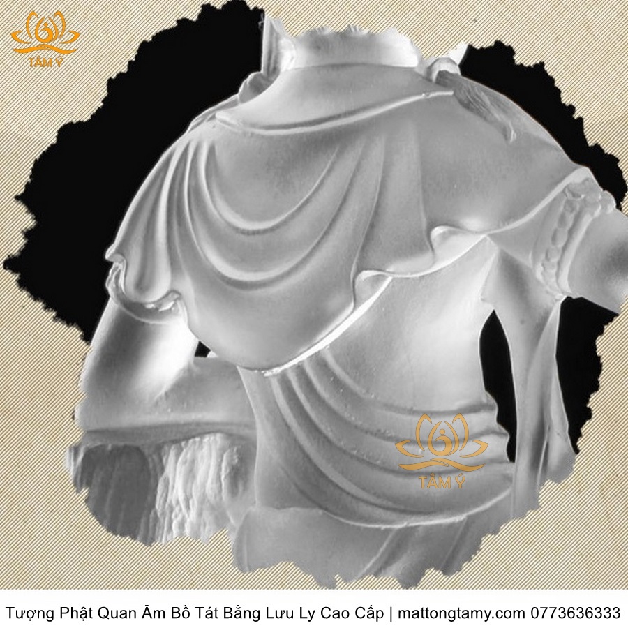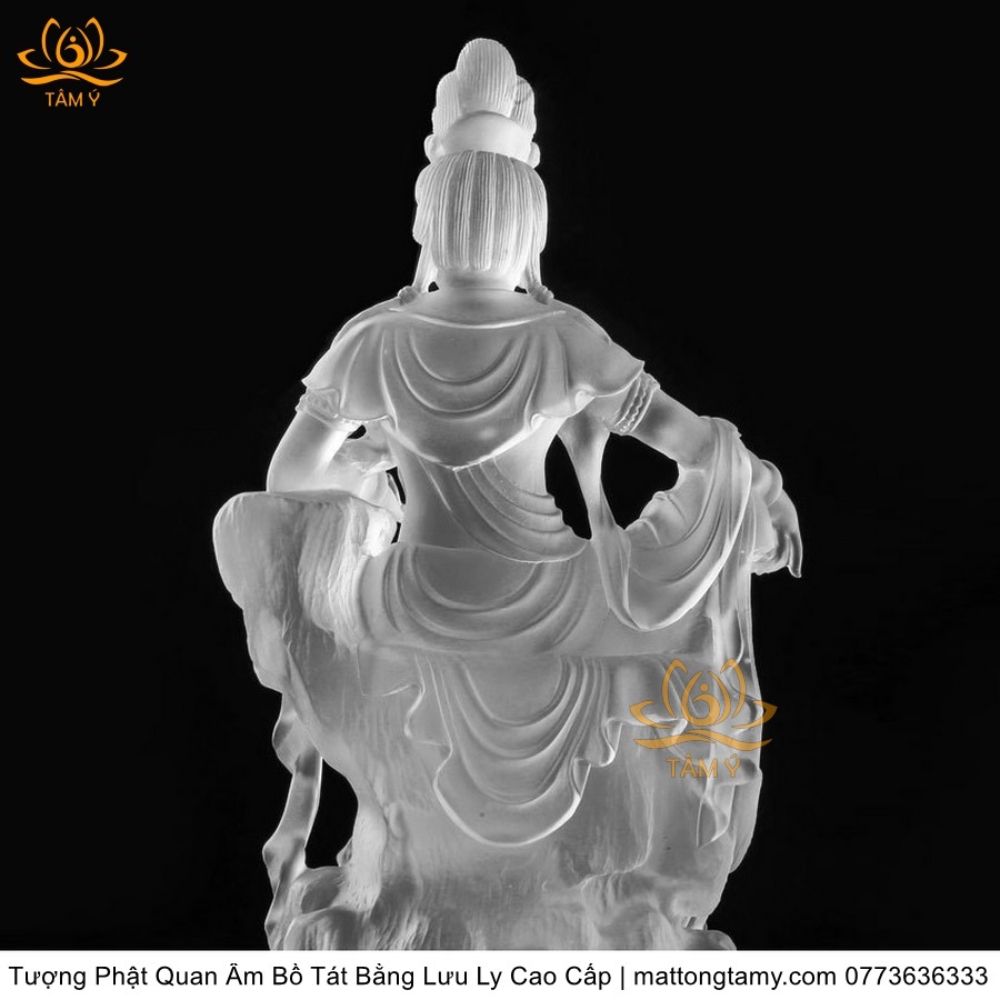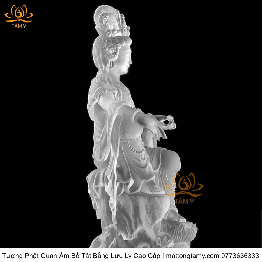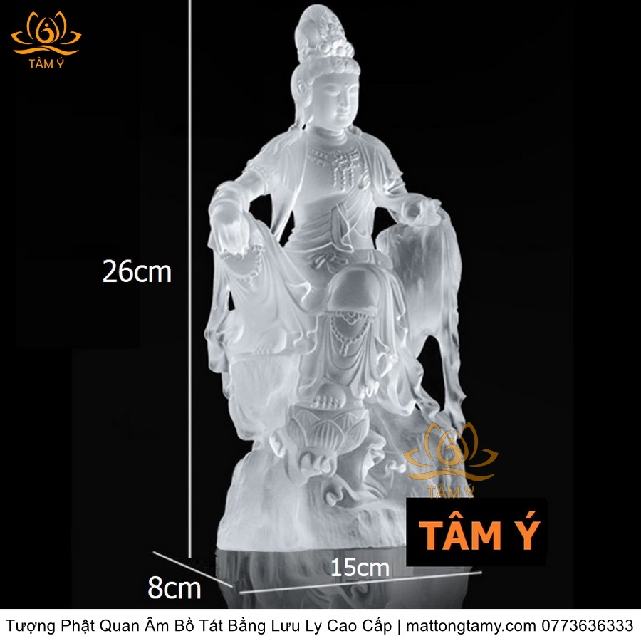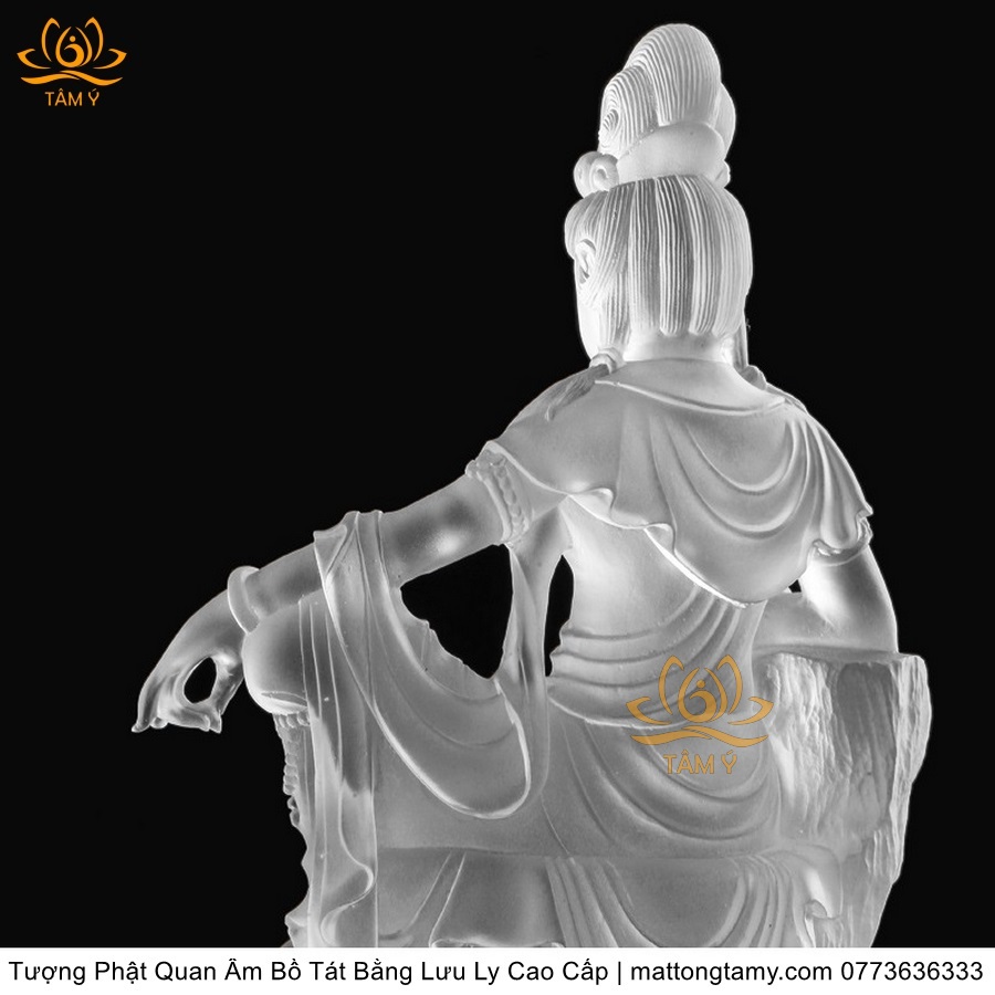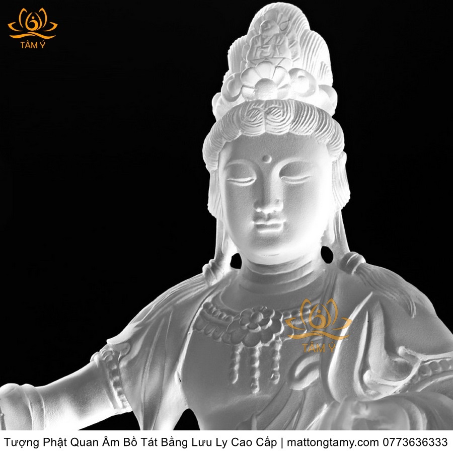 |Cao 26cm| Tượng Phật Quan Âm Tự Tại Bằng Lưu Ly Cao Cấp Mà Trắng Thiết Kế Sang Trọng TP131