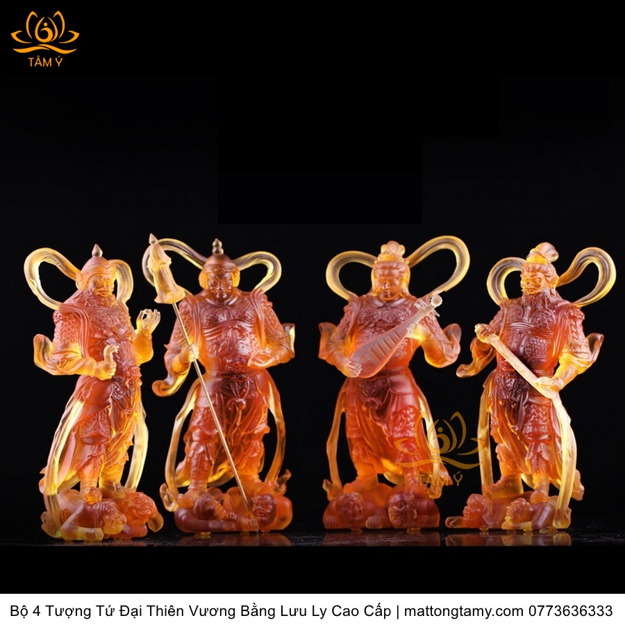 |Cao 28cm| Bộ 4 Tượng Tứ Đại Thiên Vương Bằng Lưu Ly Cao Cấp Thiết Kế Sang Trọng TP129