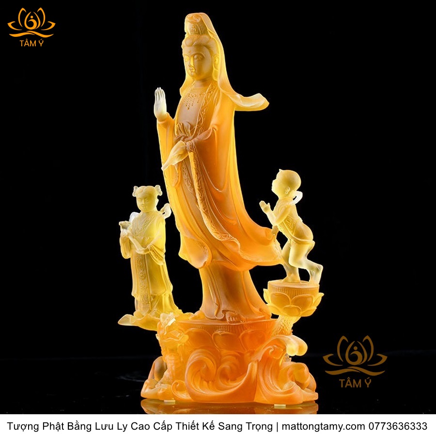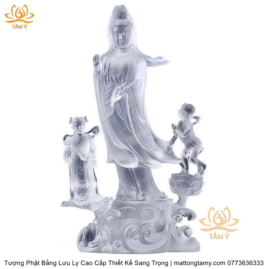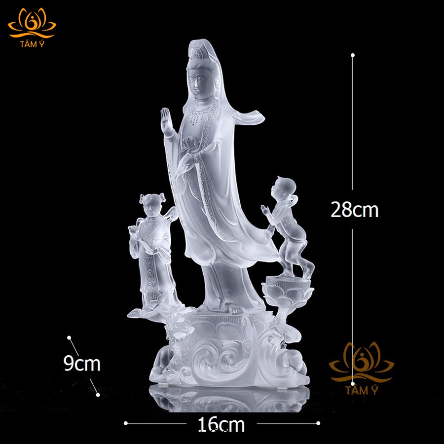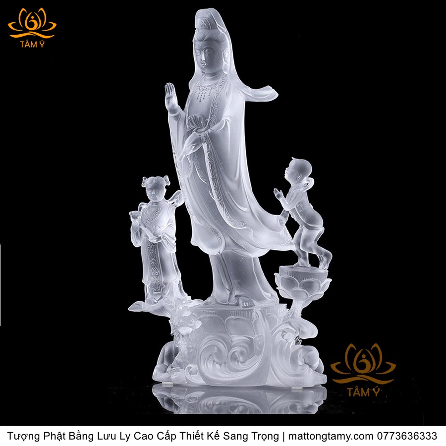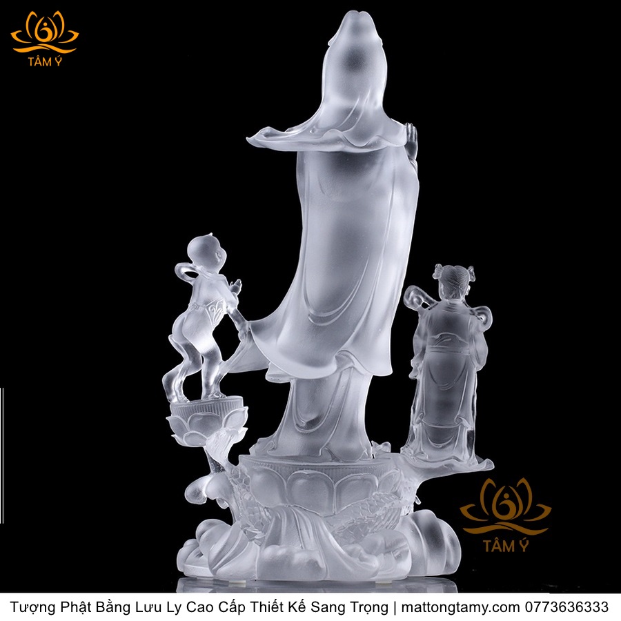|Cao 28cm| Tượng Phật Đồng Tử Bái Quan Âm Bằng Lưu Ly Cao Cấp Thiết Kế Sang Trọng TP144