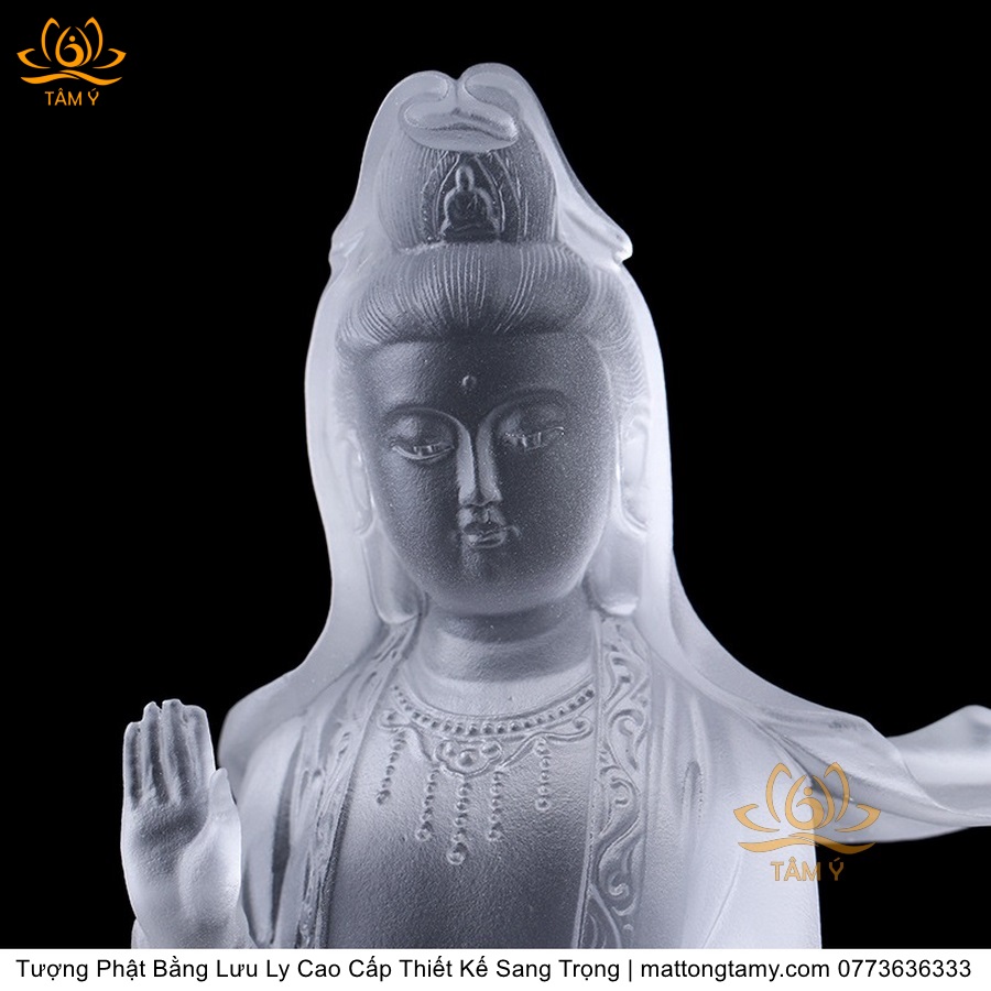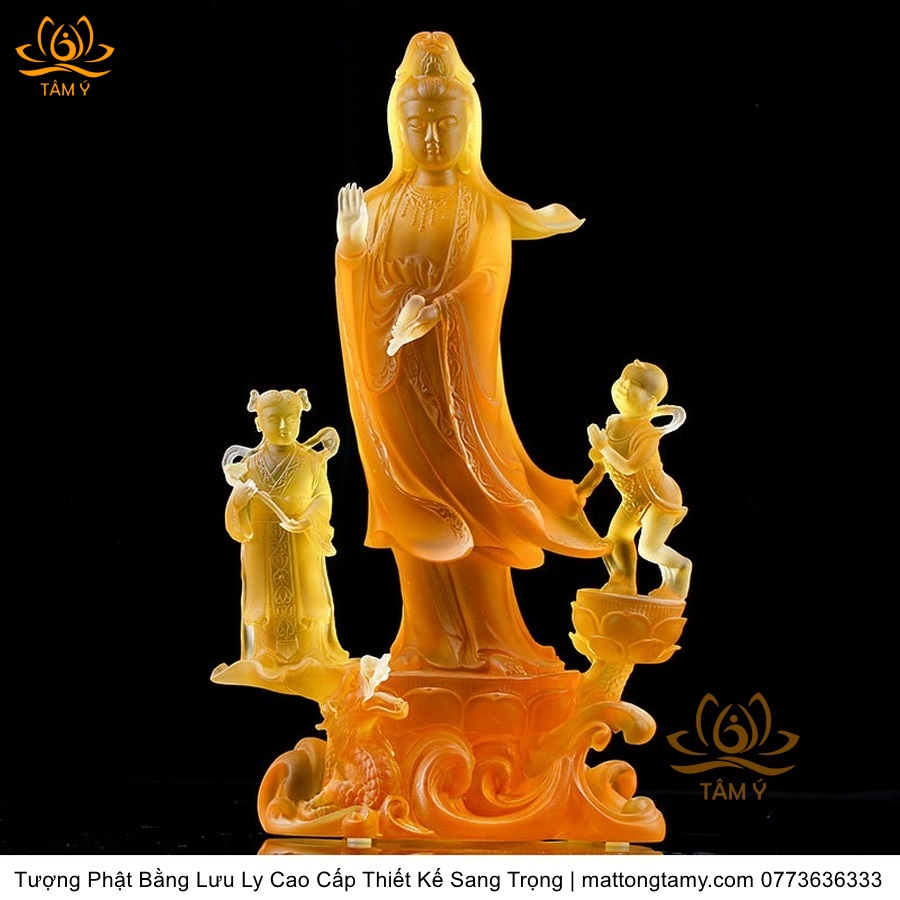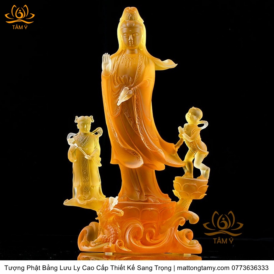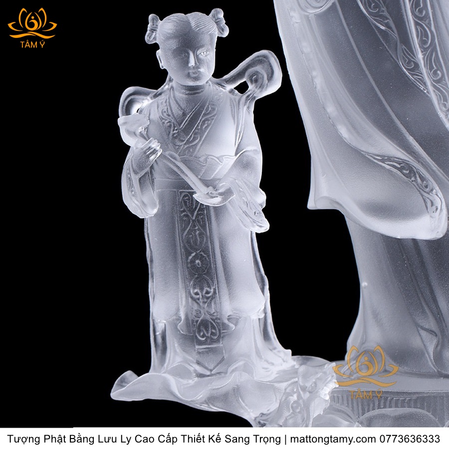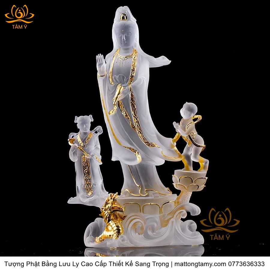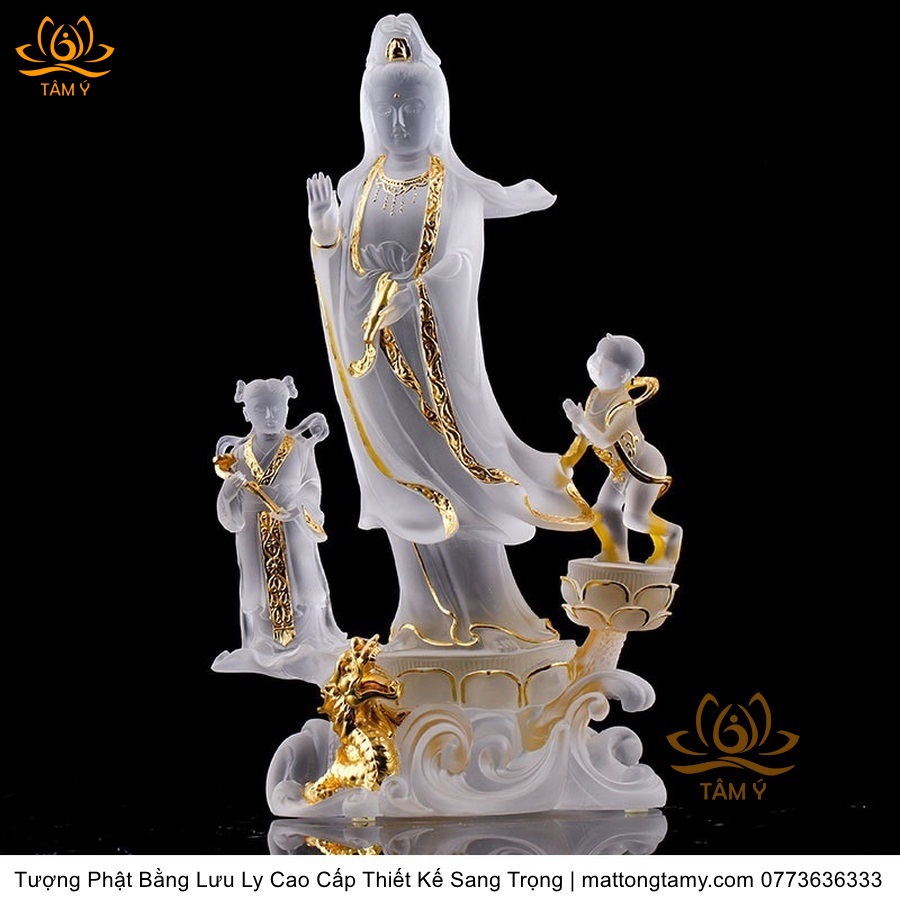 |Cao 28cm| Tượng Phật Đồng Tử Bái Quan Âm Bằng Lưu Ly Cao Cấp Thiết Kế Sang Trọng TP144