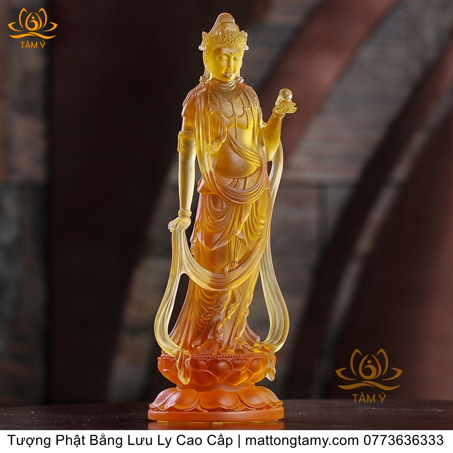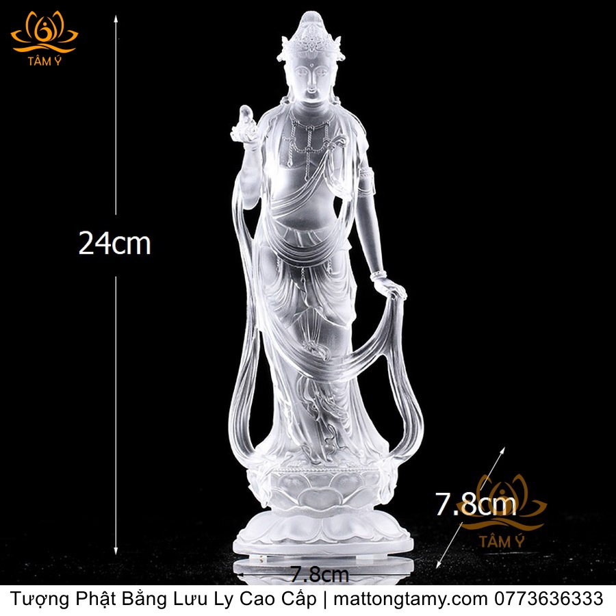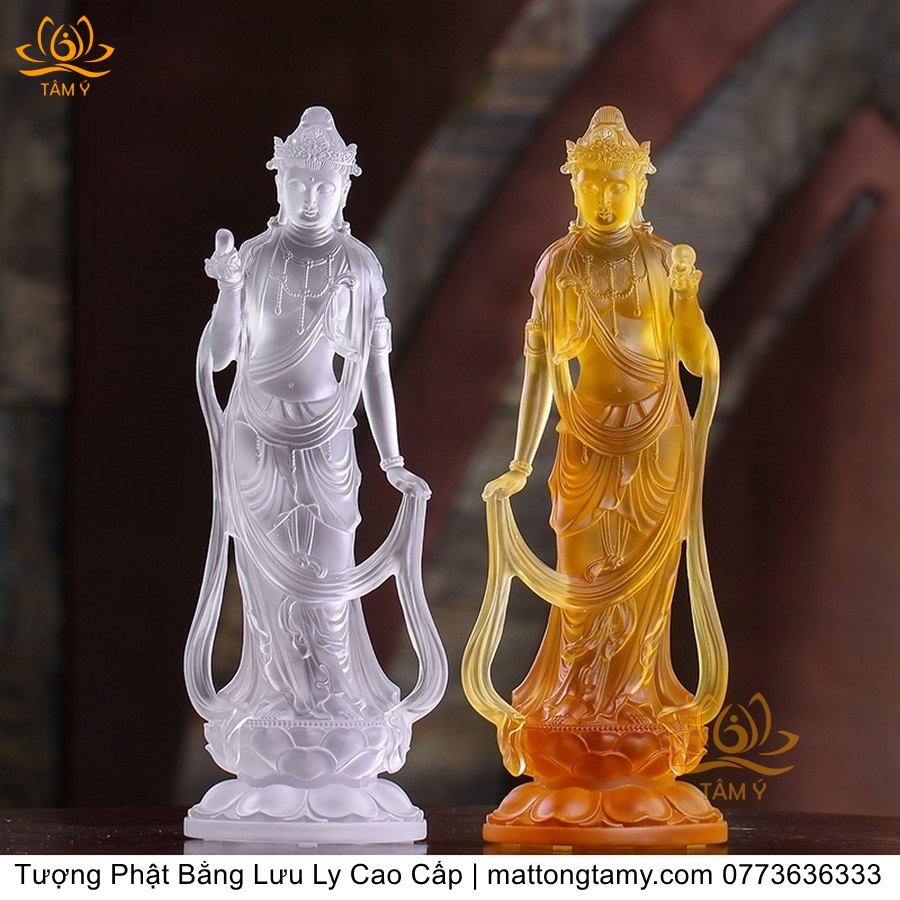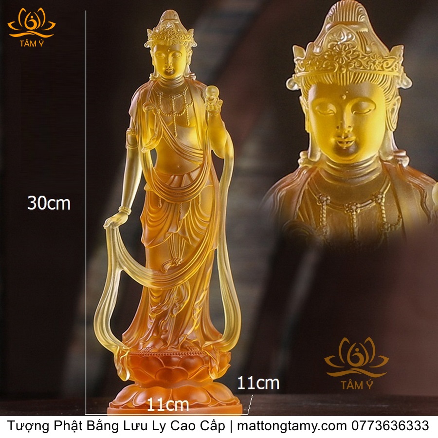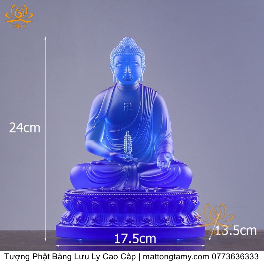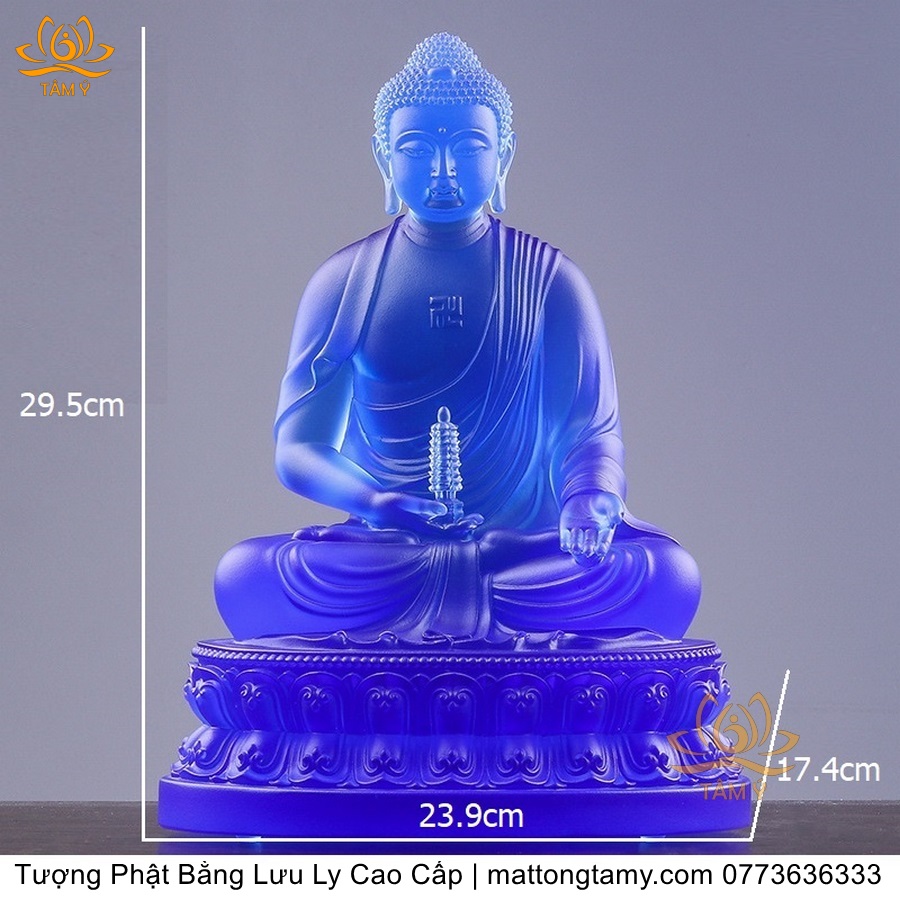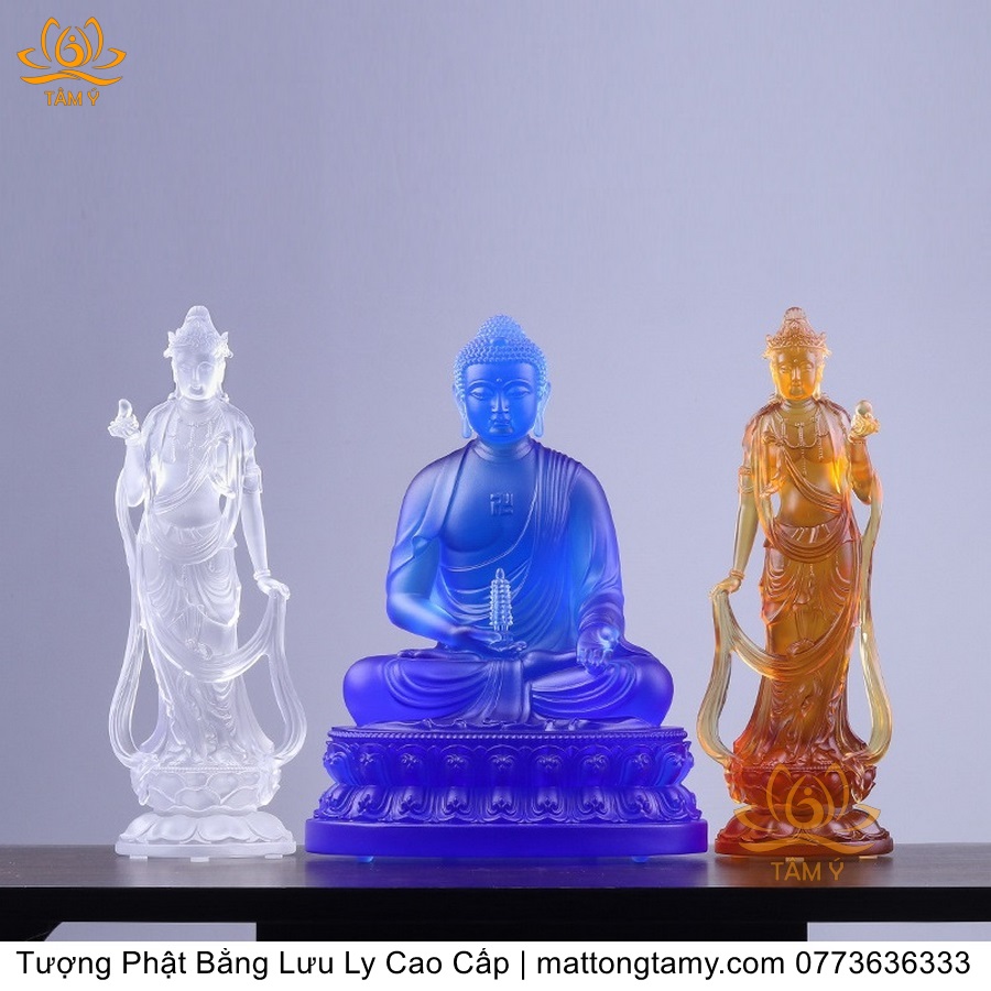 Chất liệu: Lưu Ly Cao Cấp. Màu sắc: Nhật Quang (hổ phách), Nguyệt Quang(trắng bạc), Dược Sư Bồ Tát (xanh dương). Kích thước(đơn): Nhật Quang, Nguyệt Quang: Cao 30cm và 24cm, Rộng Trái Qua Phải 11cm và 7.8cm, Rộng Từ Sau Ra Trước 11cm và 7.8cm. Dược Sư Phật: Cao 30cm và 24cm, Rộng Trái Qua Phải 24cm và 17.5cm, Rộng Từ Sau Ra Trước 17cm và 13.5cm.