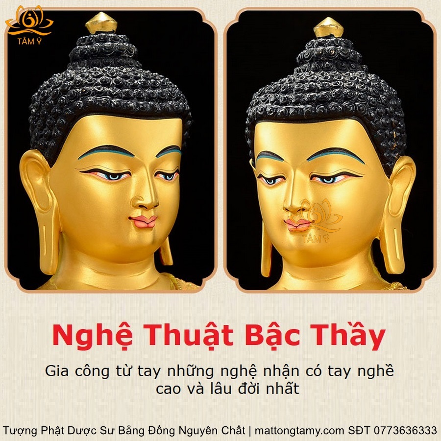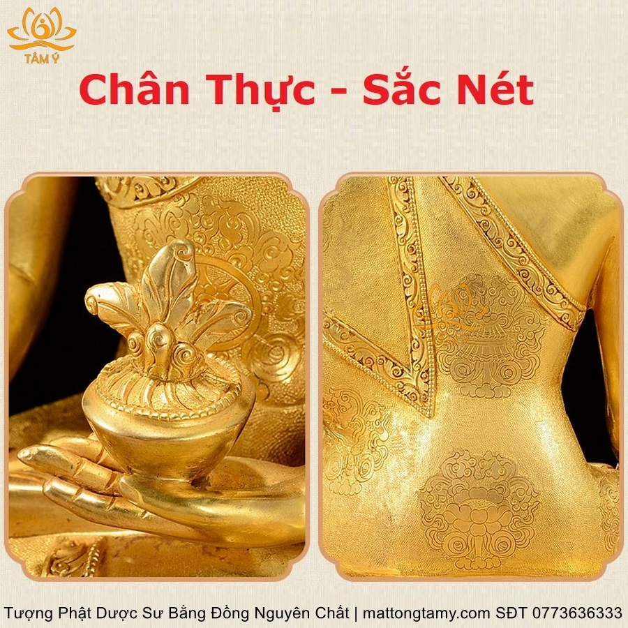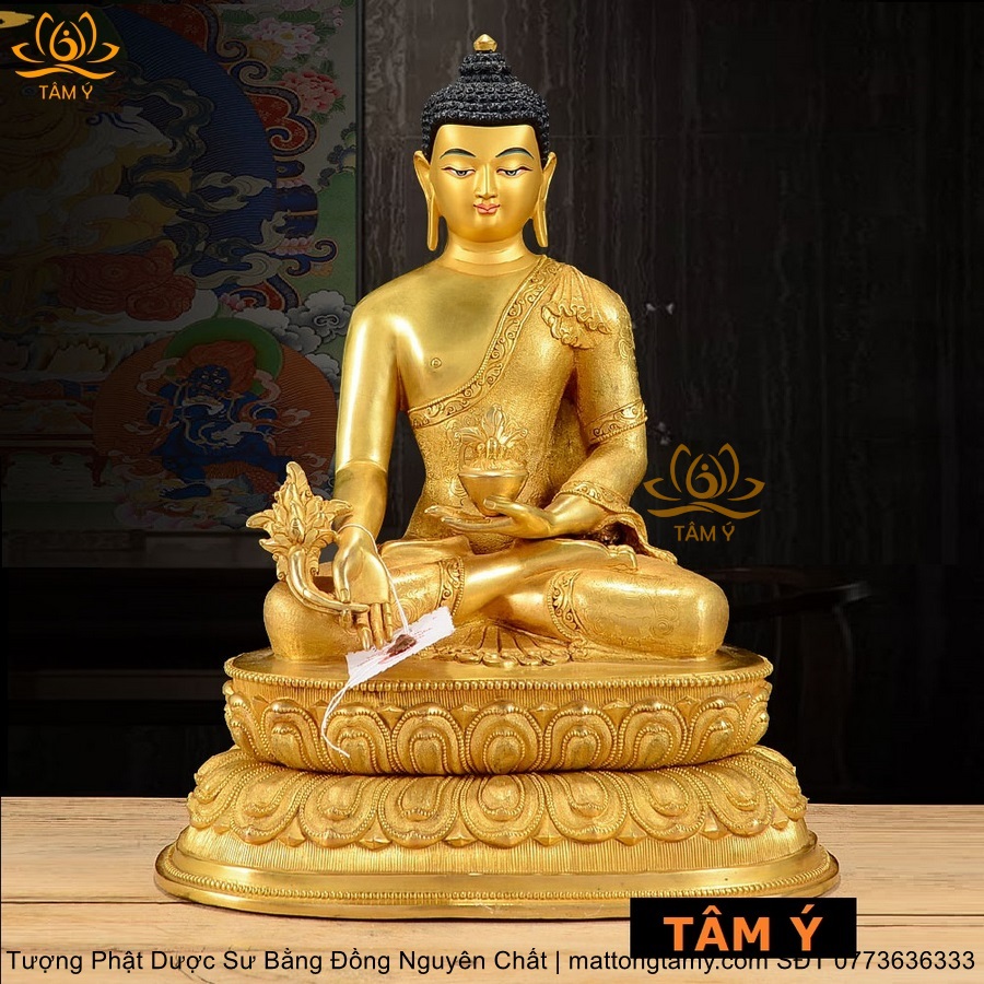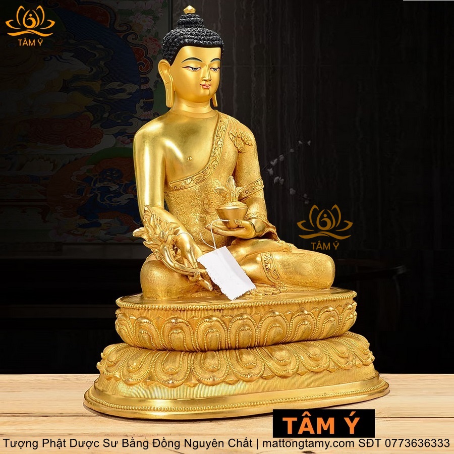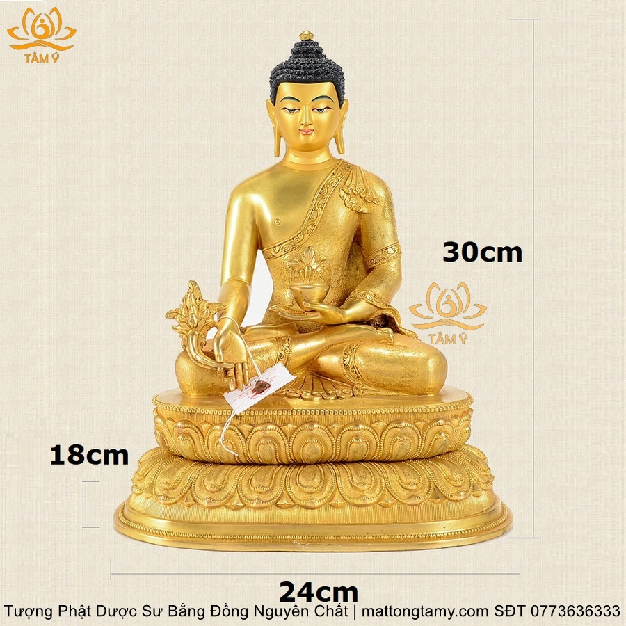 |Cao 30cm| Tượng Phật Dược Sư Bằng Đồng Nguyên Chất Mạ Bóng TP55