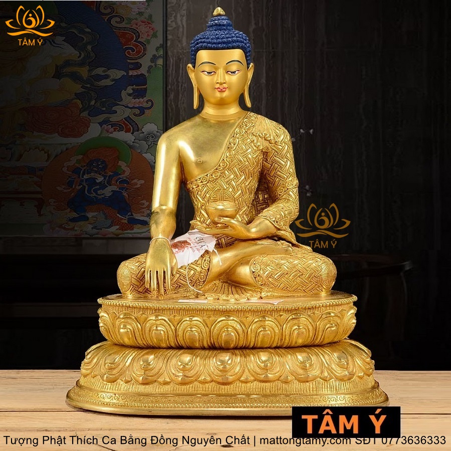 |Cao 30cm| Tượng Phật Thích Ca Bằng Đồng Nguyên Chất Mạ Bóng TP53
