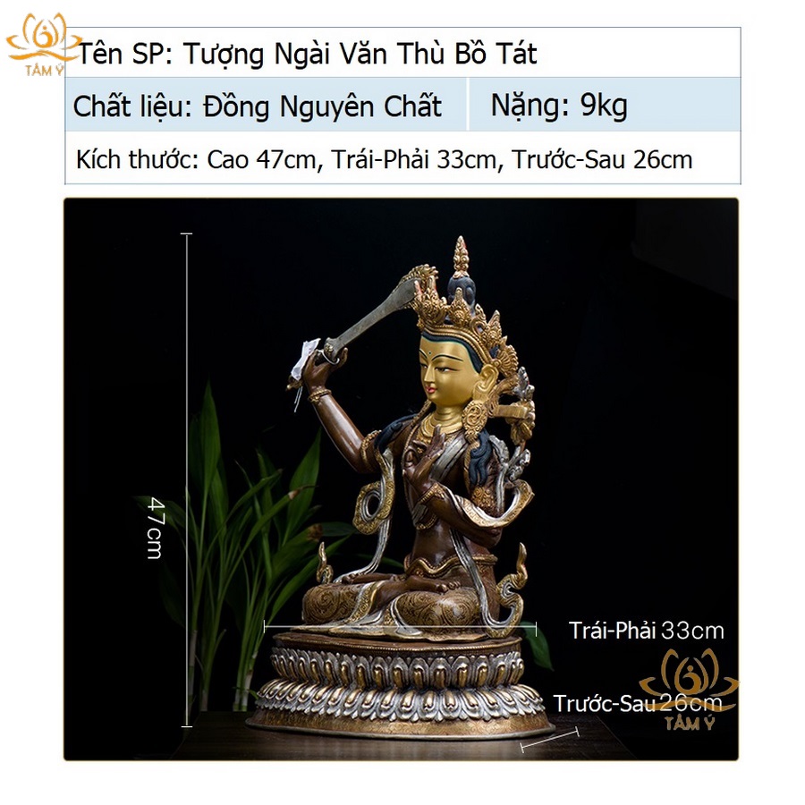 |Cao 47cm| Tượng Phật Văn Thù Bồ Tát Bằng Đồng Nguyên Chất, Thiết Kế Sang Trọng TP106