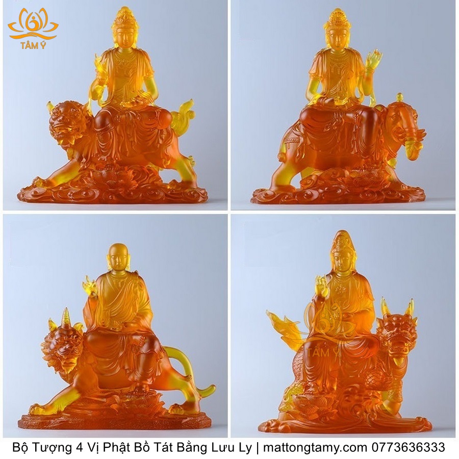 |Cao 33.5cm| Bộ Tượng 4 Vị Đại Bồ Tát Bằng Lưu Ly Cao Cấp Thiết Kế Sang Trọng TP113