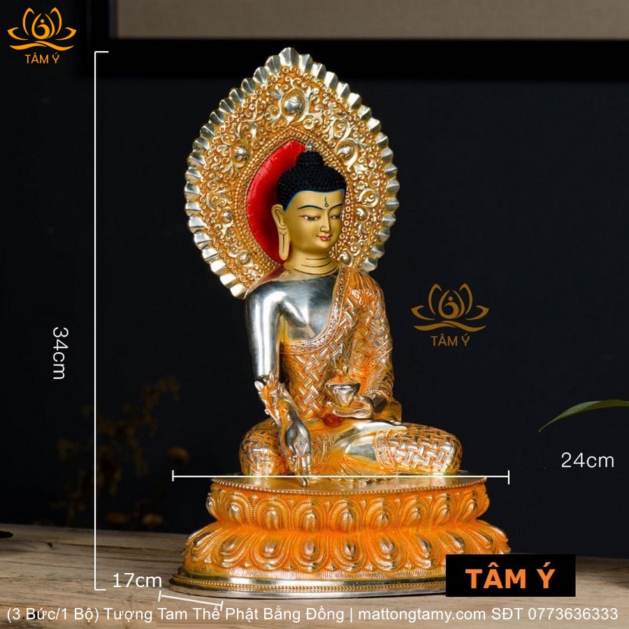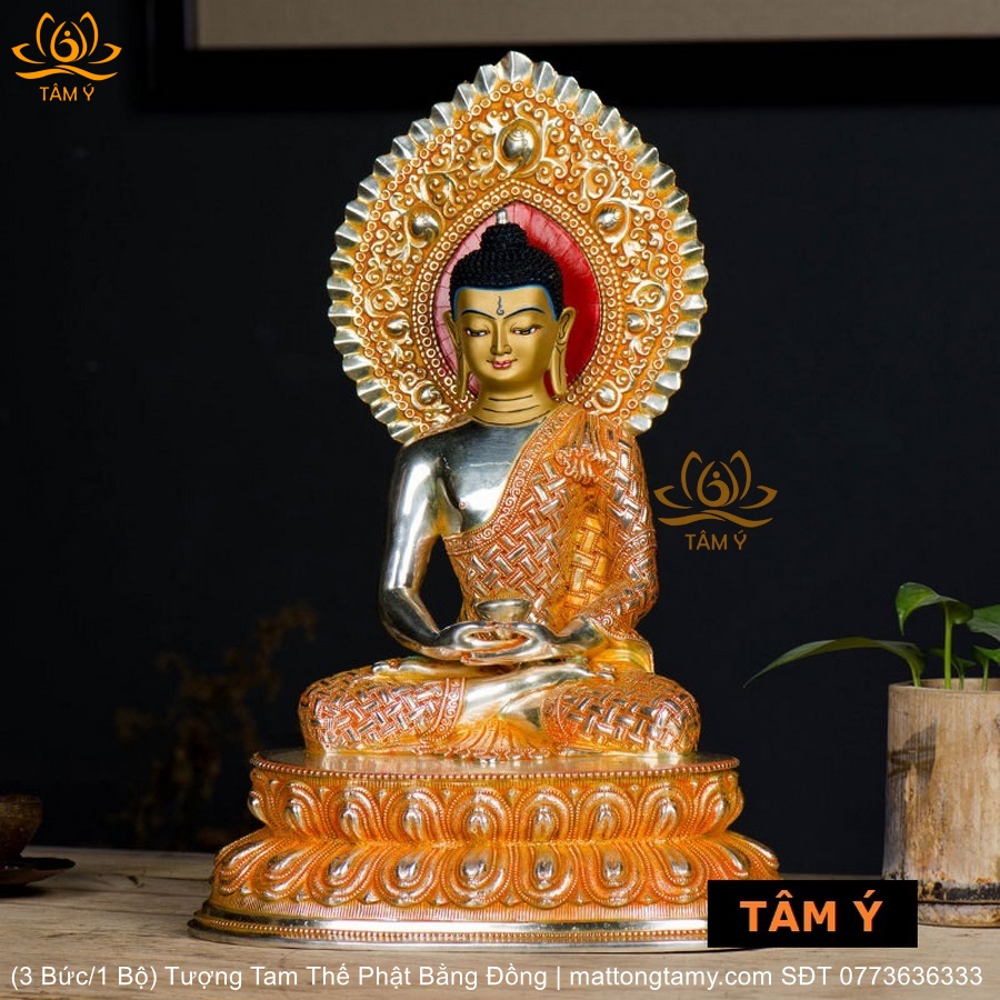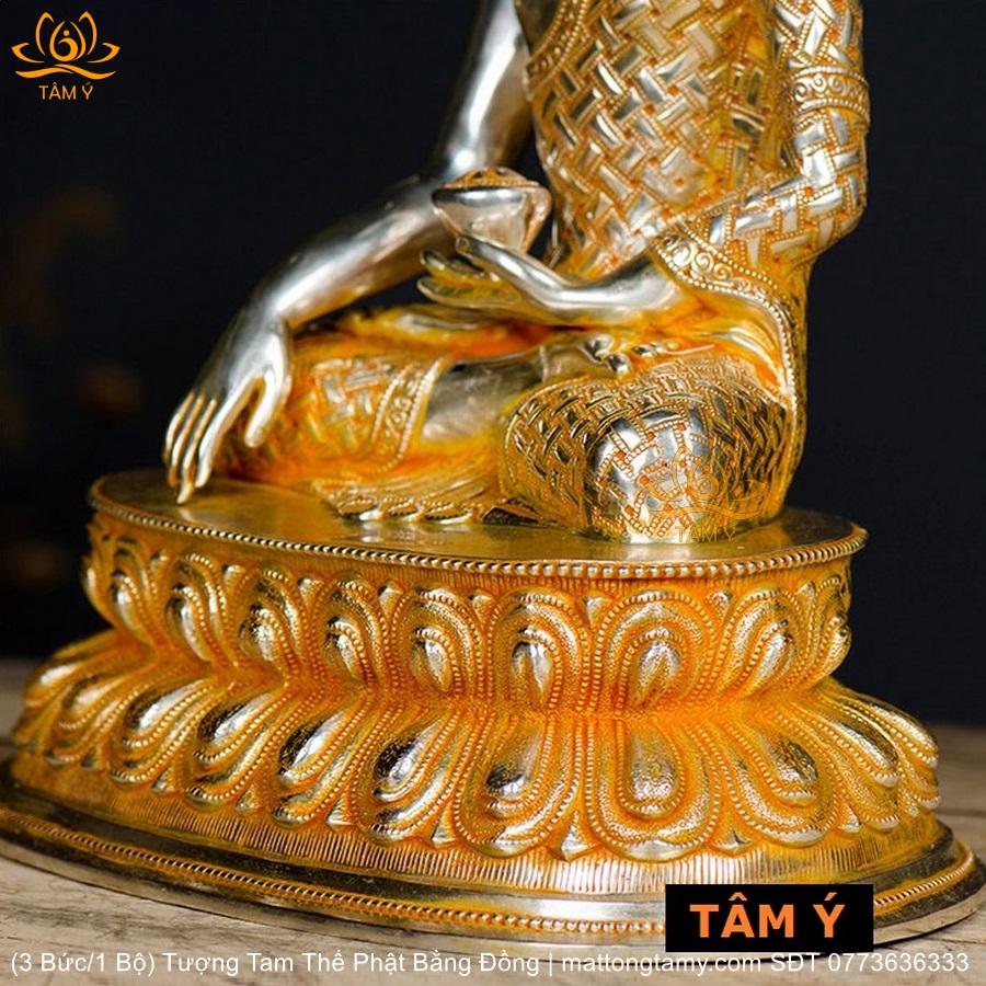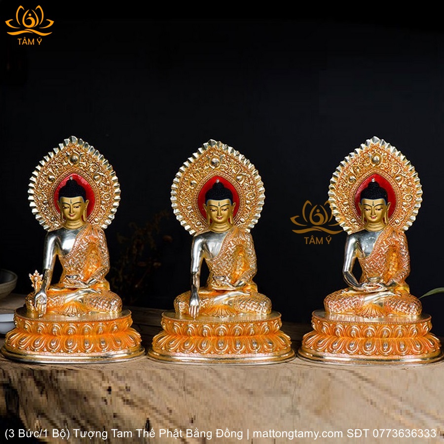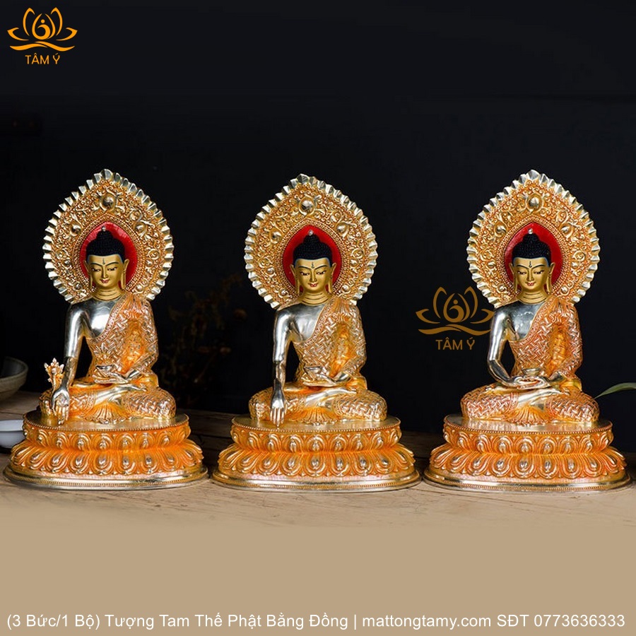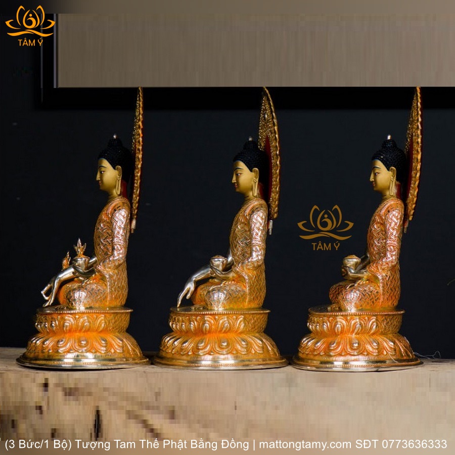 |Cao 34cm| 3 Bức Tượng Phật Tam Thế Phật: Dược Sư - Thích Ca - A Di Đà Bằng Đồng Nguyên Chất TP34
