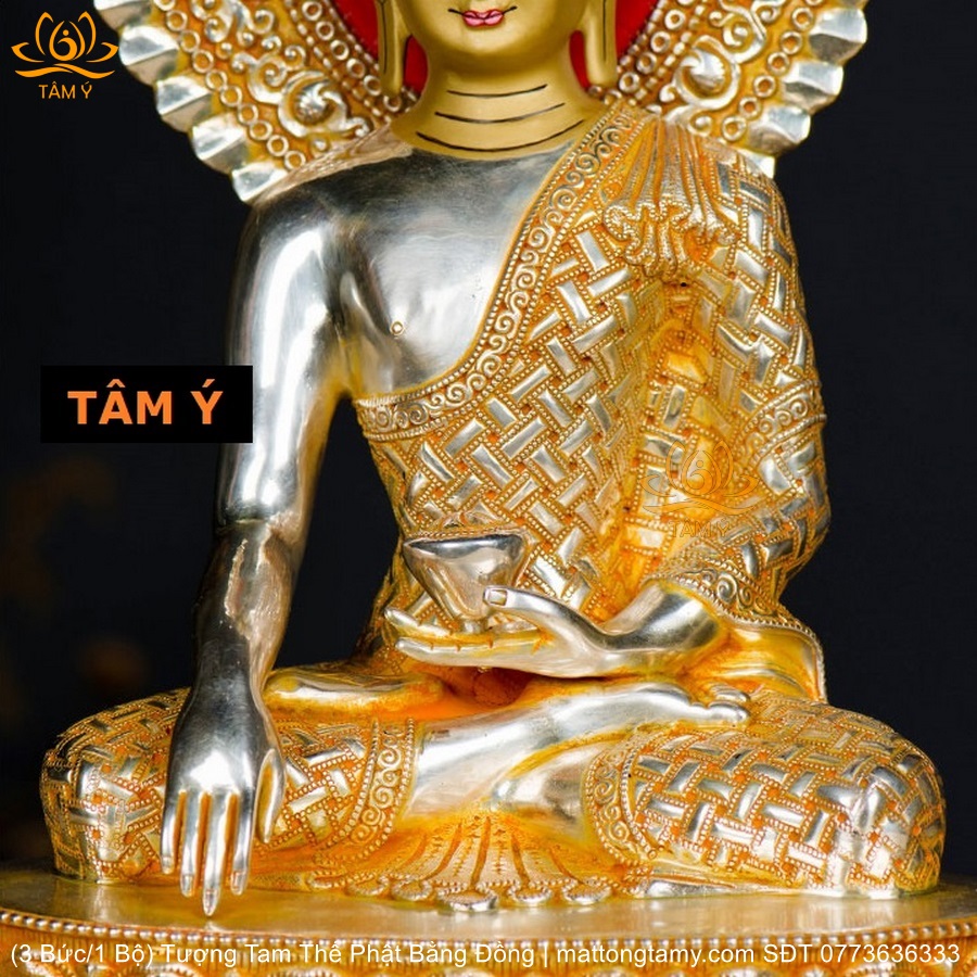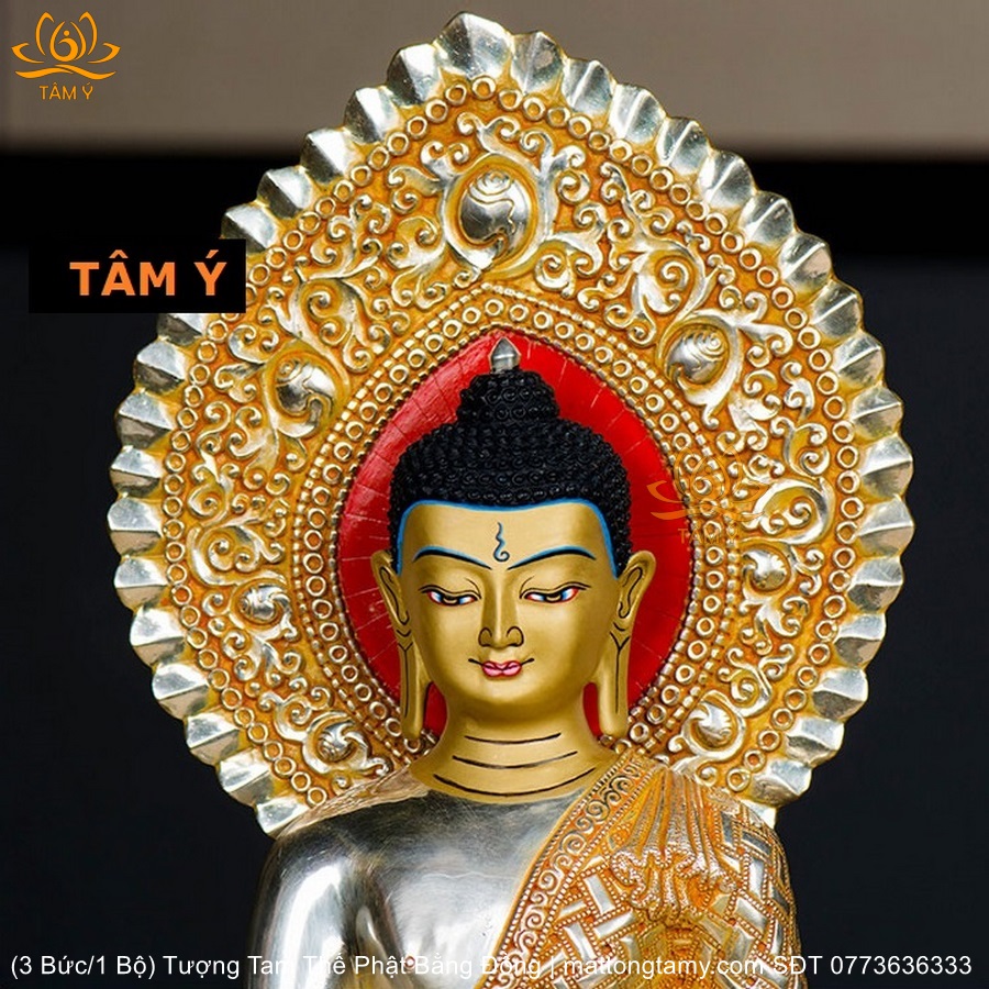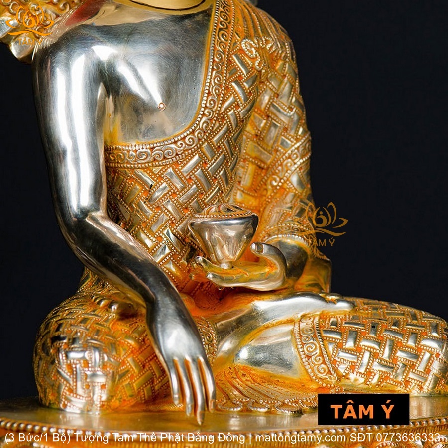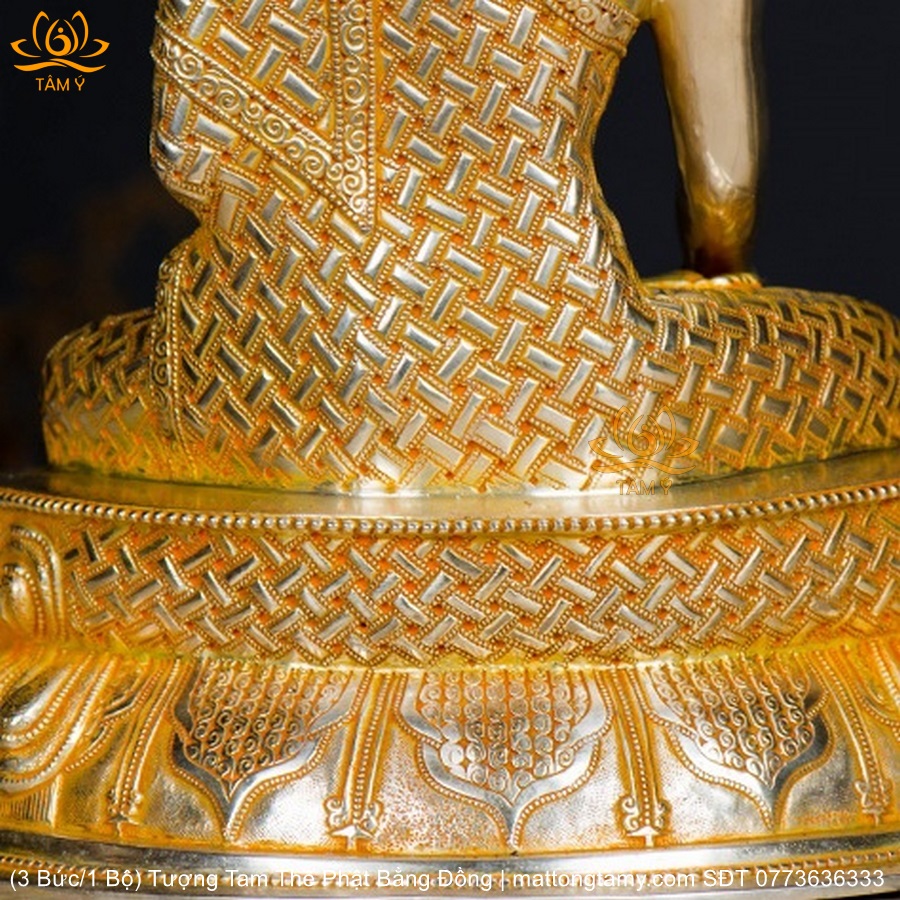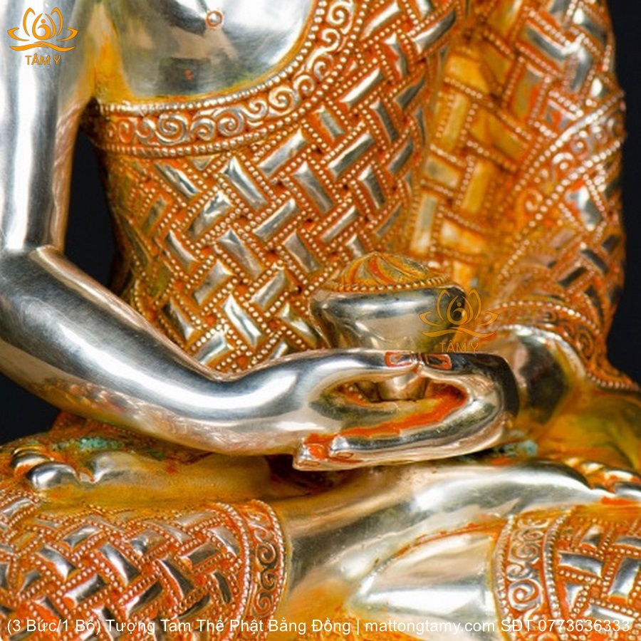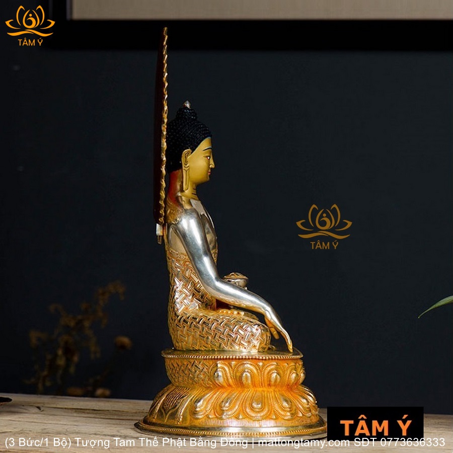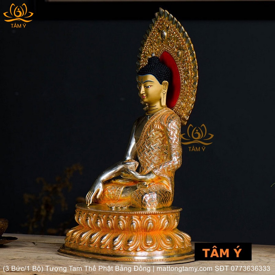 |Cao 34cm| 3 Bức Tượng Phật Tam Thế Phật: Dược Sư - Thích Ca - A Di Đà Bằng Đồng Nguyên Chất TP34